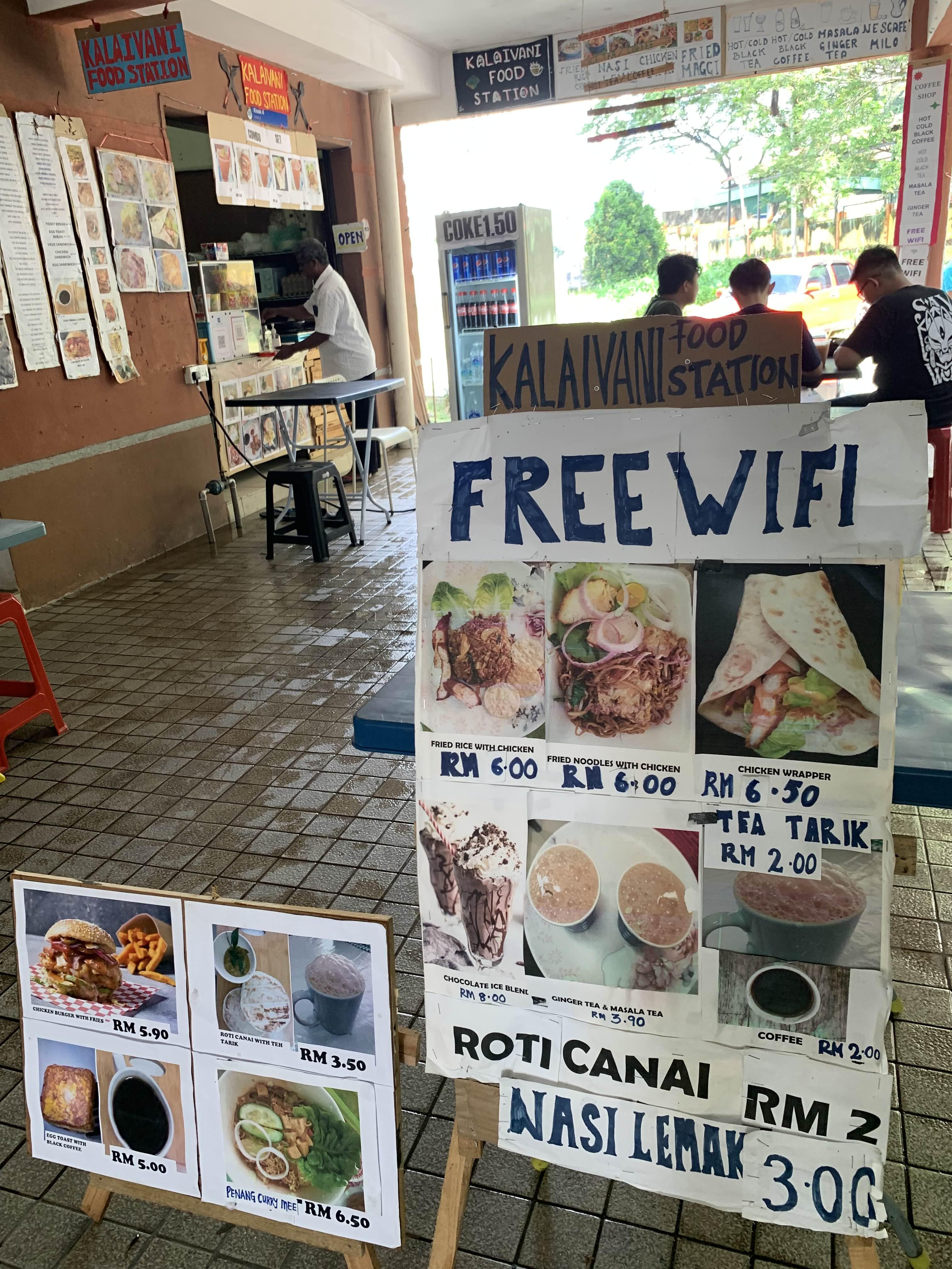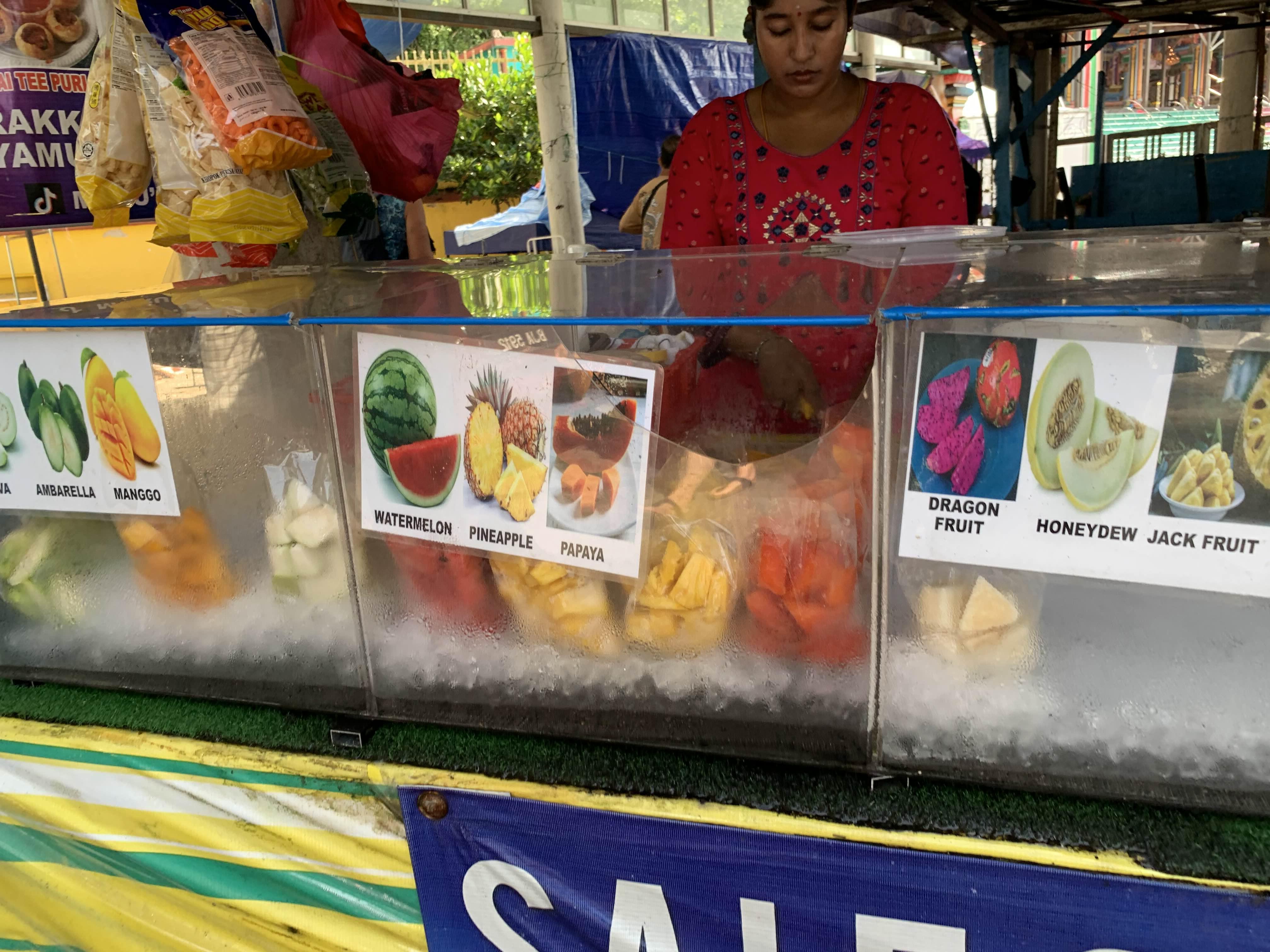 바투동굴 역의 식당에서 무엇을 판매하는지 구경한다.
