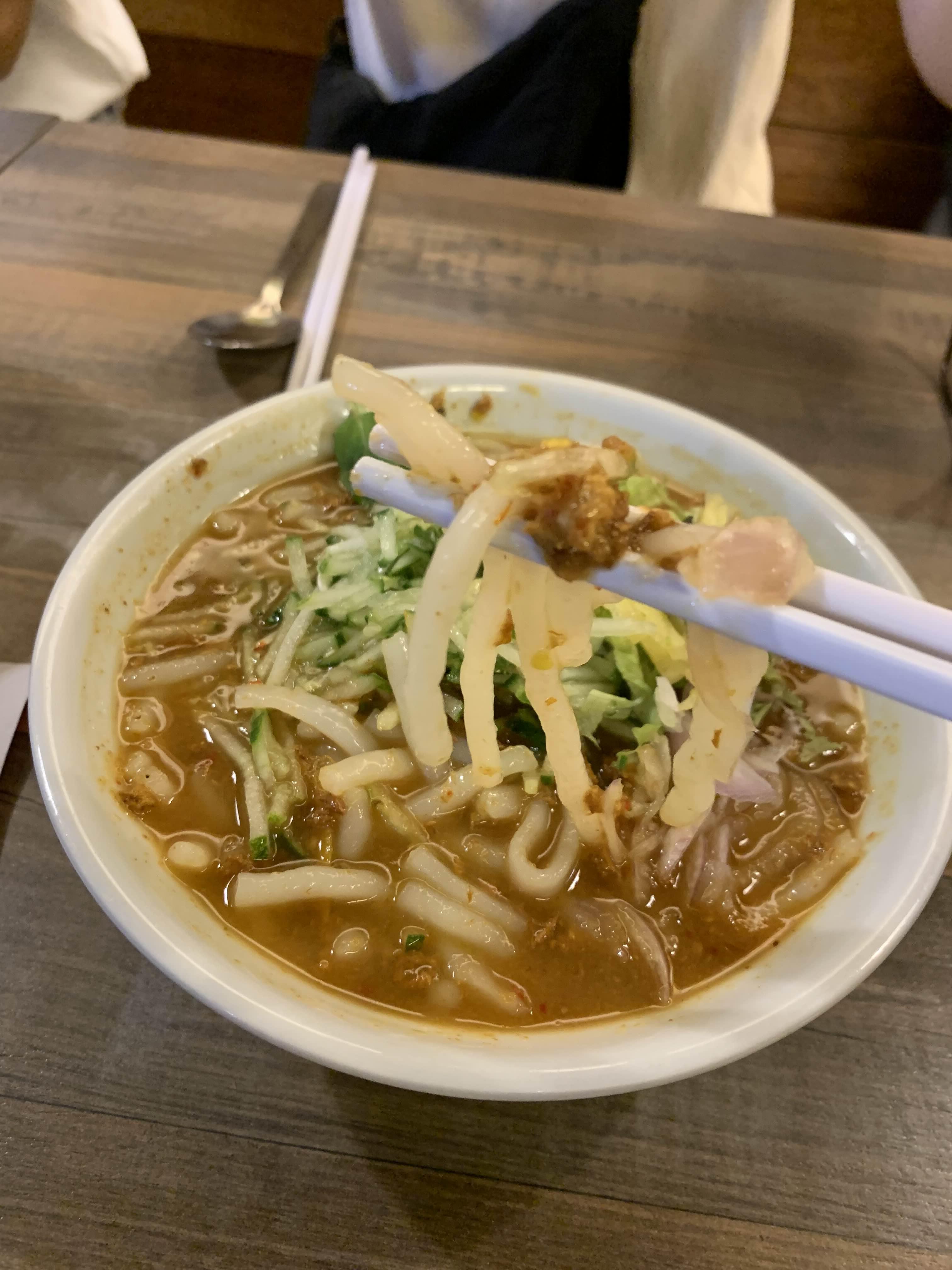 면발은 우동면과 유사하게 두꺼운데, 가락국수면 식감은 아닌 툭툭 끊어지는 식감!
