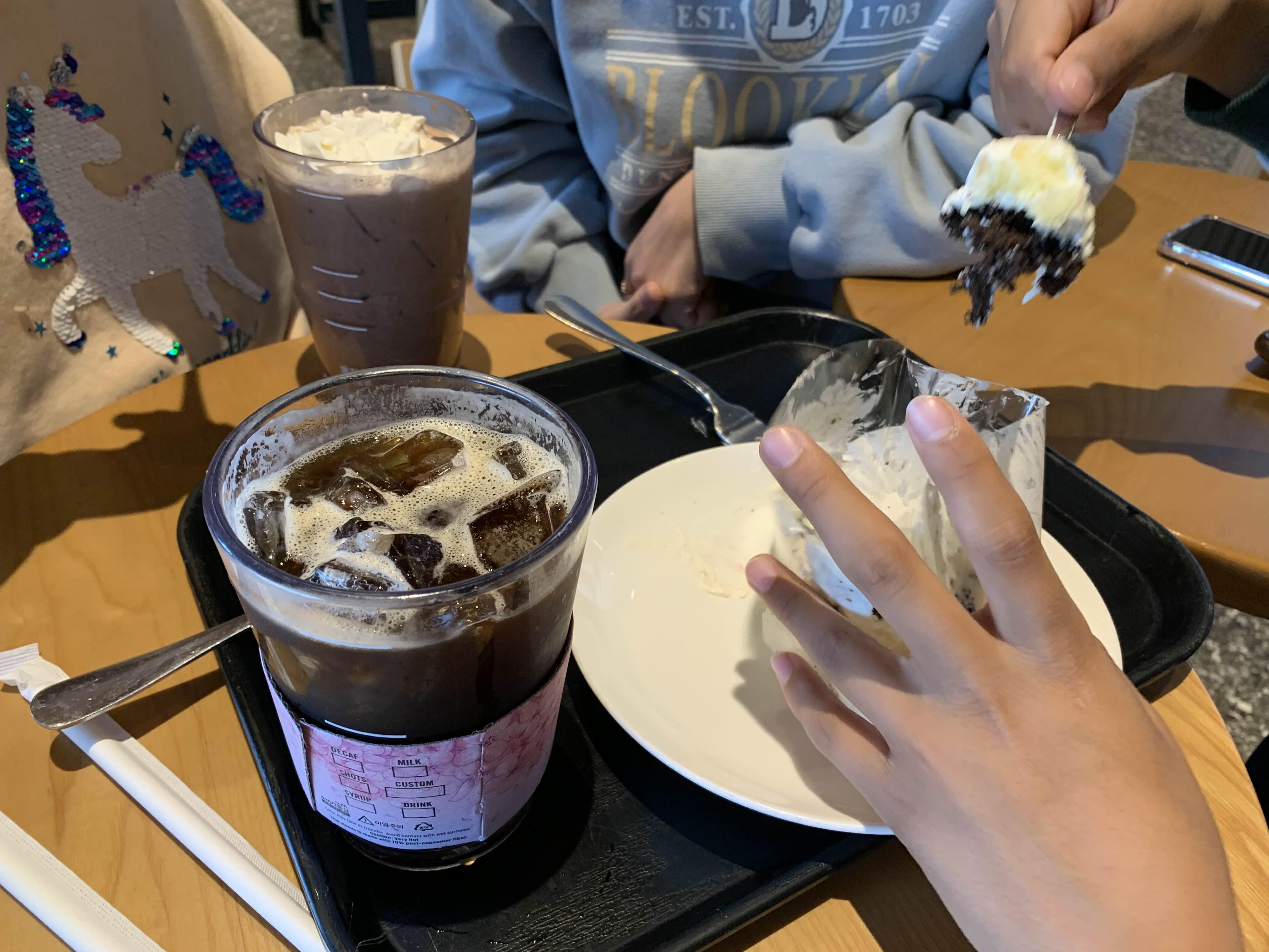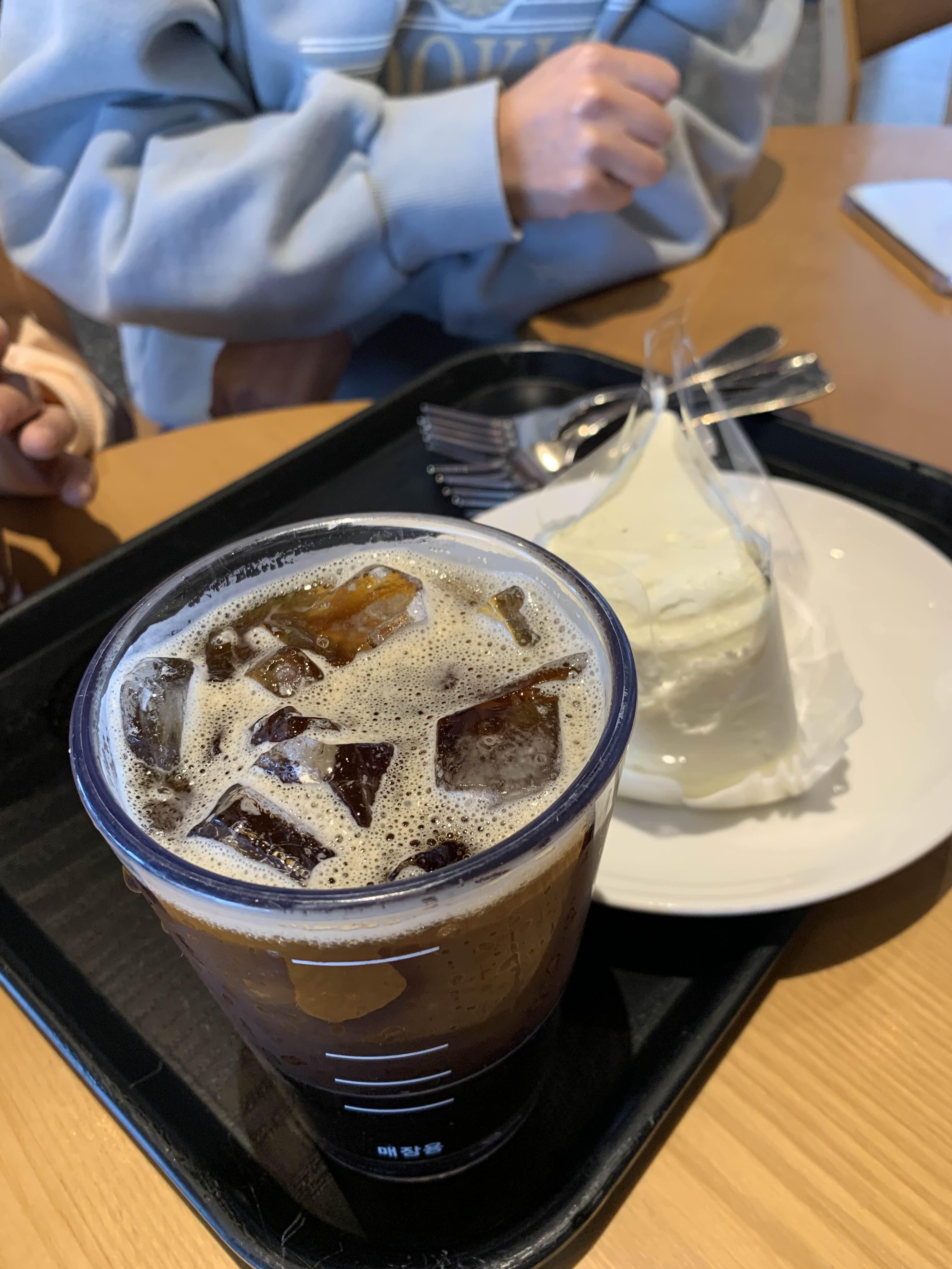 주문한 음료수... 내가 주문한 아이스아메리카노! 그리고 조각케이크!