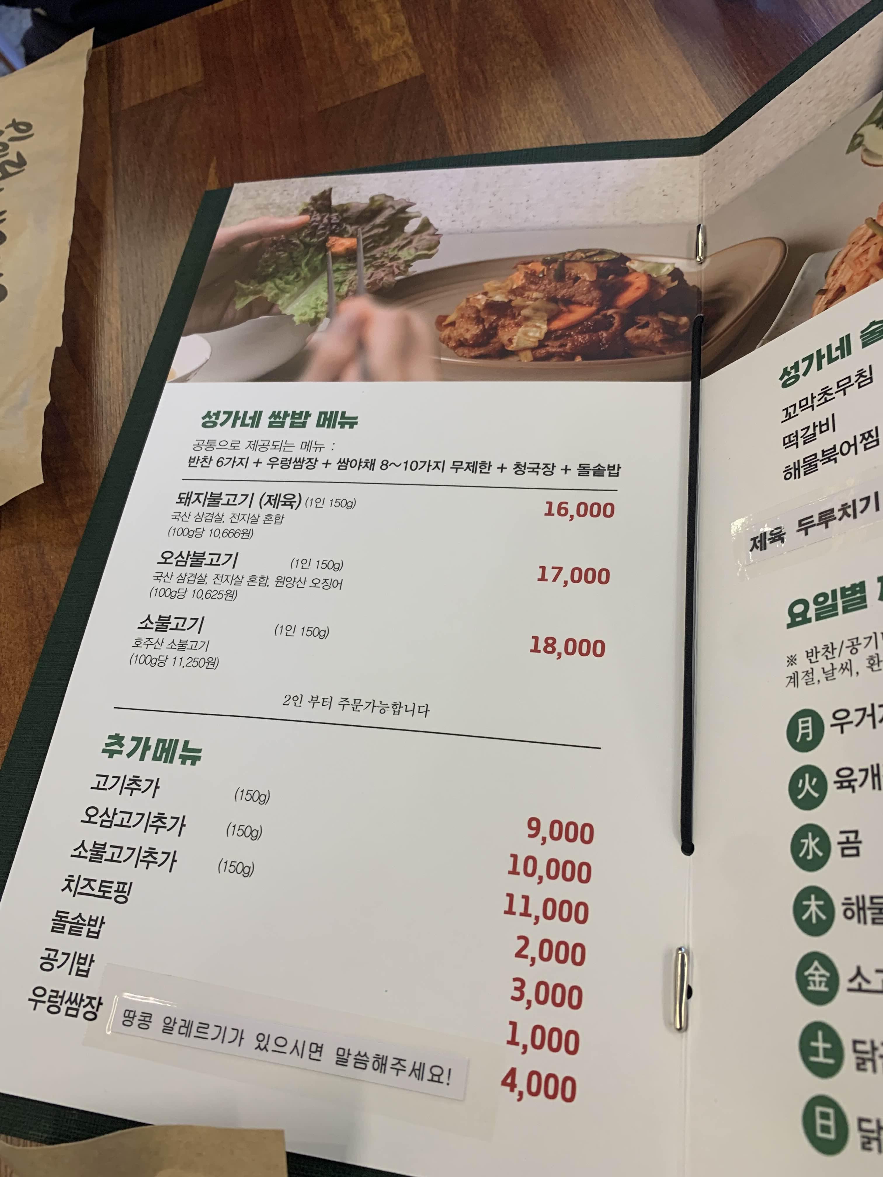 메뉴판을 스캔하니... 메뉴가 상당히 비싼 느낌이 들더군요.