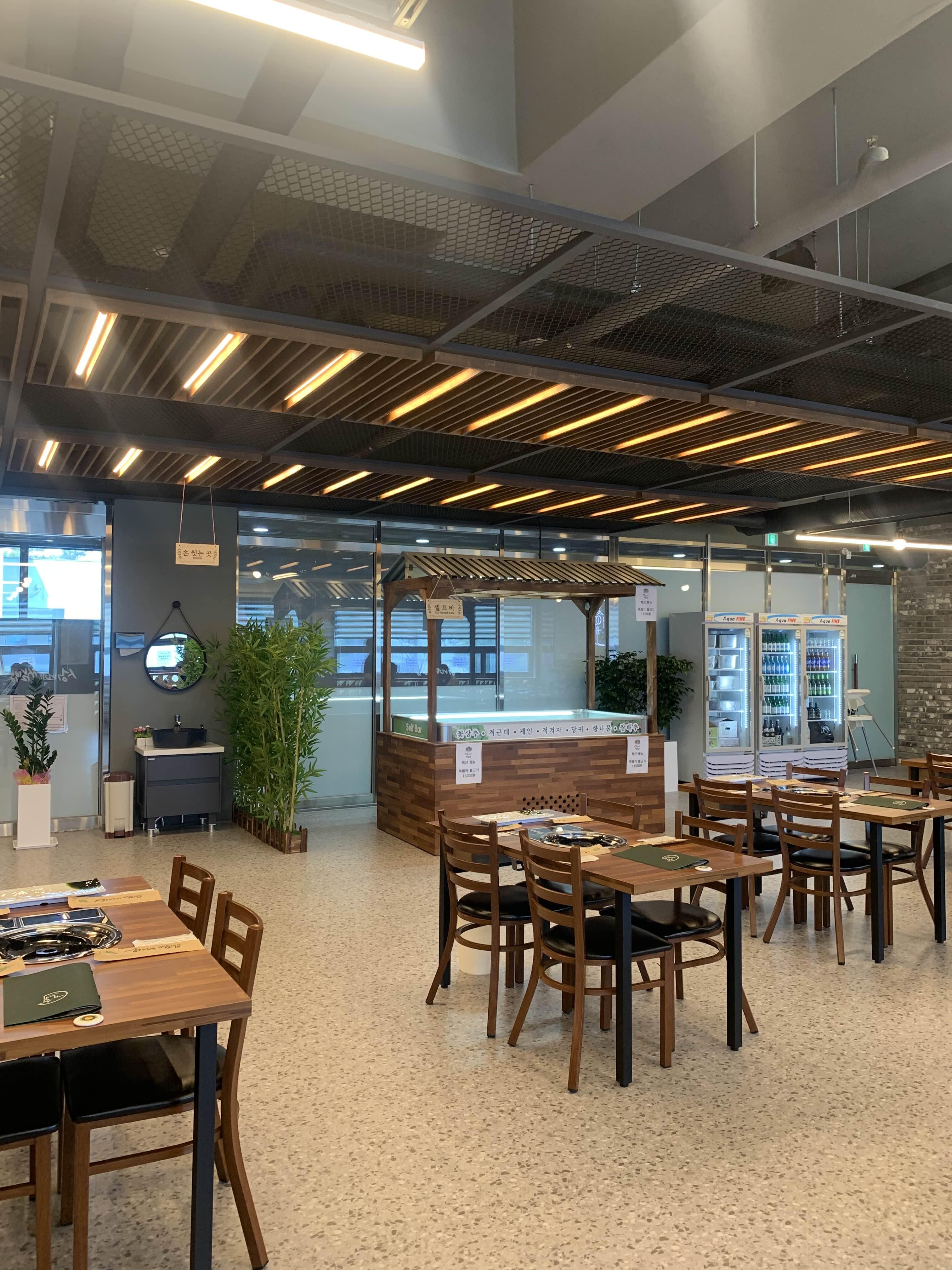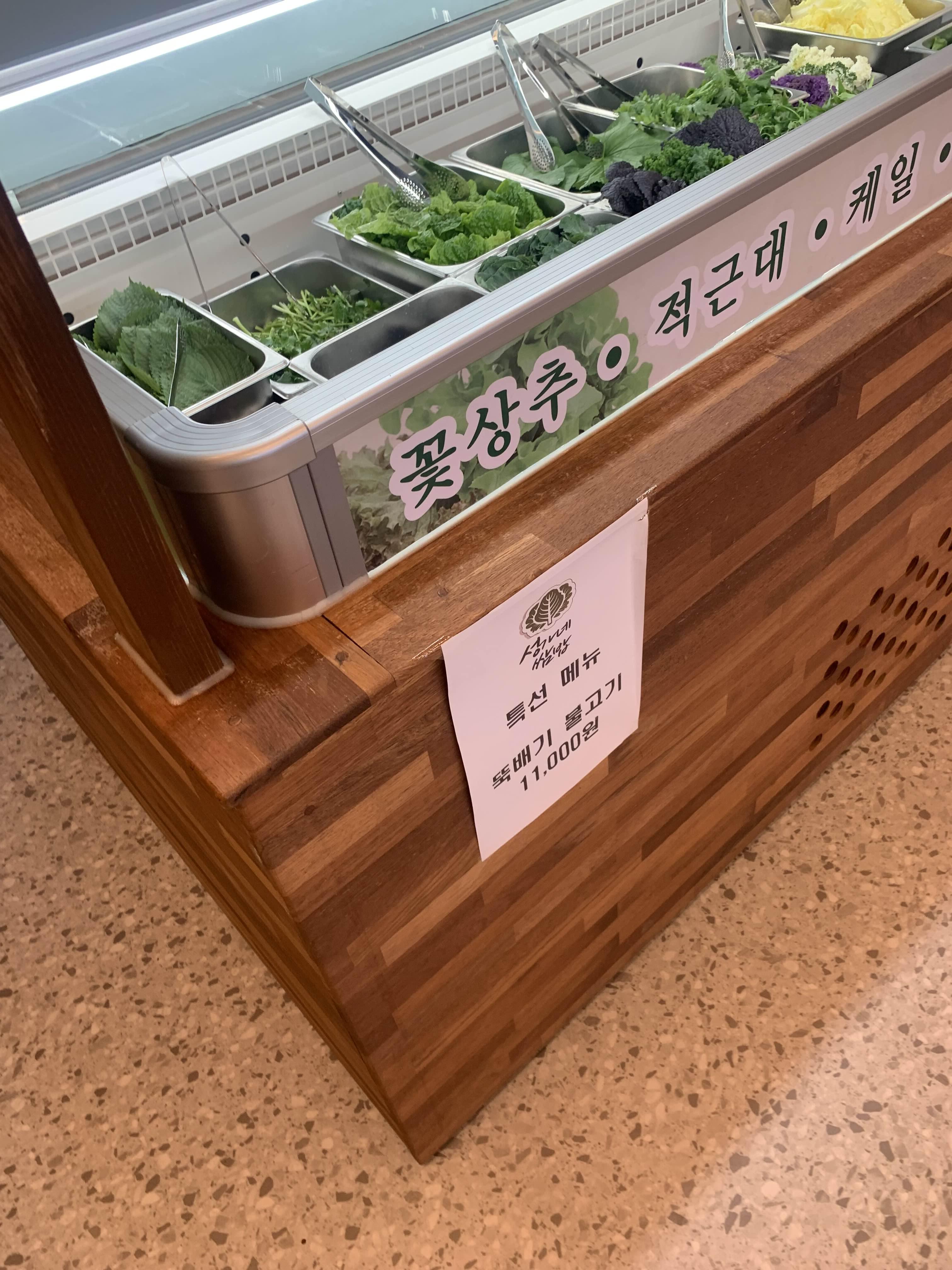 음식을 주문하고, 쌈채소가 있는 셀프코너 구경!
