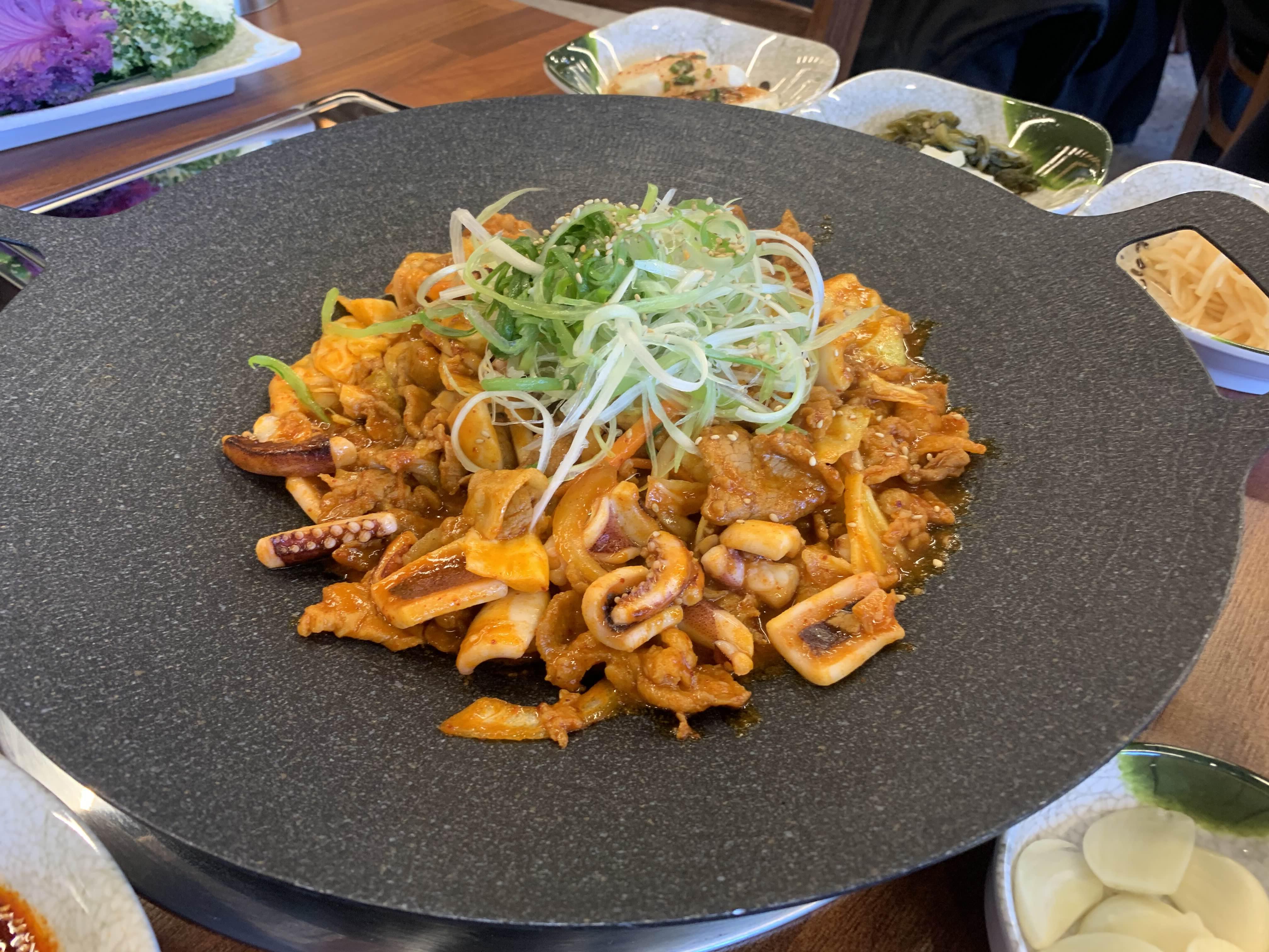 청국장이 큰 뚝배기에 나오고 나니.... 오삼불고기 양이 적지 않게 느껴집니다. ㅎㅎ