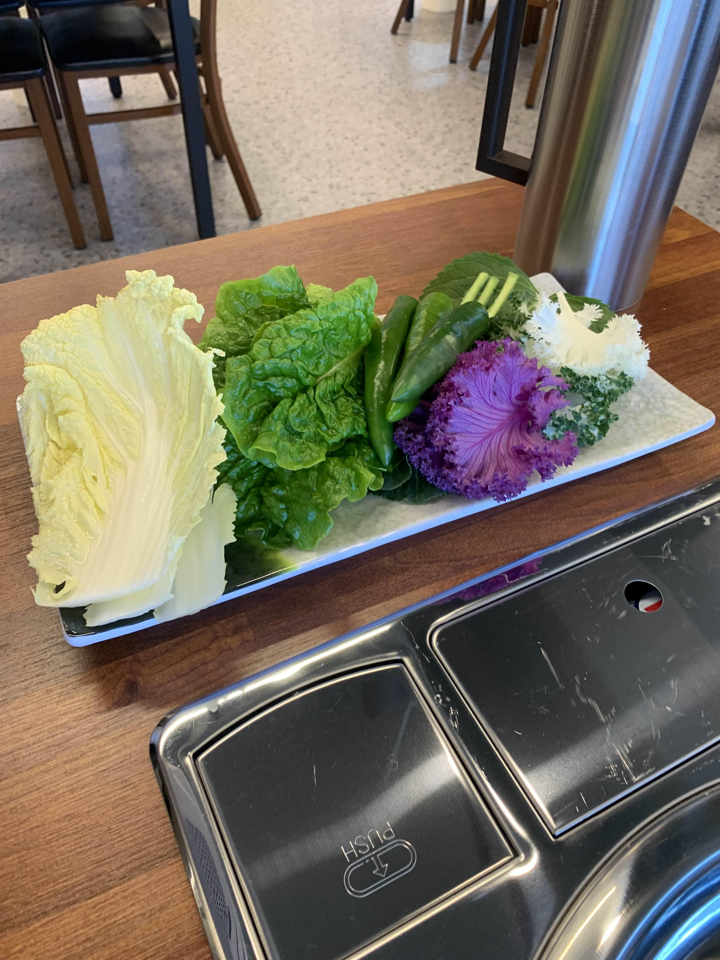 쌈 재료는 먹고 싶은 쌈채소를 가져다 먹는 방식이더군요. 10가지 쌈채소!!