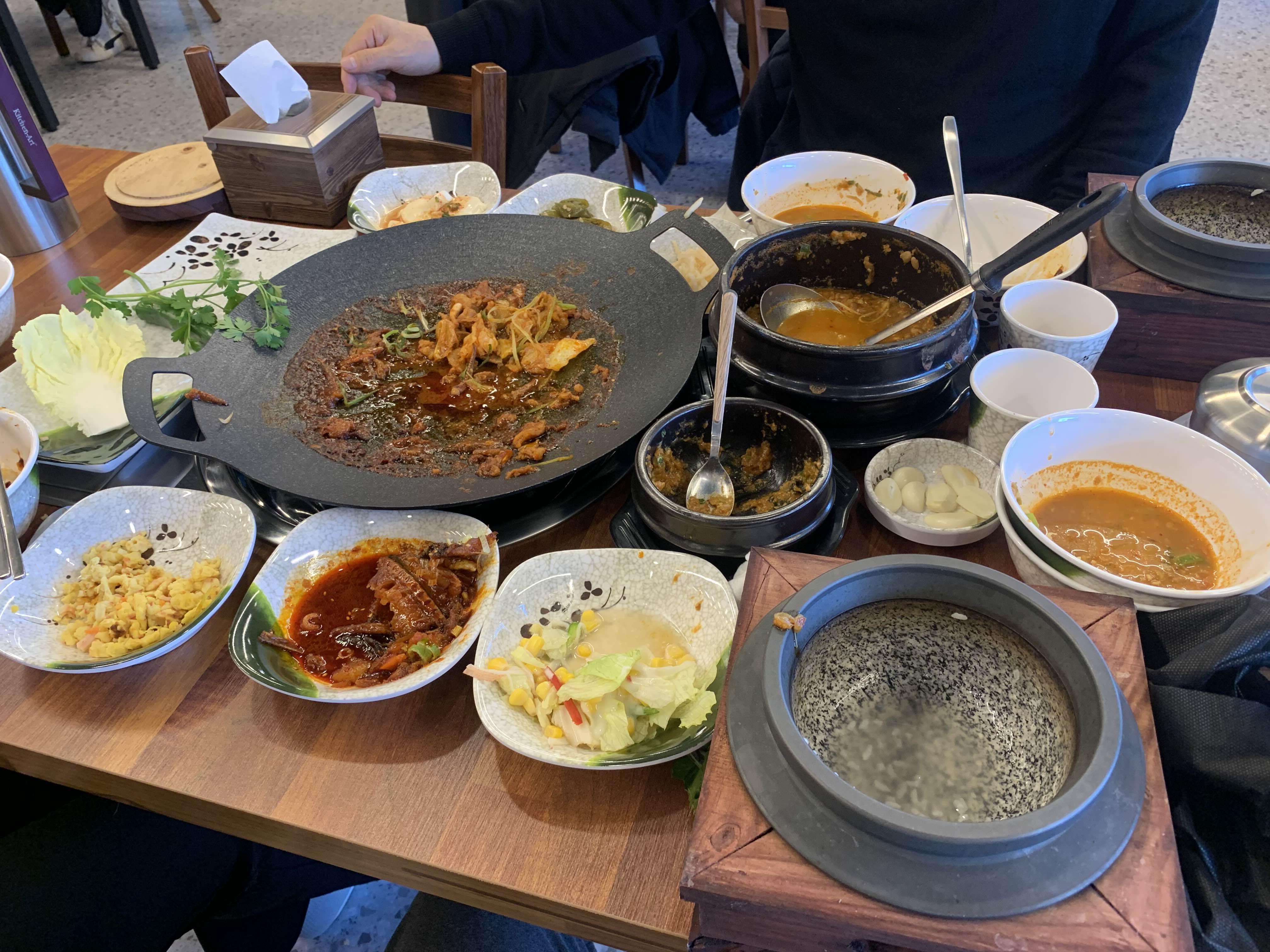 청국장과 오삼불고기.... 이렇게 조합이 되니, 음식이 상당히 많아지더군요. 솥밥이 부족할 정도로...