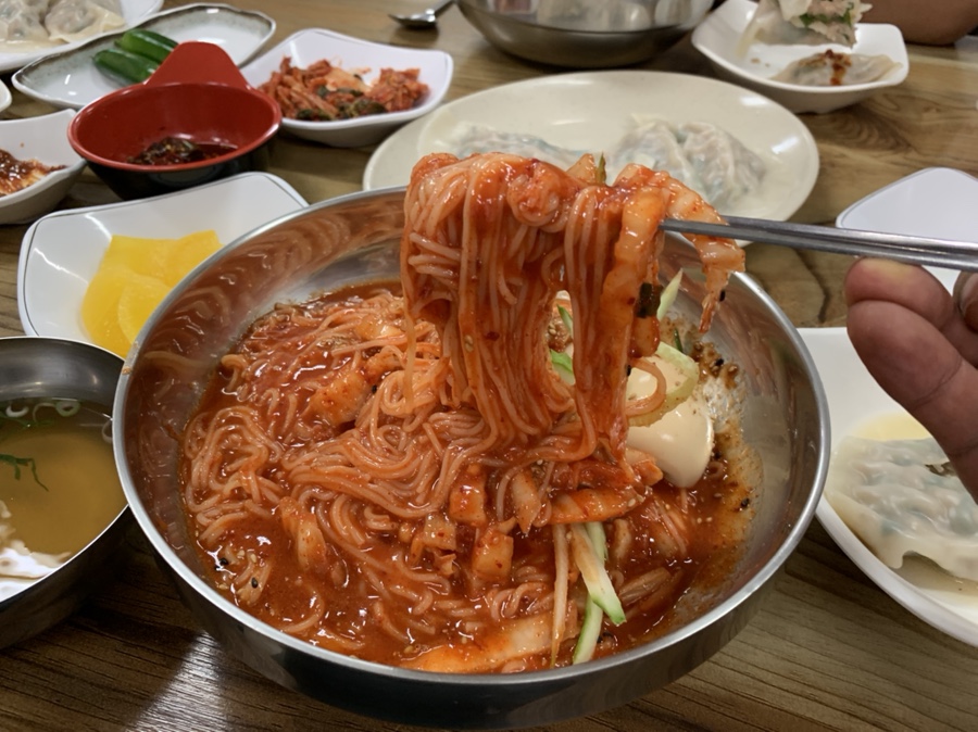 지난 방문 시 열무국수를 맛있게 먹었던 기억이 있었는데, 이번 방문 시 열무 국수가 저번과 동일하게 맛이 있지는 않았네요. 저번에 김치는 좀 쉰 느낌이었으나 이번에는 맛있었네요. 그때그때 맛이 좀 달라지나 봅니다. 비빔국수는 새콤달콤해서 괜찮았습니다. 가장 맛있었던 건 고기만두가 맛이 있었네요. 만두 속 육즙이 가득하여 부드럽게 먹을 수 있었네요. 다음에는 만두국 먹어봐야겠네요.