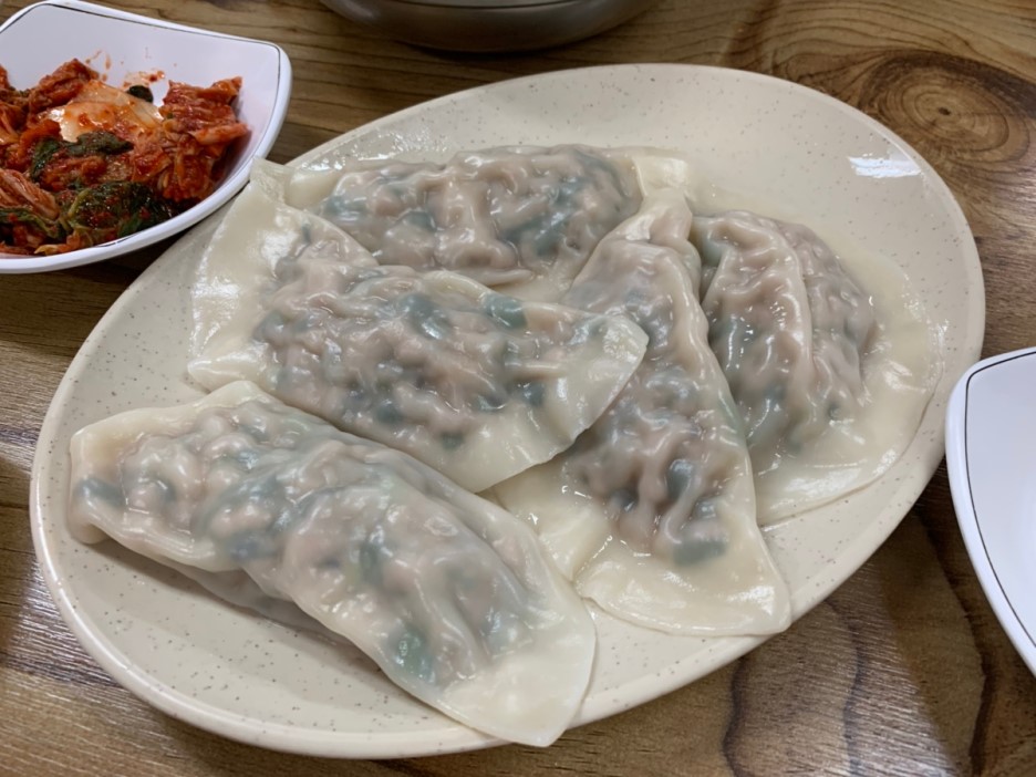 지난 방문 시 다른 테이블에서 만두를 주문하셔서... 먹고 싶었지만, 식당에 혼자 방문하여... 열무국수만 먹었던 기억이 있어, 고기만두를 주문했네요. 고기만두는 5,000원으로 5개 만두가 나오네요. 만두는 어린이 손바닥 크기인데... 좀 넓적한 모양입니다. 국수를 먹기 전 만두를 먹어보는데..... 최근에 먹어본 만두 중에 가장 맛있게 먹었네요. 이렇게 큰 만두는 백령도에서 먹어봤던 기억이 납니다.