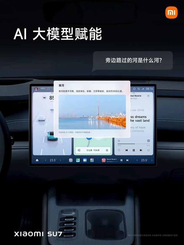 동시에 샤오미 SU7은 아름다움과 기능성을 겸비한 사람 중심의 디자인을 채택해 앞줄은 수직 공간이 넓고, 뒷줄은 긴 다리가 편안하며, 나파 가죽 시트를 사용해 더욱 환경 보호를 완벽하게 지원하고, 안전; Xiaomi SU7에는 헤드레스트 스피커가 포함된 25개 스피커의 고급 사운드 시스템이 장착되어 있습니다.