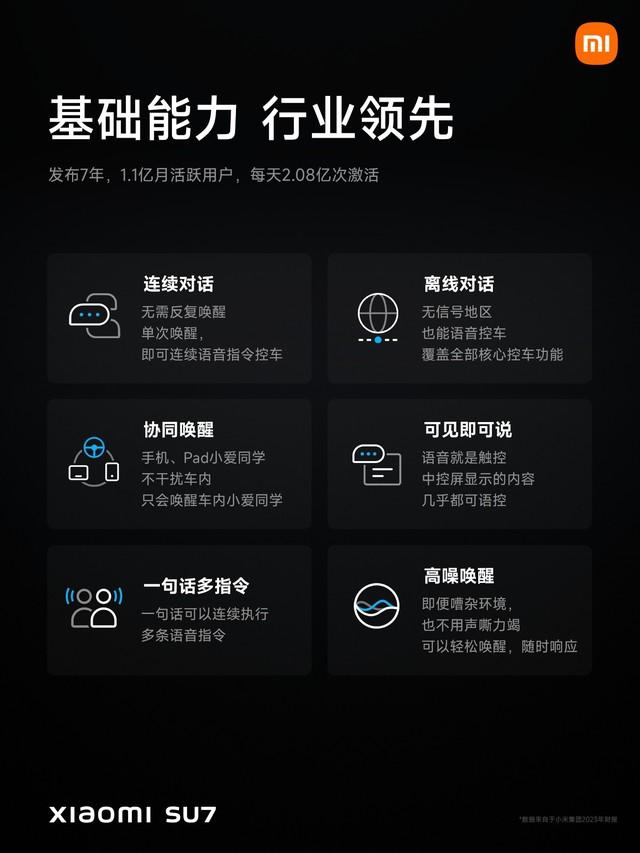 Xiaomi SU7에는 지능적인 Xiaoai 동급생이 있어 음성으로 자동차를 깊이 제어하고 퍼지 명령을 인식하며 5음 음성 상호 작용이 가능하며 모든 방향에서 정확하게 반응할 수 있습니다. 자동차뿐만 아니라 Xiaomi 모바일도 제어할 수 있습니다. 전화, AI 기능도 갖추고 있습니다. 모델의 힘을 빌려 "어디를 가든 물어보고" 함께 세계를 탐험해 보세요.