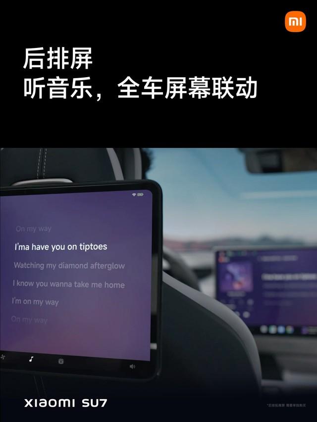 샤오미 SU7에는 5개의 화면이 연결되어 더욱 발전된 모바일 스마트 공간을 만들어냅니다. 뒷좌석 화면이 기본으로 확장되고, 연결하면 기본 차량 제어 인터페이스 내비게이션이 자동으로 활성화되므로 언제든지 뒷줄에 웨이포인트를 추가할 수 있으며, 음악을 듣고 전체 차량 화면이 연결되며 가사가 실시간으로 동기화됩니다. 간편한 시트 조절은 물론, 뒷좌석 공간을 즐길 수 있으며, 뒷좌석 승객도 태블릿을 통해 에코카 체험을 쉽게 즐길 수 있습니다.