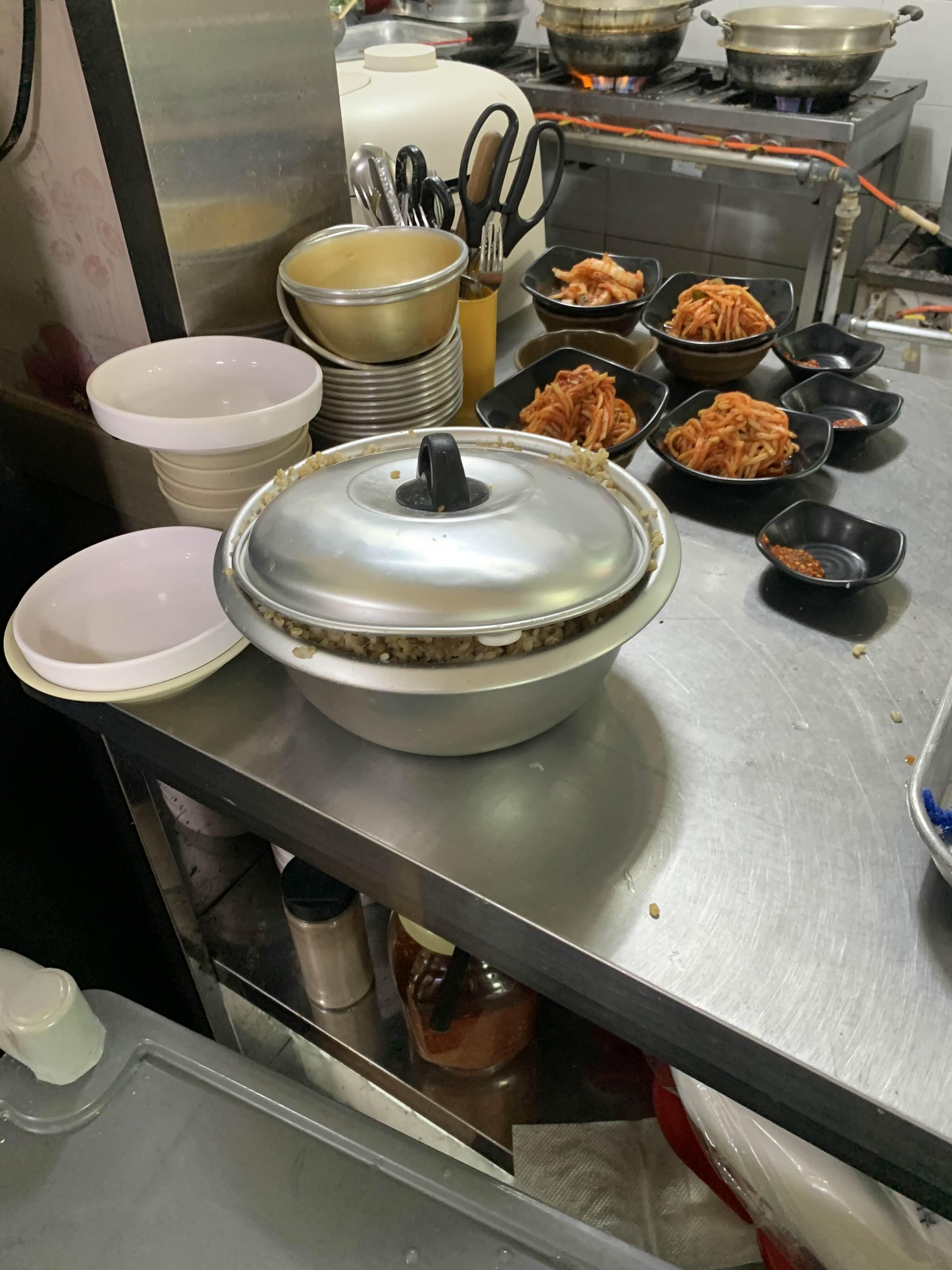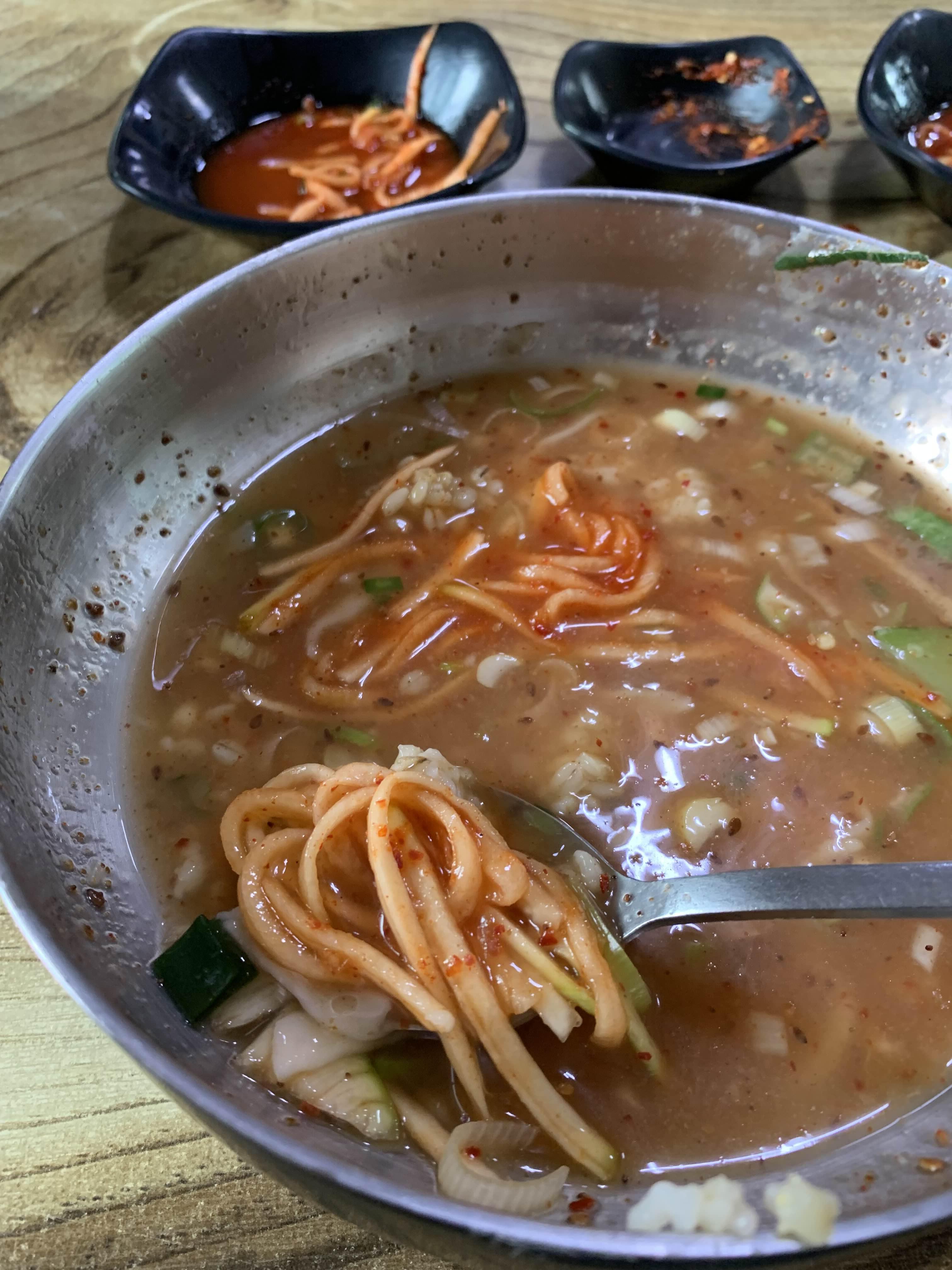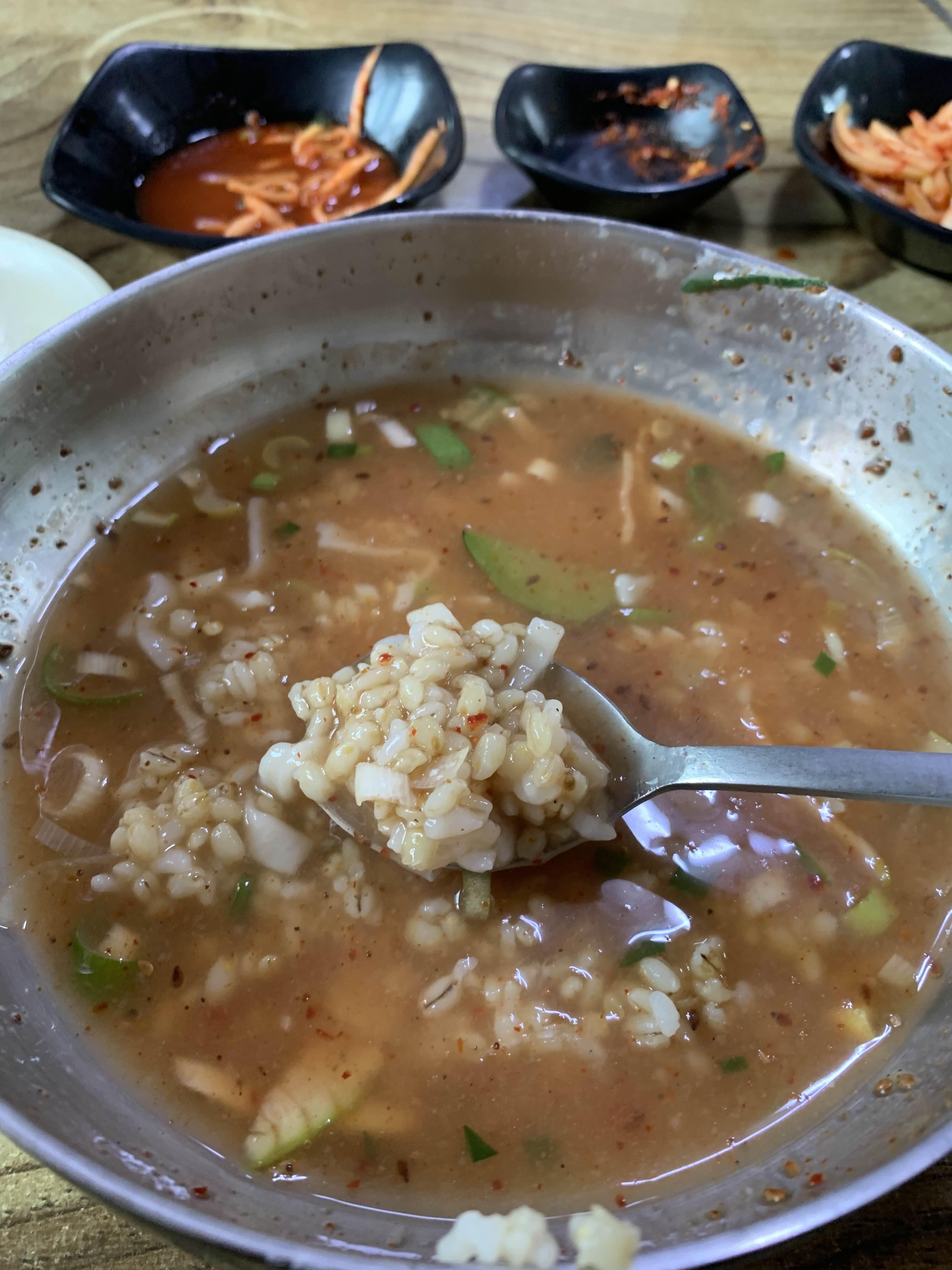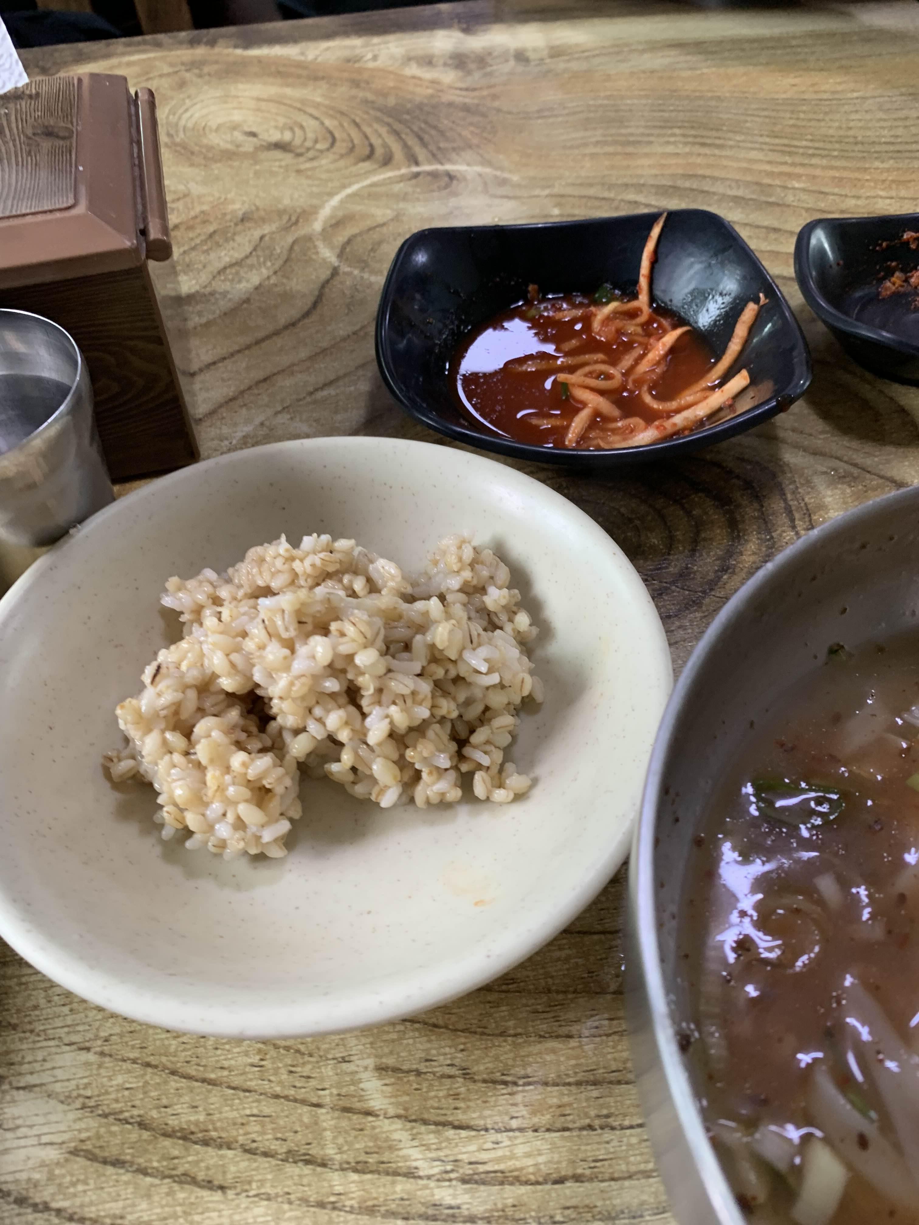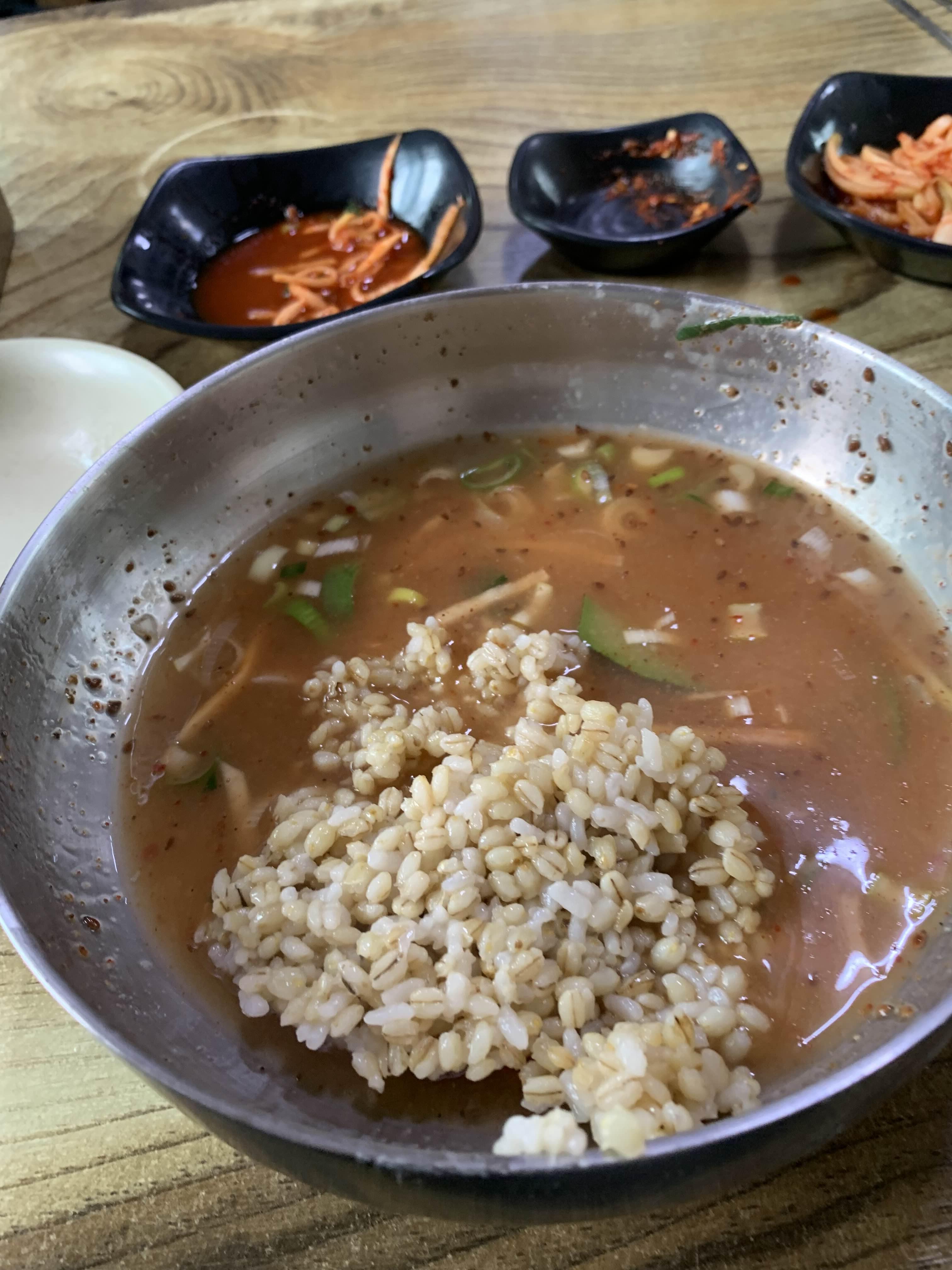 칼국수를 어느 정도 먹고서!! 보리밥을 가져다가 국물에 말아먹는데!! 1
