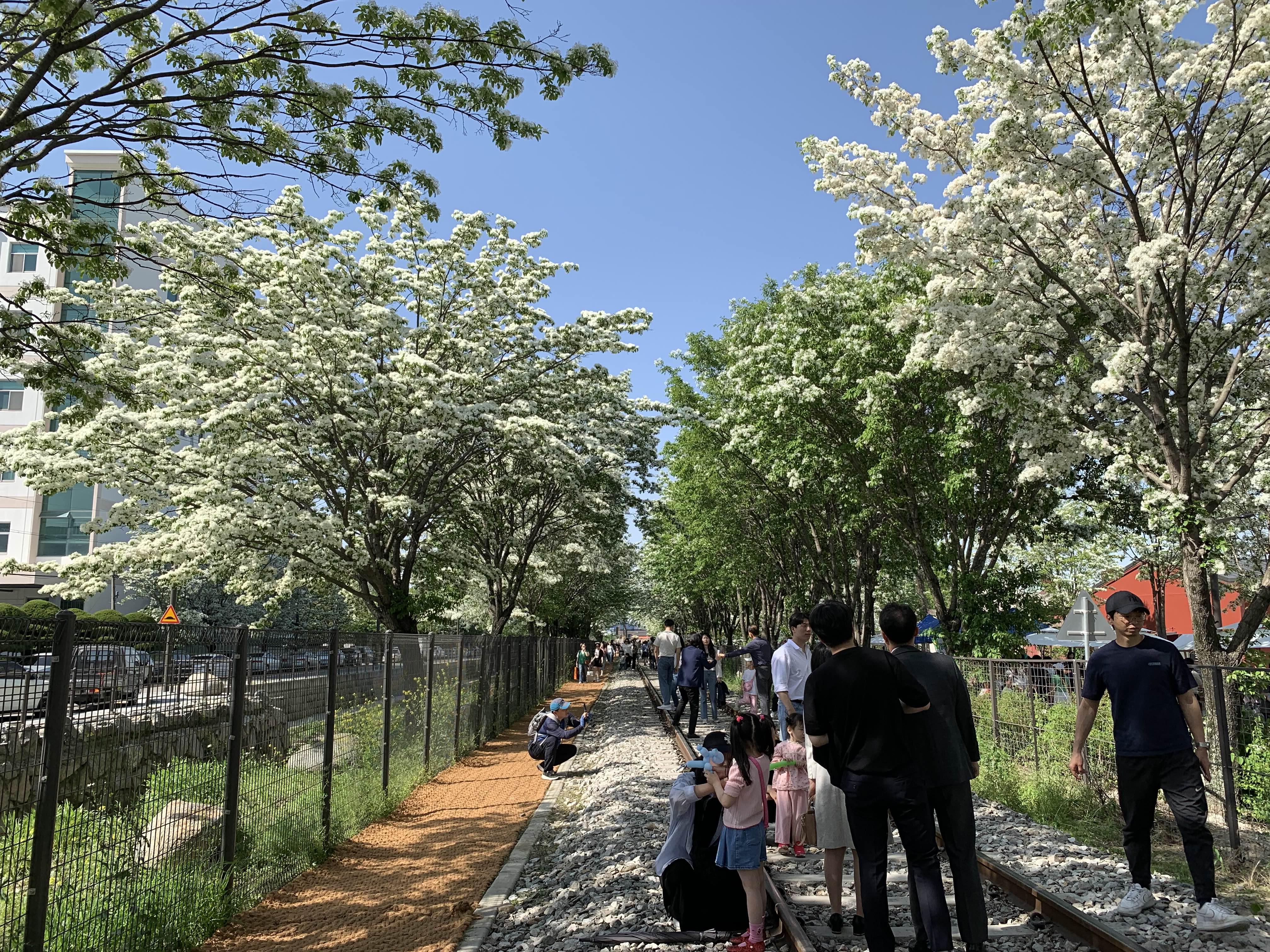 이팝나무가 한 곳에 많이 있고, 중간의 철길!! 분위기가 꽤 괜찮아 보이더군요.