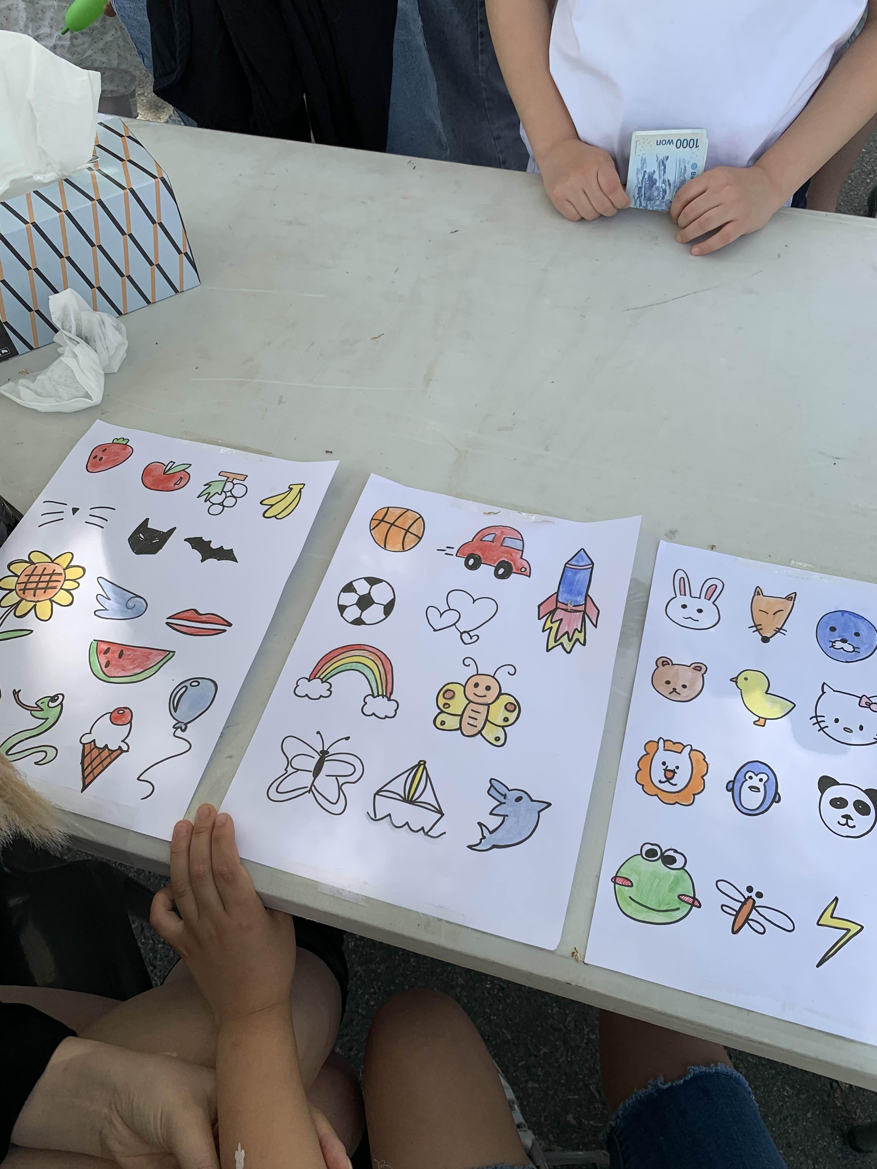플리마켓이 열렸더군요. 아이들이 좋아하는 풍선과 바디프린팅? 하나씩 체험!