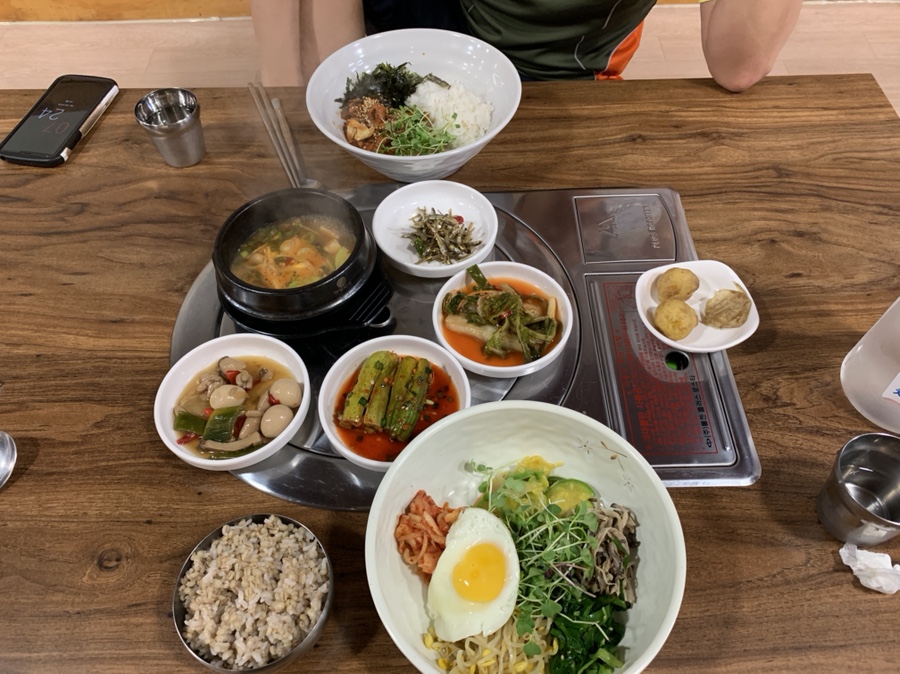 보리밥이 좀 질퍽해서 별로였네요. 반찬들이 맛이 없다기 보다 좀 오래된 반찬을 먹은 느낌이었습니다. 비빔장은 일반 고추장이라 별로였네요. 고추장만 나오는 것보다 양파, 길은 고기 등으로 양념장이 나왔으면 좋았겠다는 생각이 들었네요. 제육덮밥의 제육은 미리 만들어둔 제육이라.... 바로 조리한 고기를 좋아하는 저로서 별로였네요. 밥과 함께 먹을 된장찌개를 주는데.... 된장찌개도 좀 아쉬웠네요. 7,000원 보리밥이면, 근처 삼거리식당에서 5,000원 백반을 먹는 게 더 맛있을 거 같네요.
