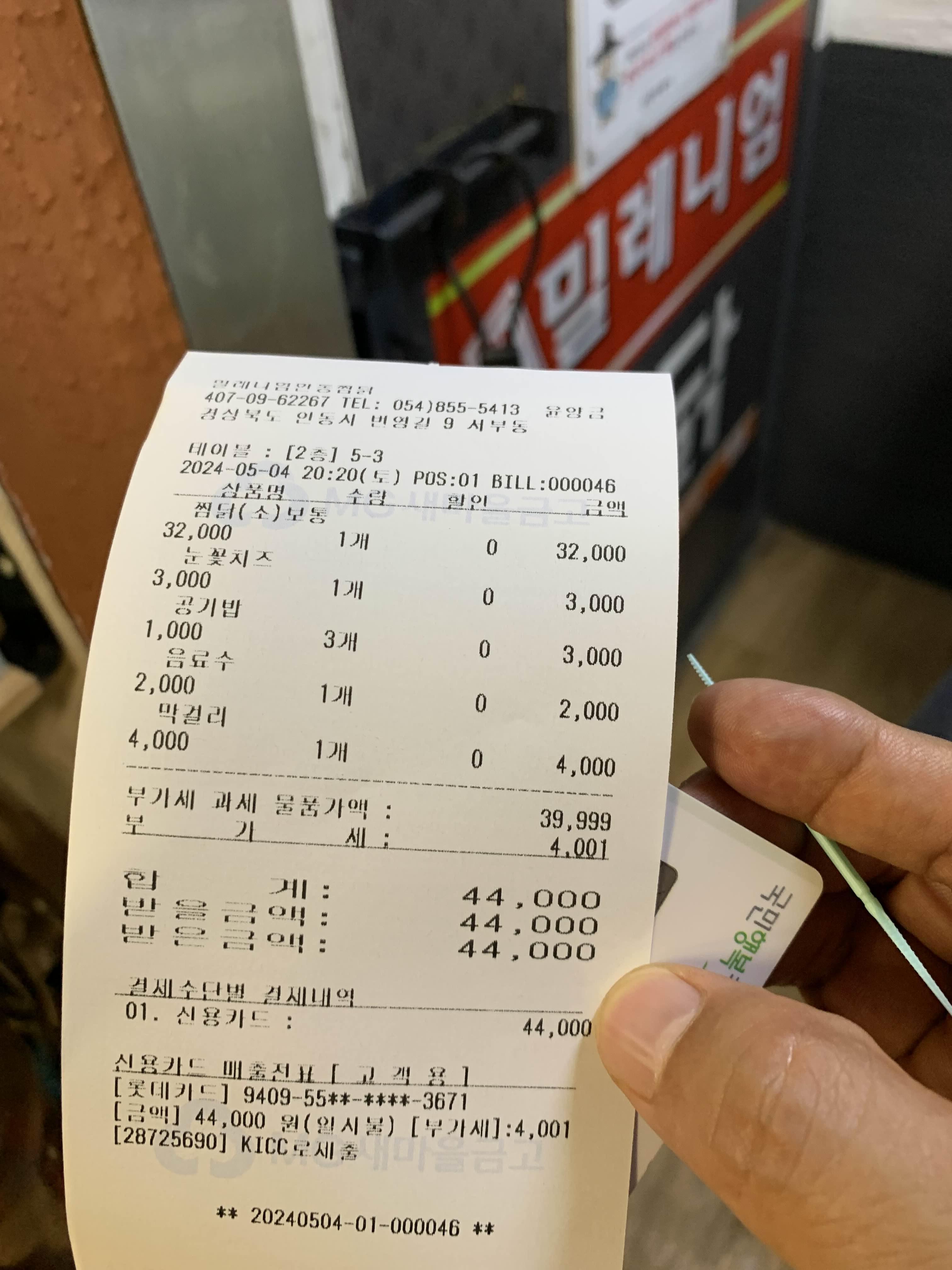44,000원!!! 가격이나 맛이나 괜찮다.