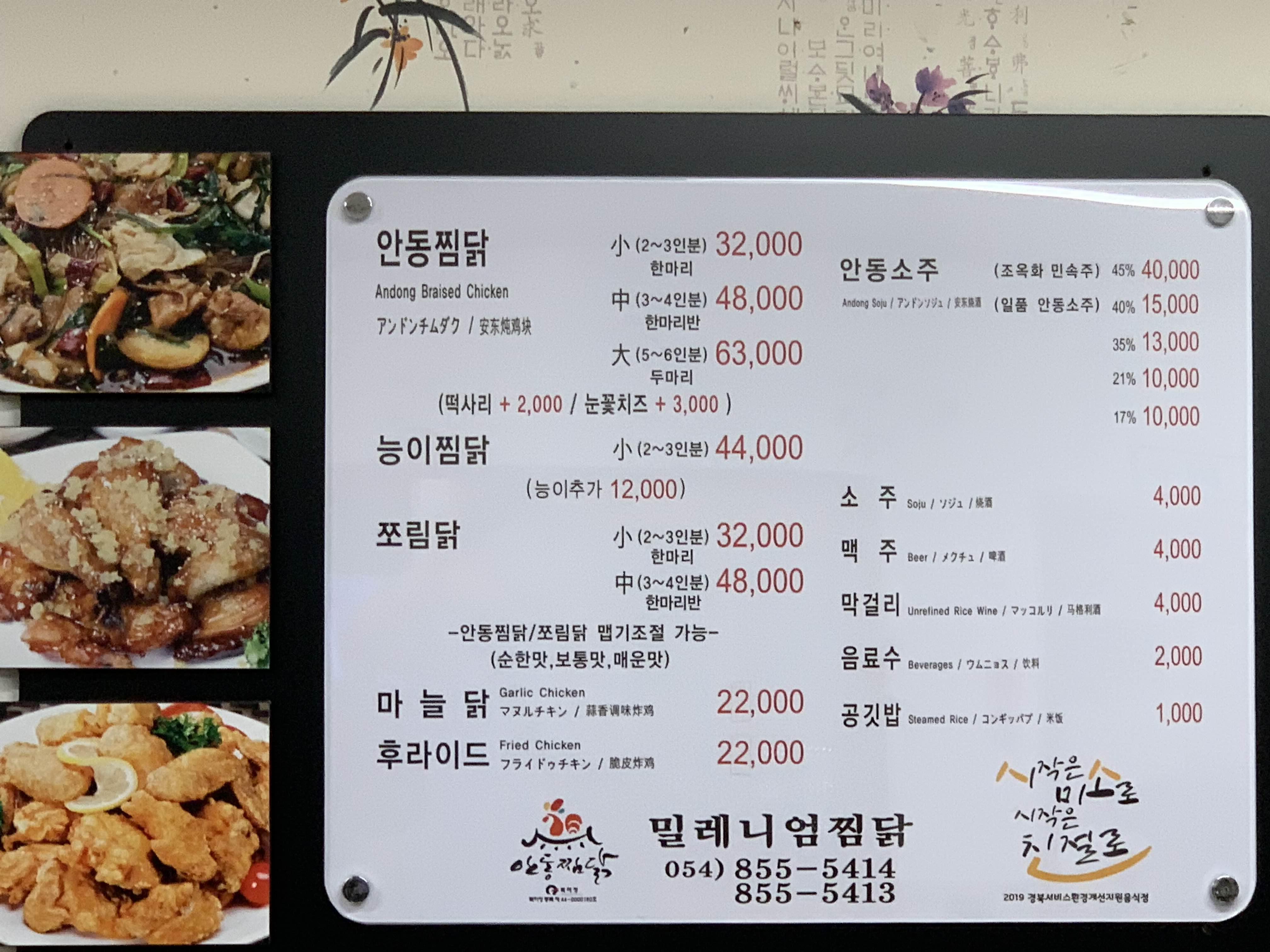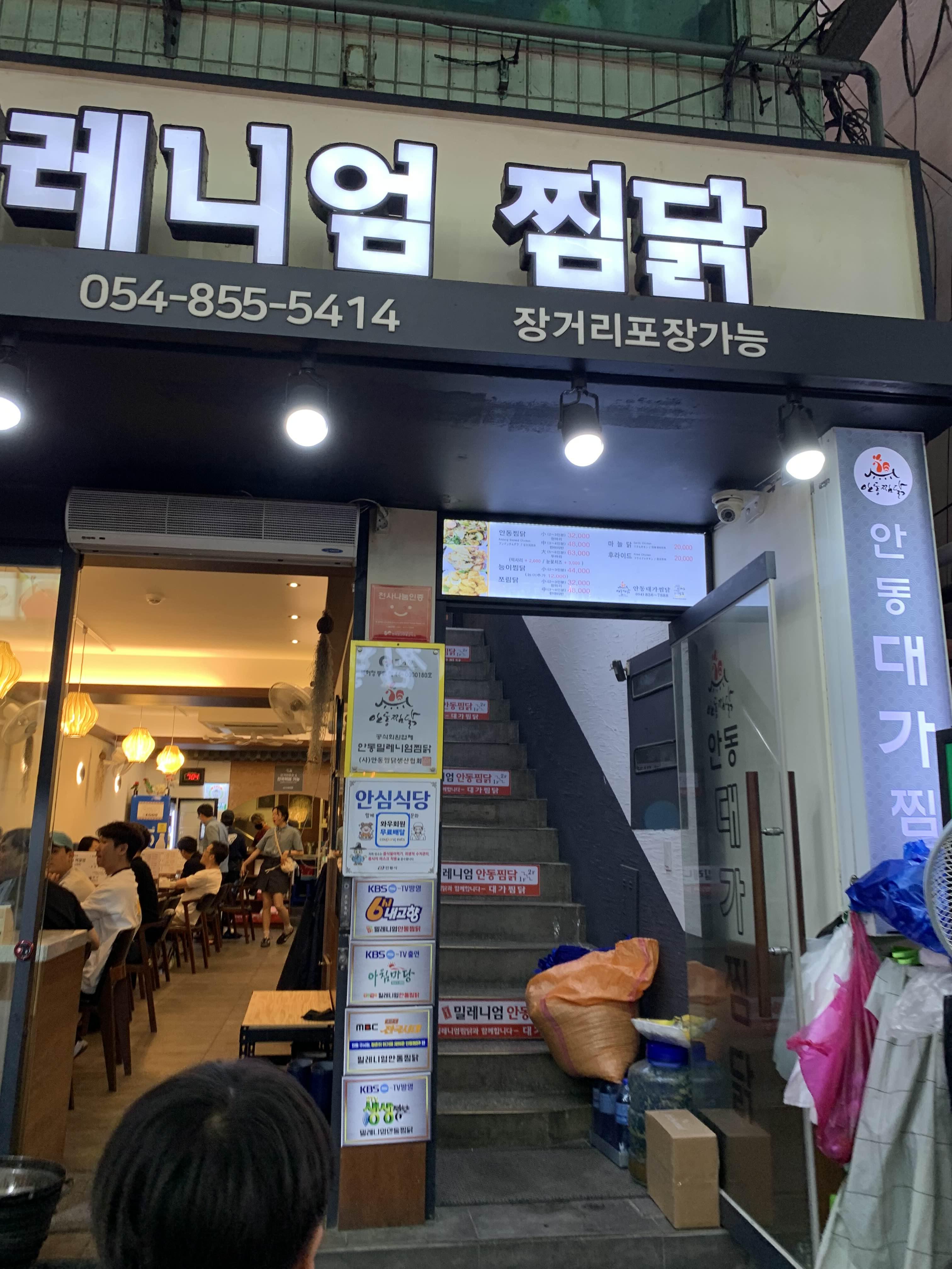 어린이날 연휴라서 그런지 찜닭 골목에는 많은 사람들로 가득했다. 많은 찜닭을 판매하는 식당에 사람들로 가득한 있었고..... 어느 식당을 들어가도 맛은 있어 보였다. 그중 밀레니엄 찜닭으로 들어가 보았다. 아내가 추천한?ㅎ