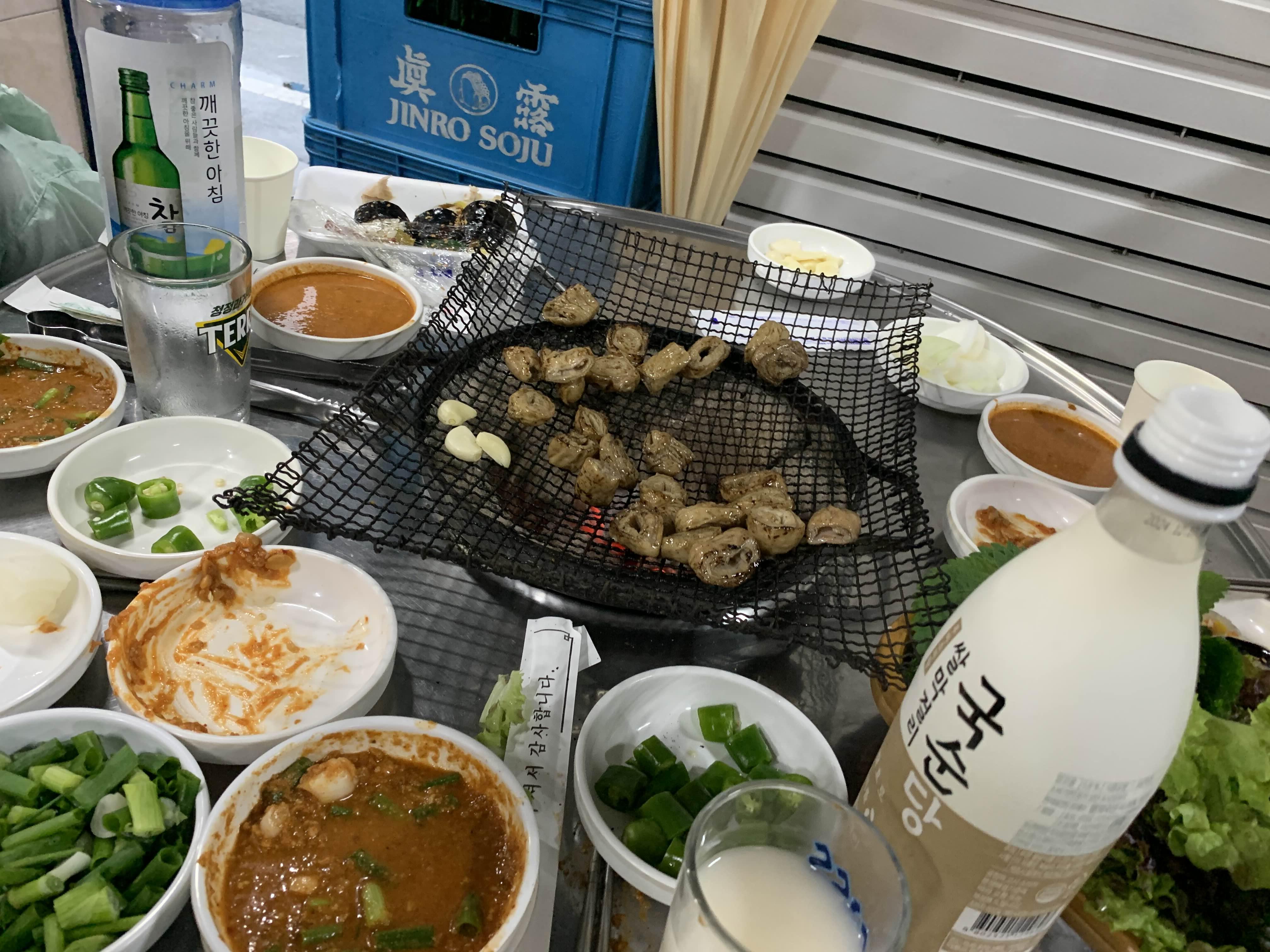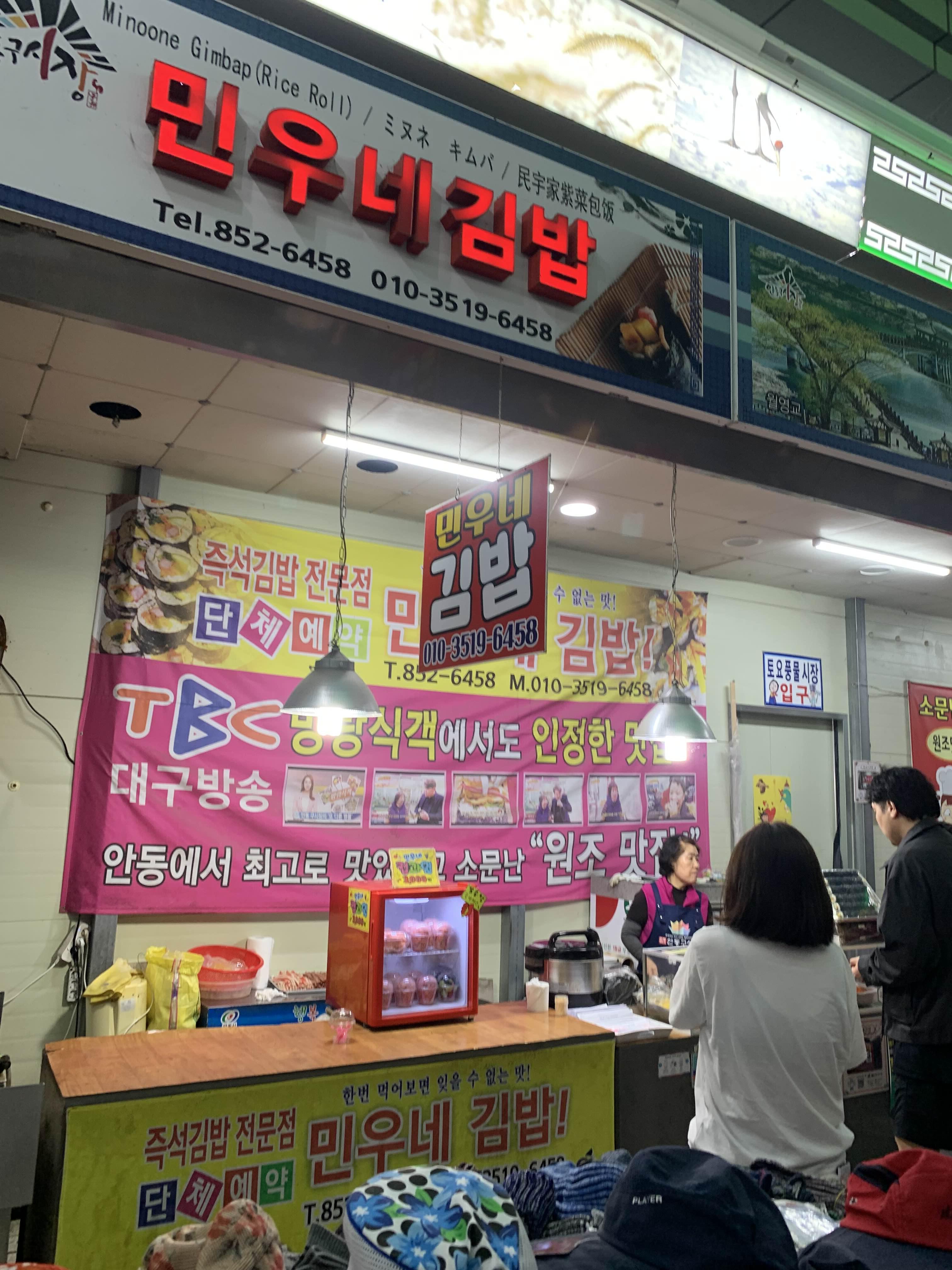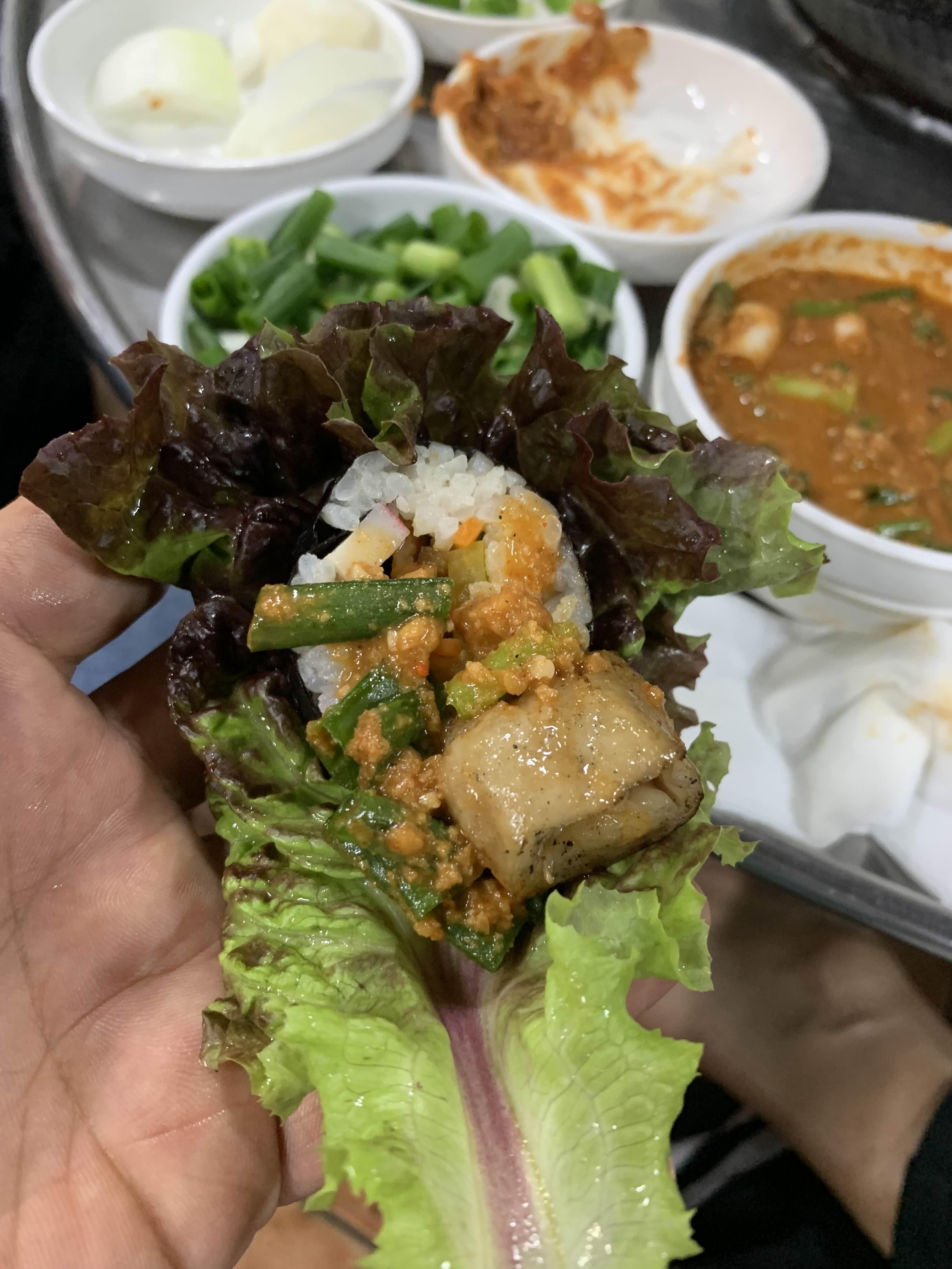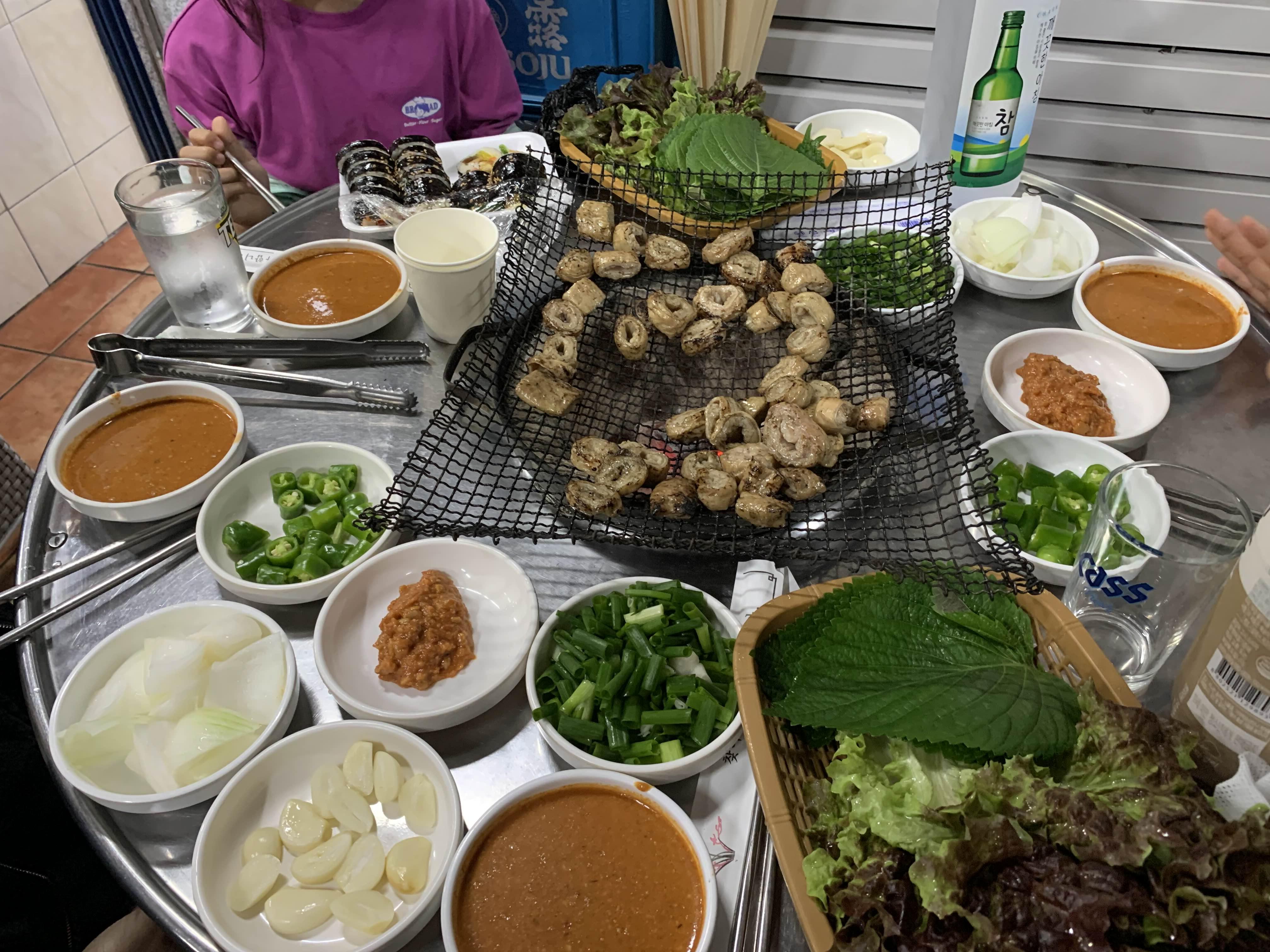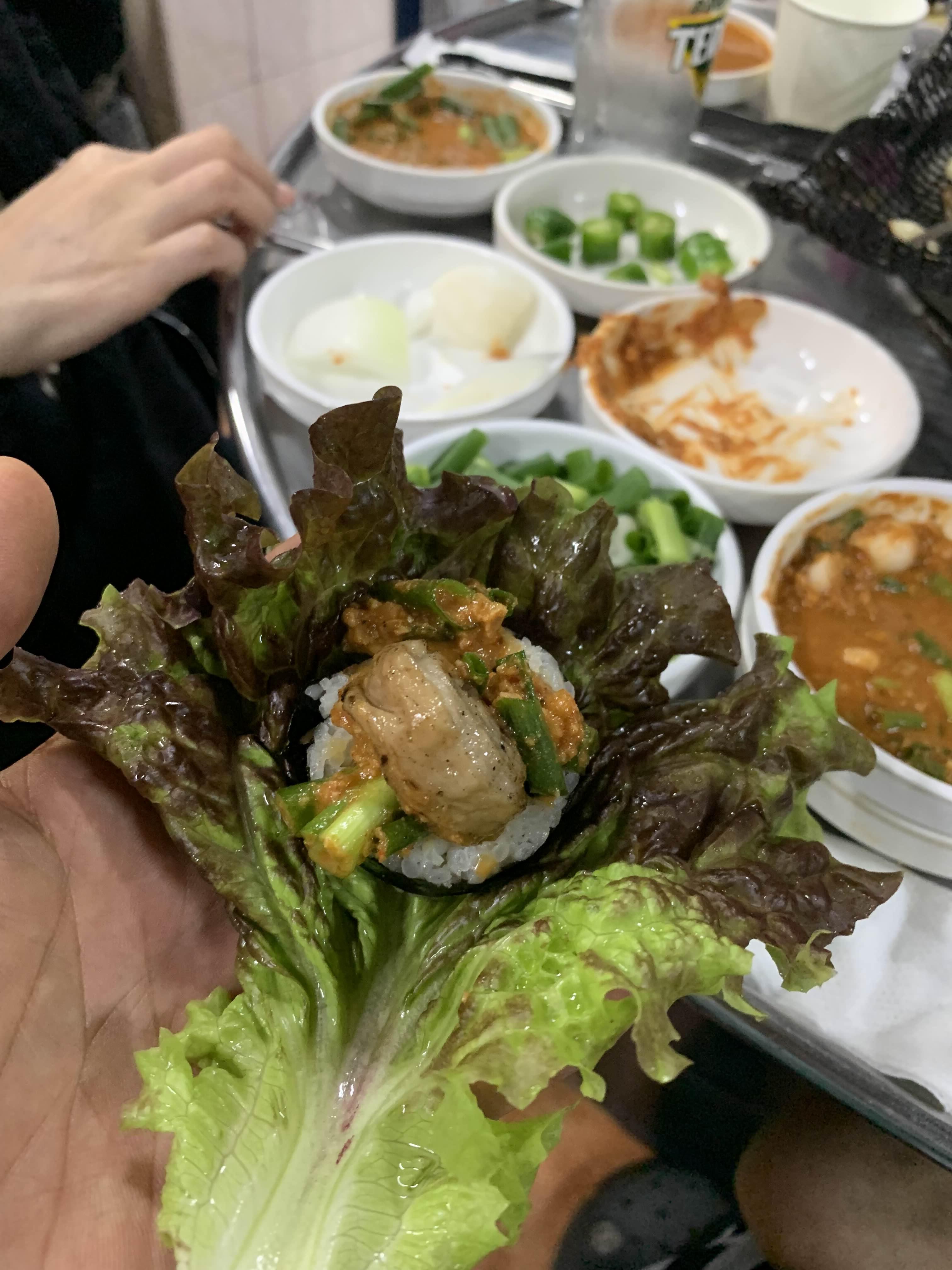 (아이용 김밥을 막창과 쌈 사 먹으니 별미였다.)
