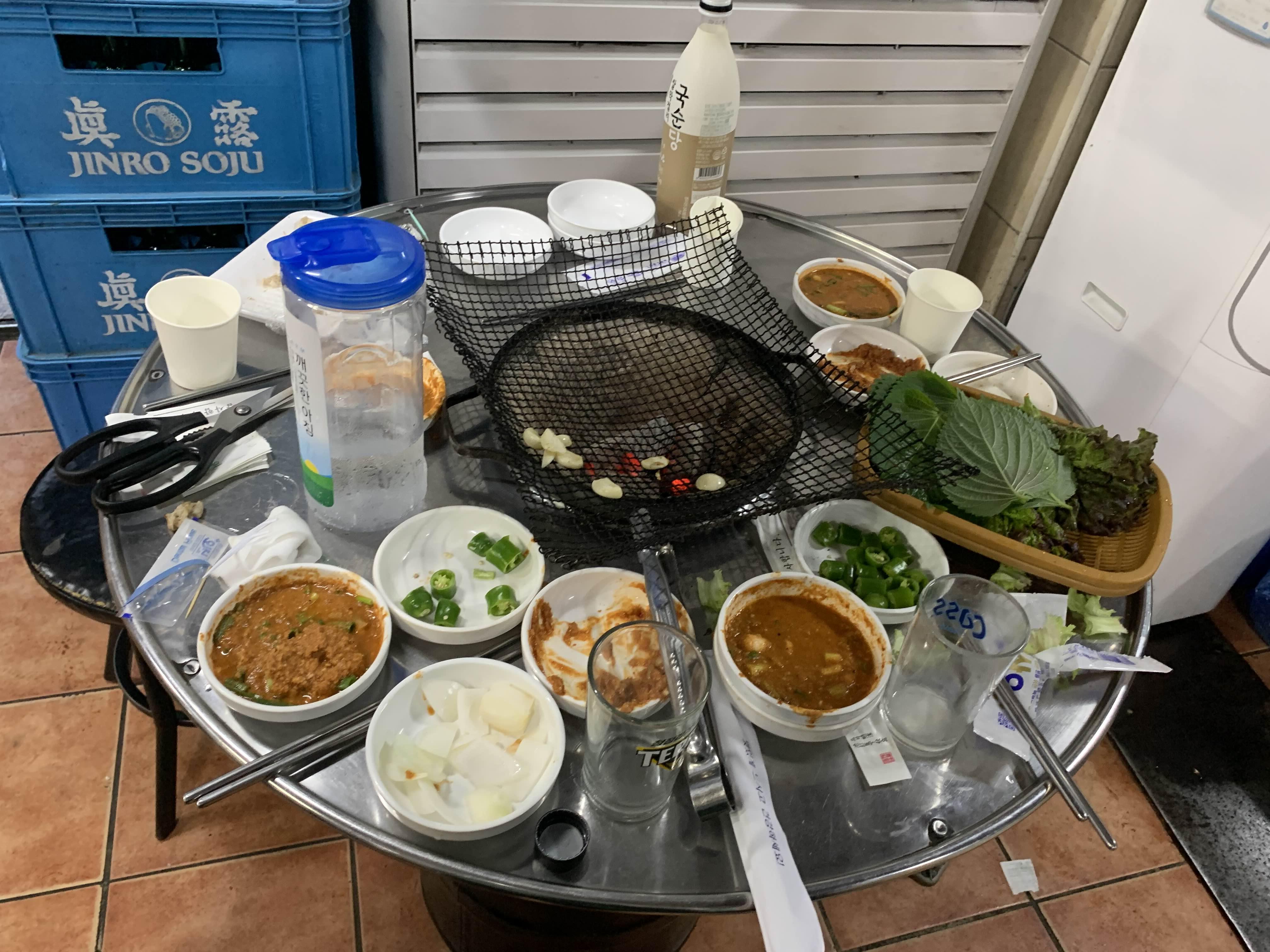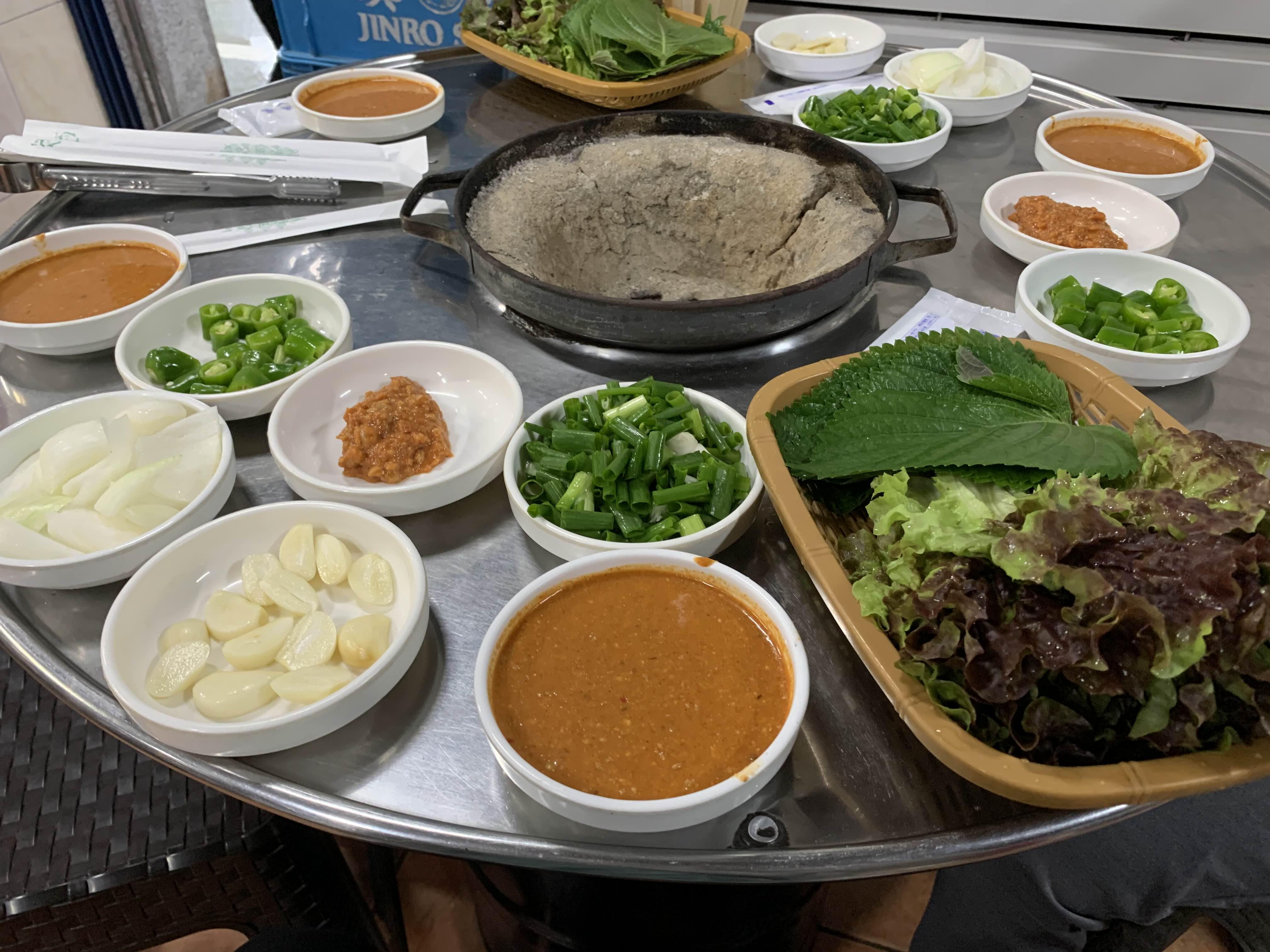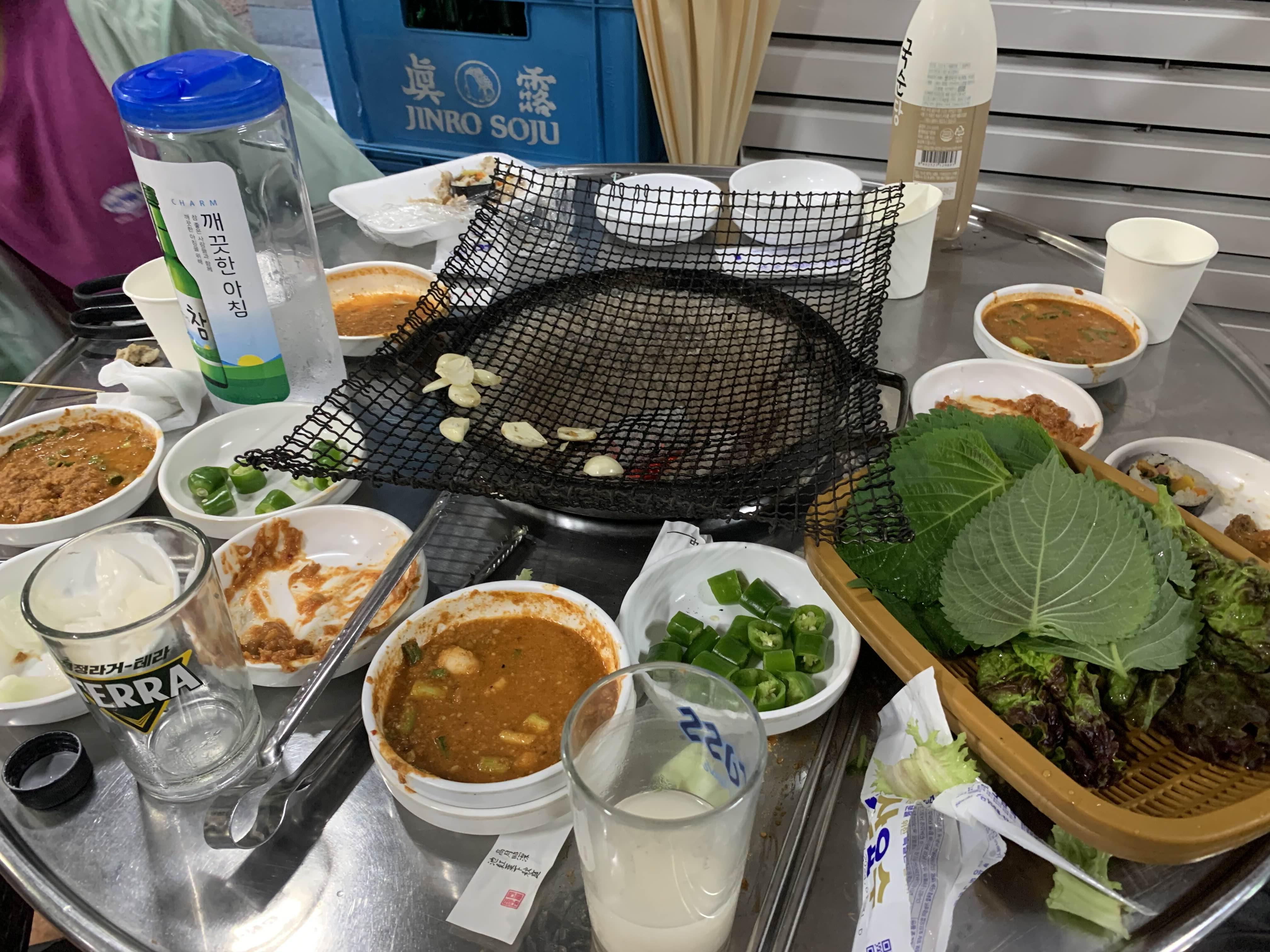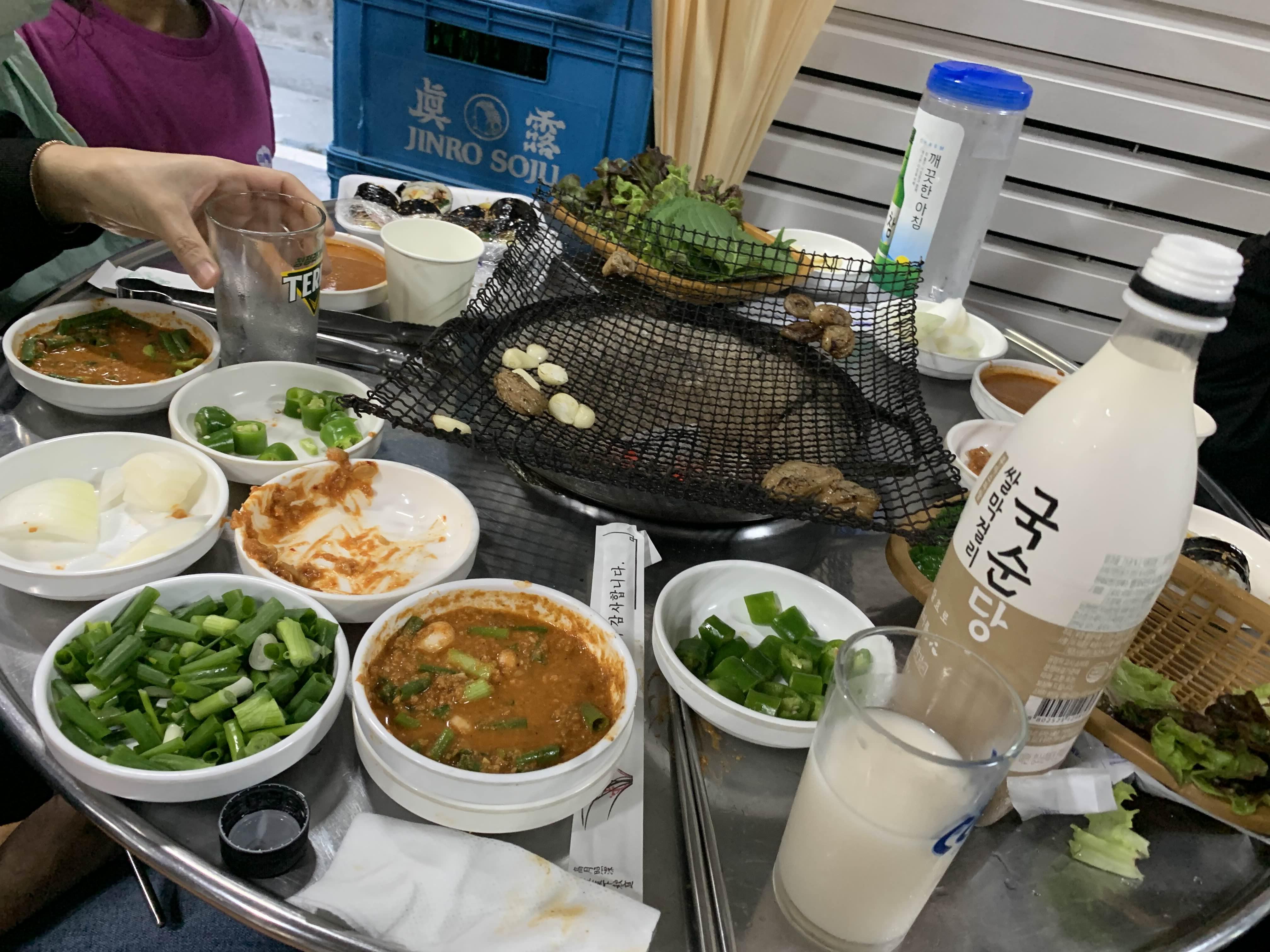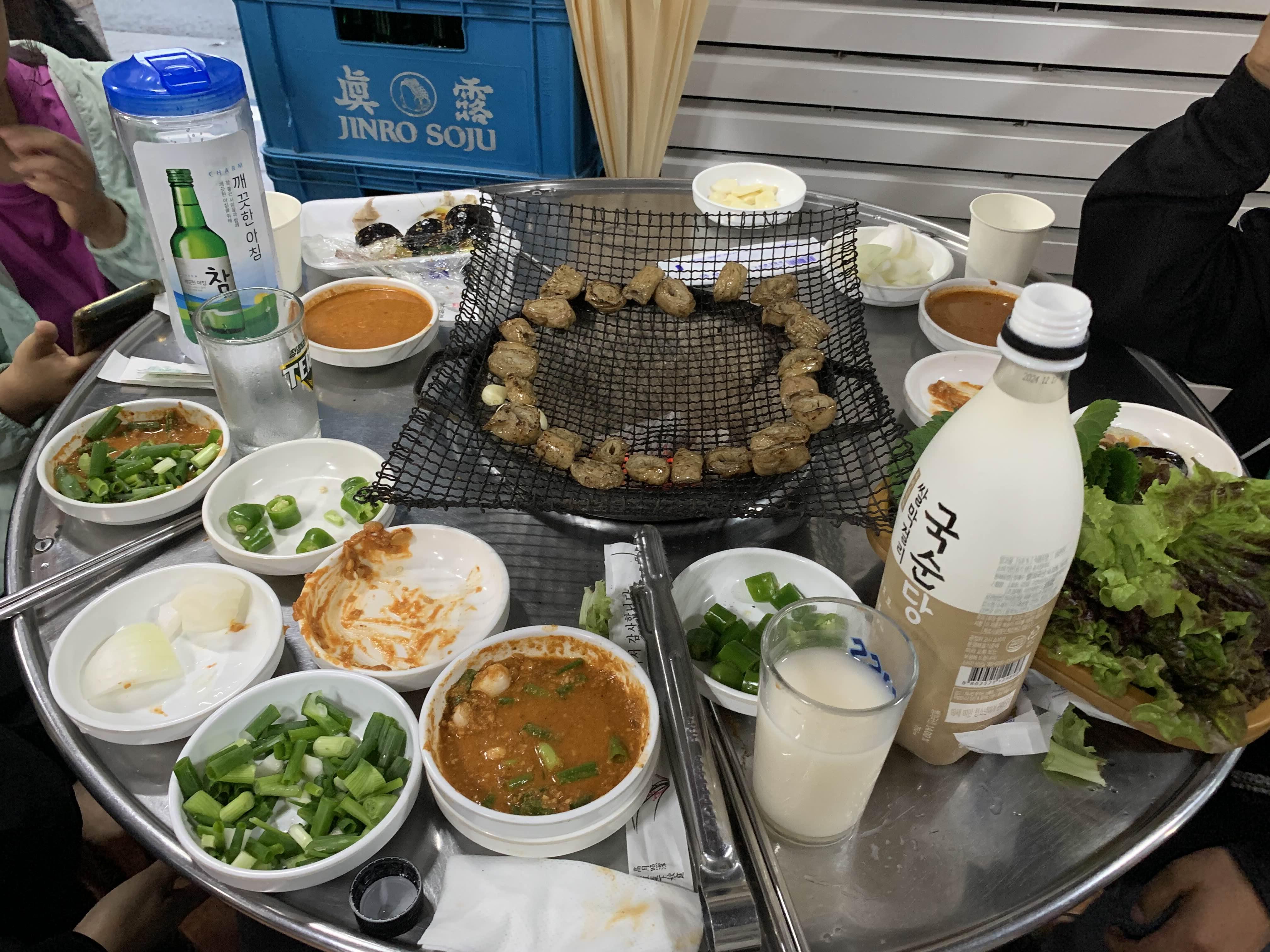 (아이용 김밥을 막창과 쌈 사 먹으니 별미였다.)