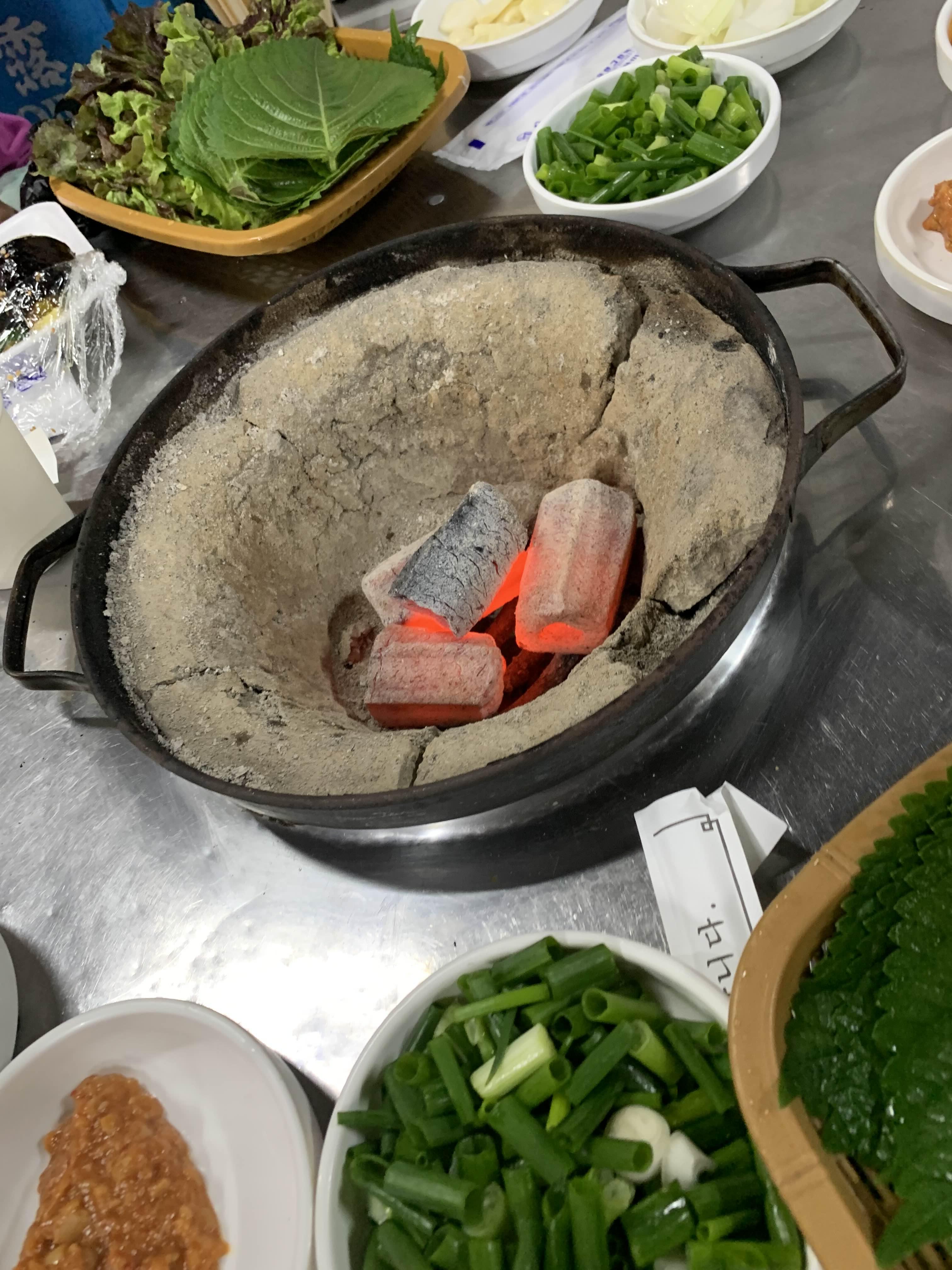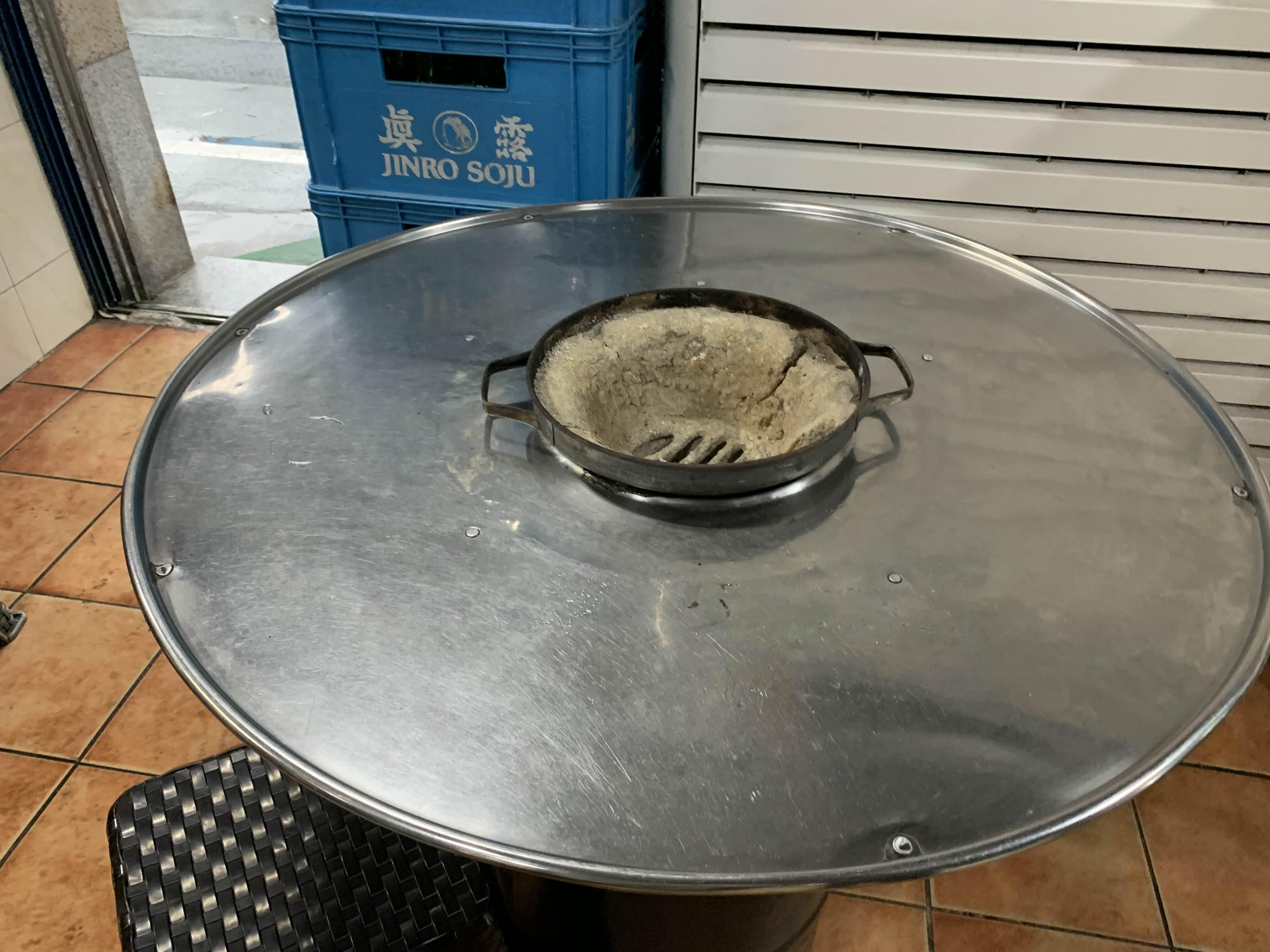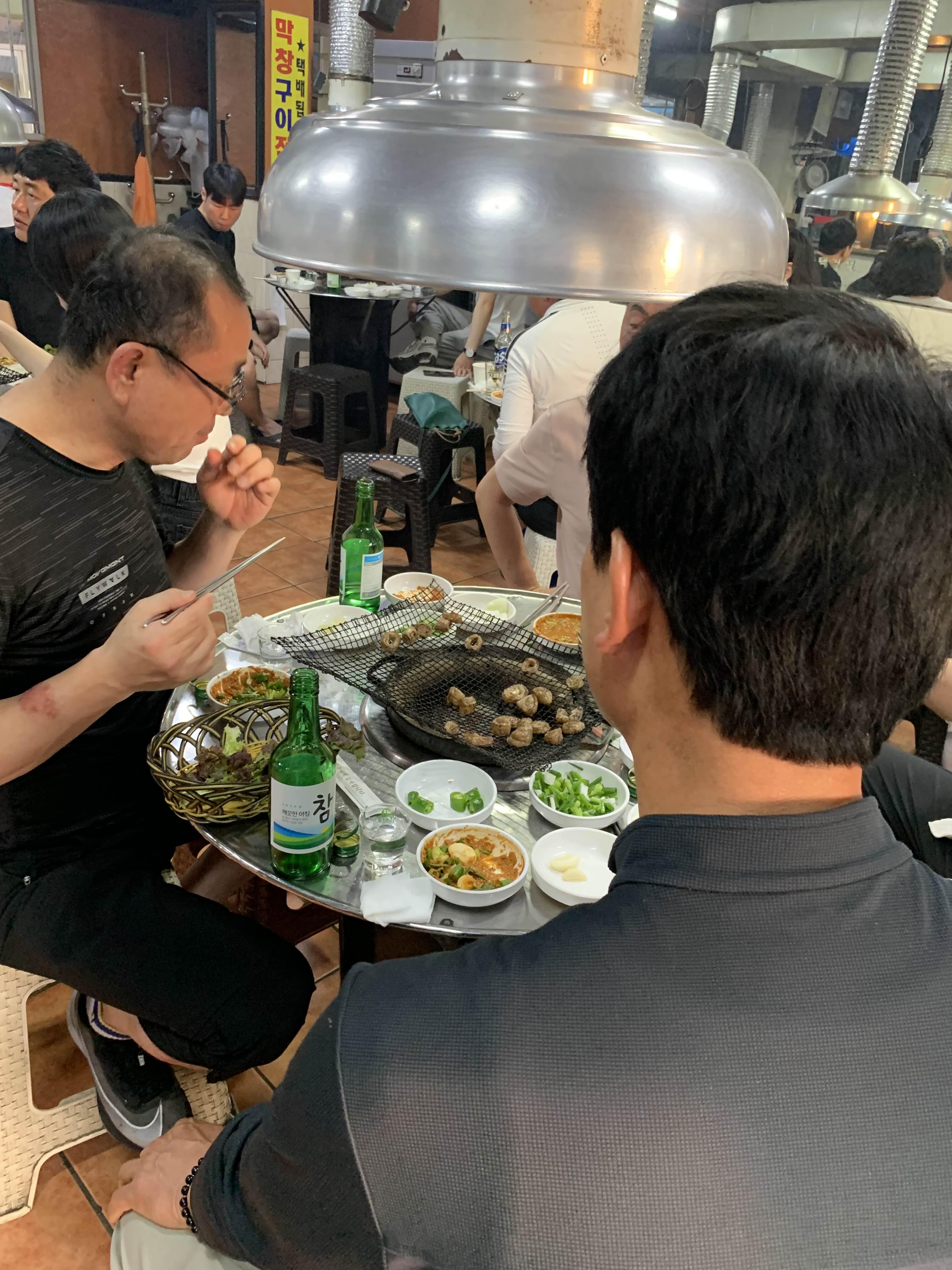 막창을 주문하면..... 구워서 나온다. 바로 먹을 수 있어서 편하다. 식탁의 불판은.... 살포시 데워주기만 한다. ㅎㅎ