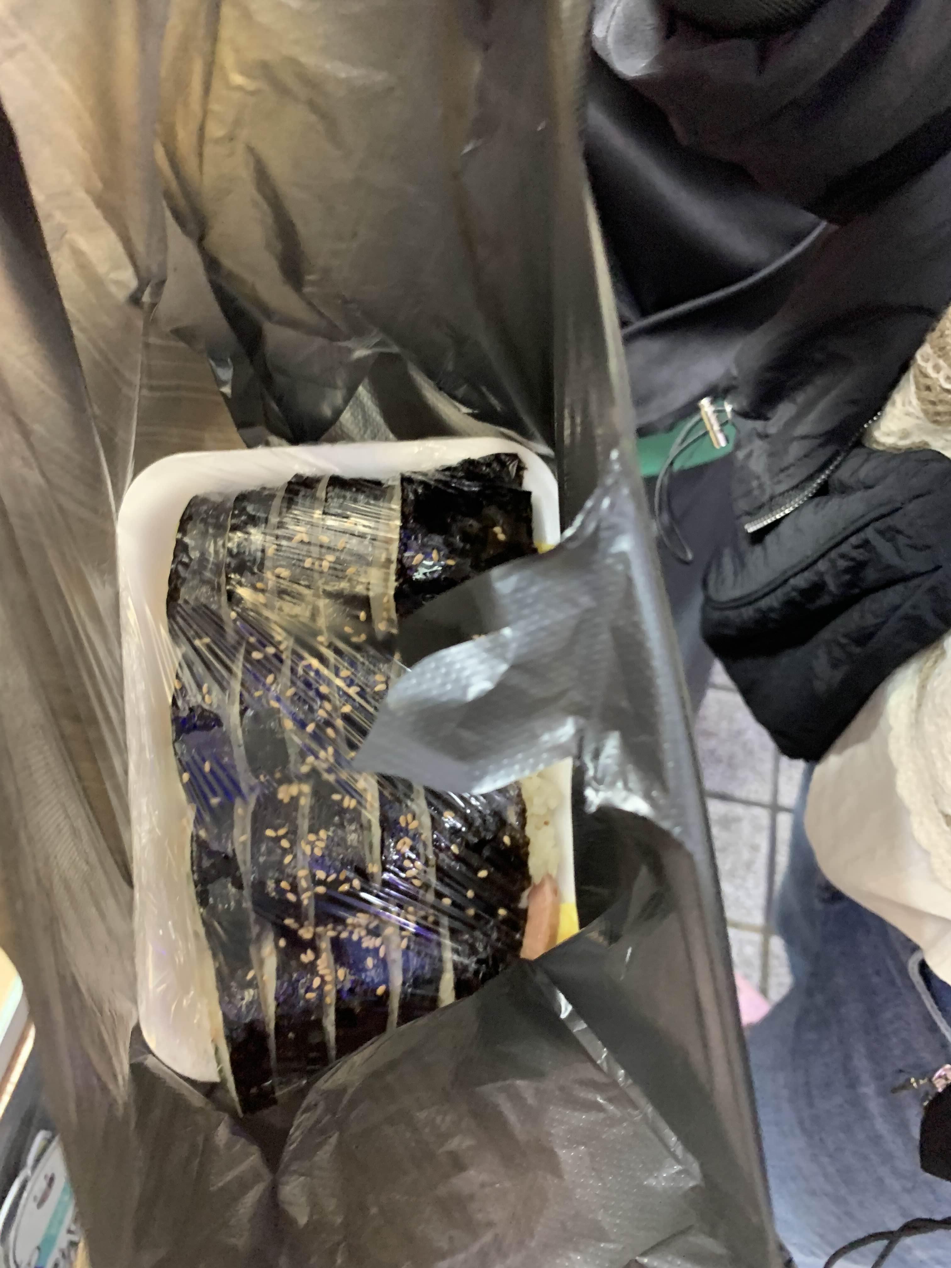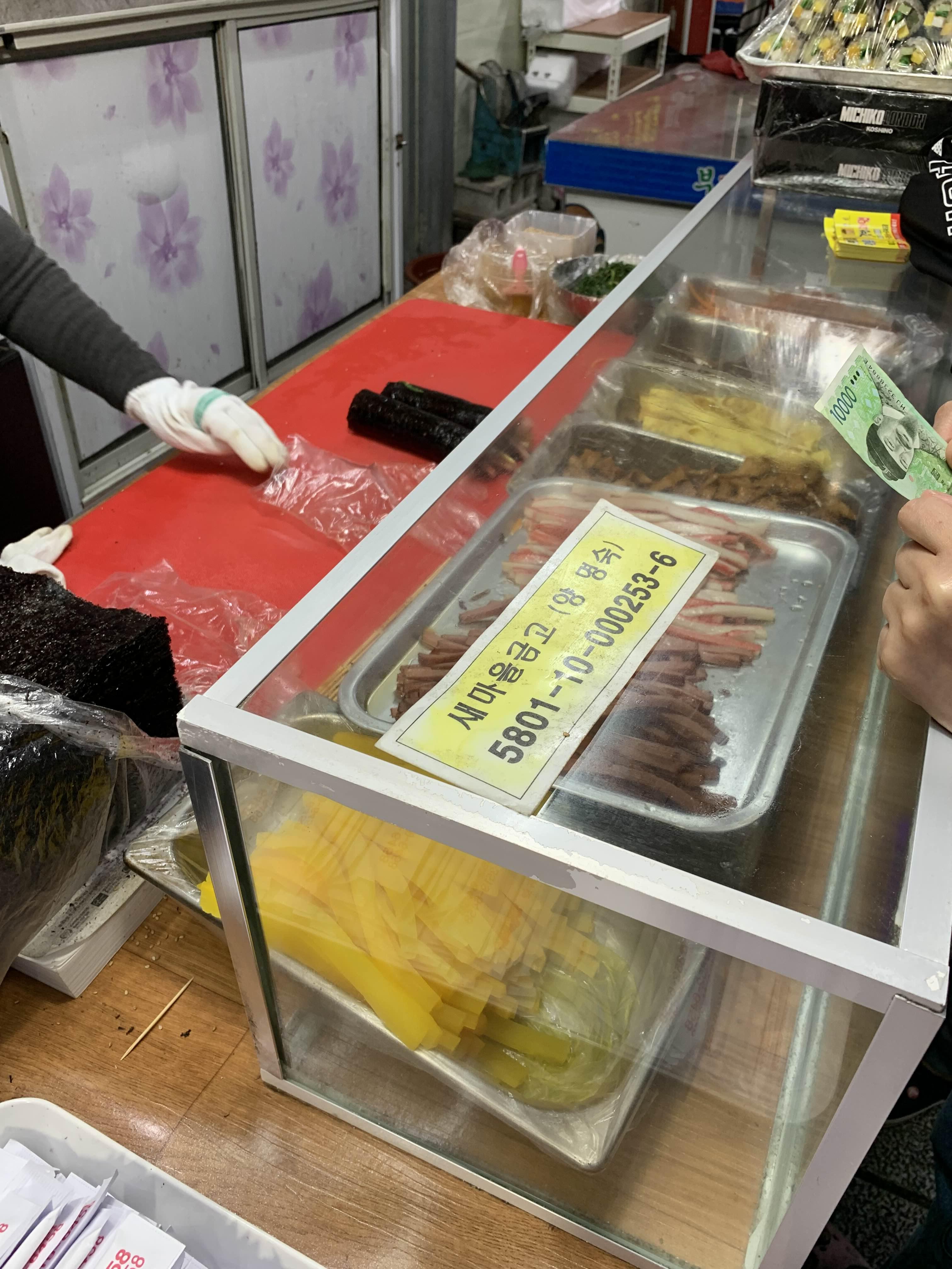 아이들용 식사를 시장에서 김밥으로 준비한다.