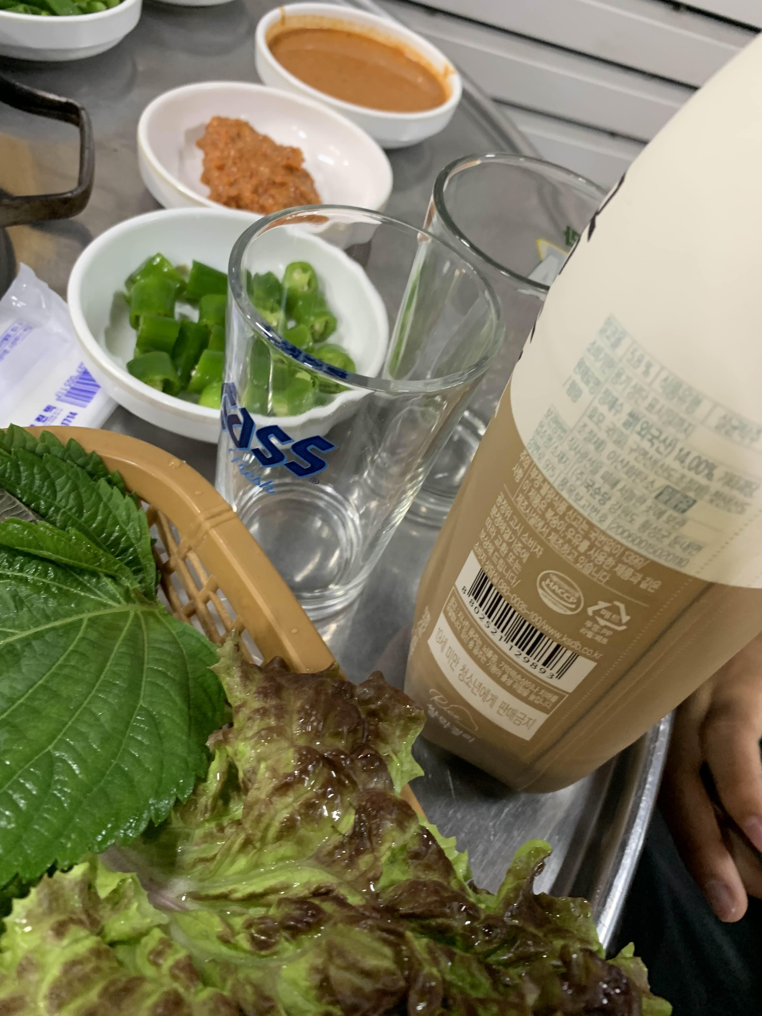곱창과 막걸리가 어울리지 않아서 그런지... 막걸리잔은 글라스로 나왔다.