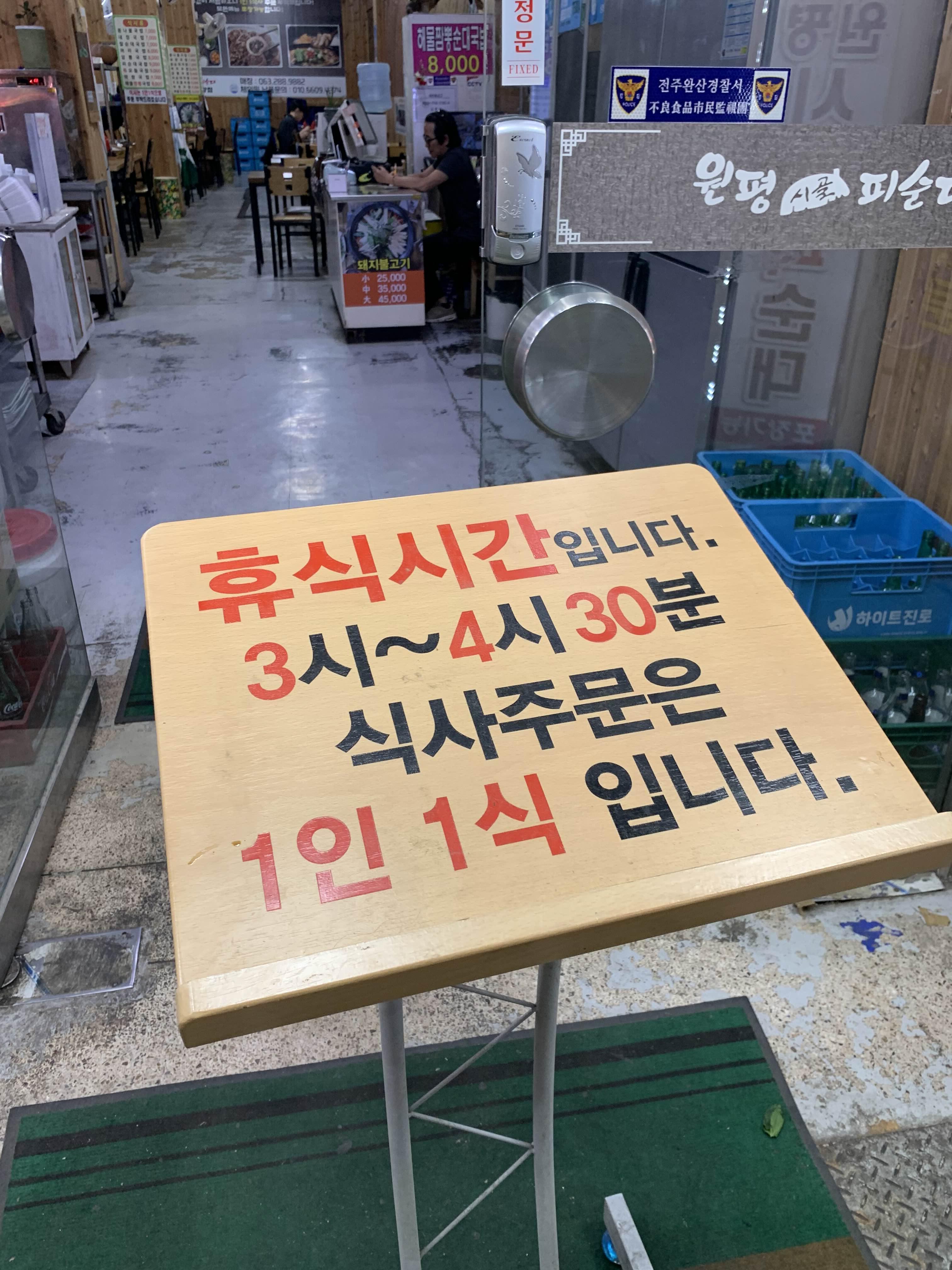 조금 늦게 식당에 방문하니... 휴게시간에..... 퇴장!ㅎㅎ