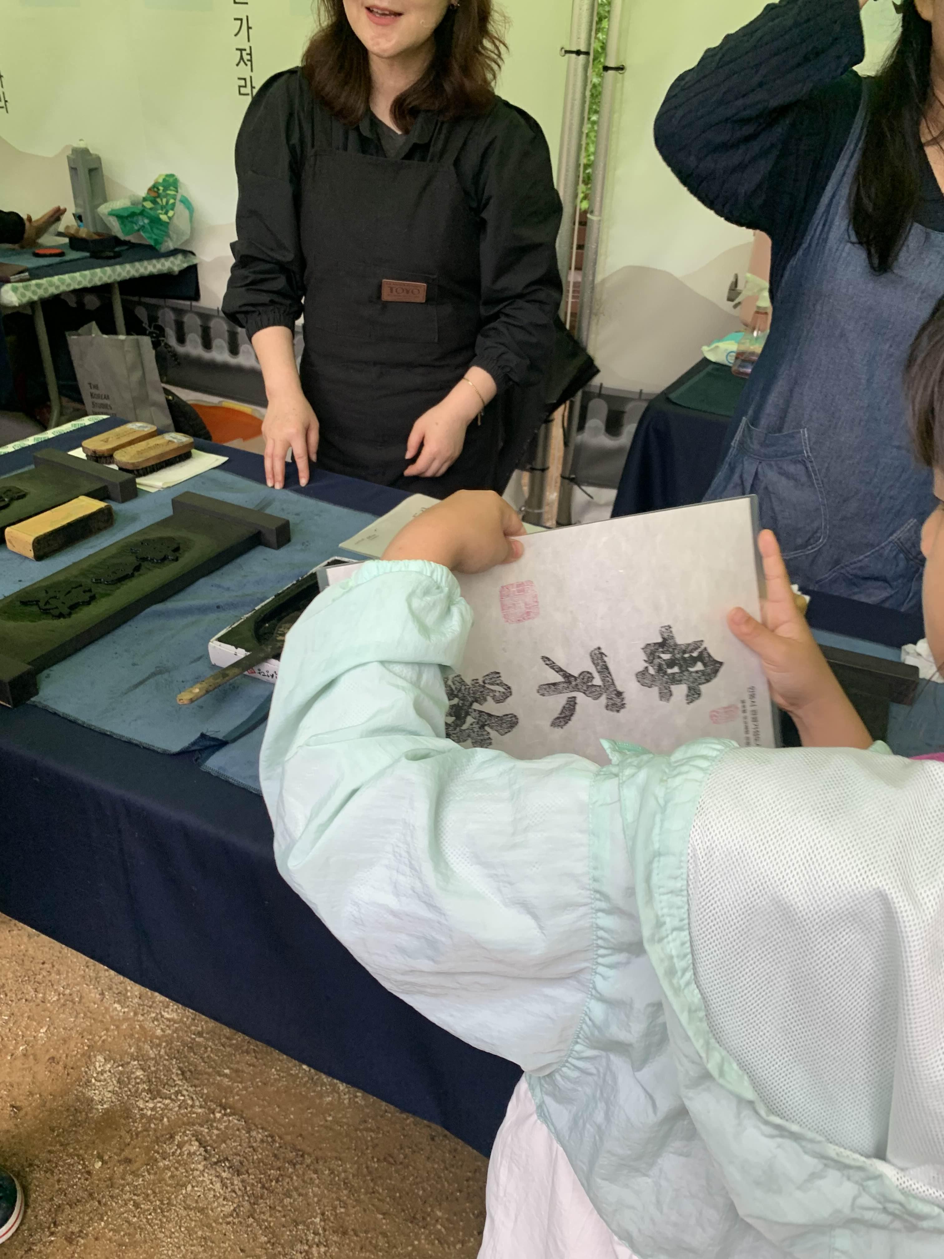 목판인출체험을 진행하고 있다.ㅎㅎ
