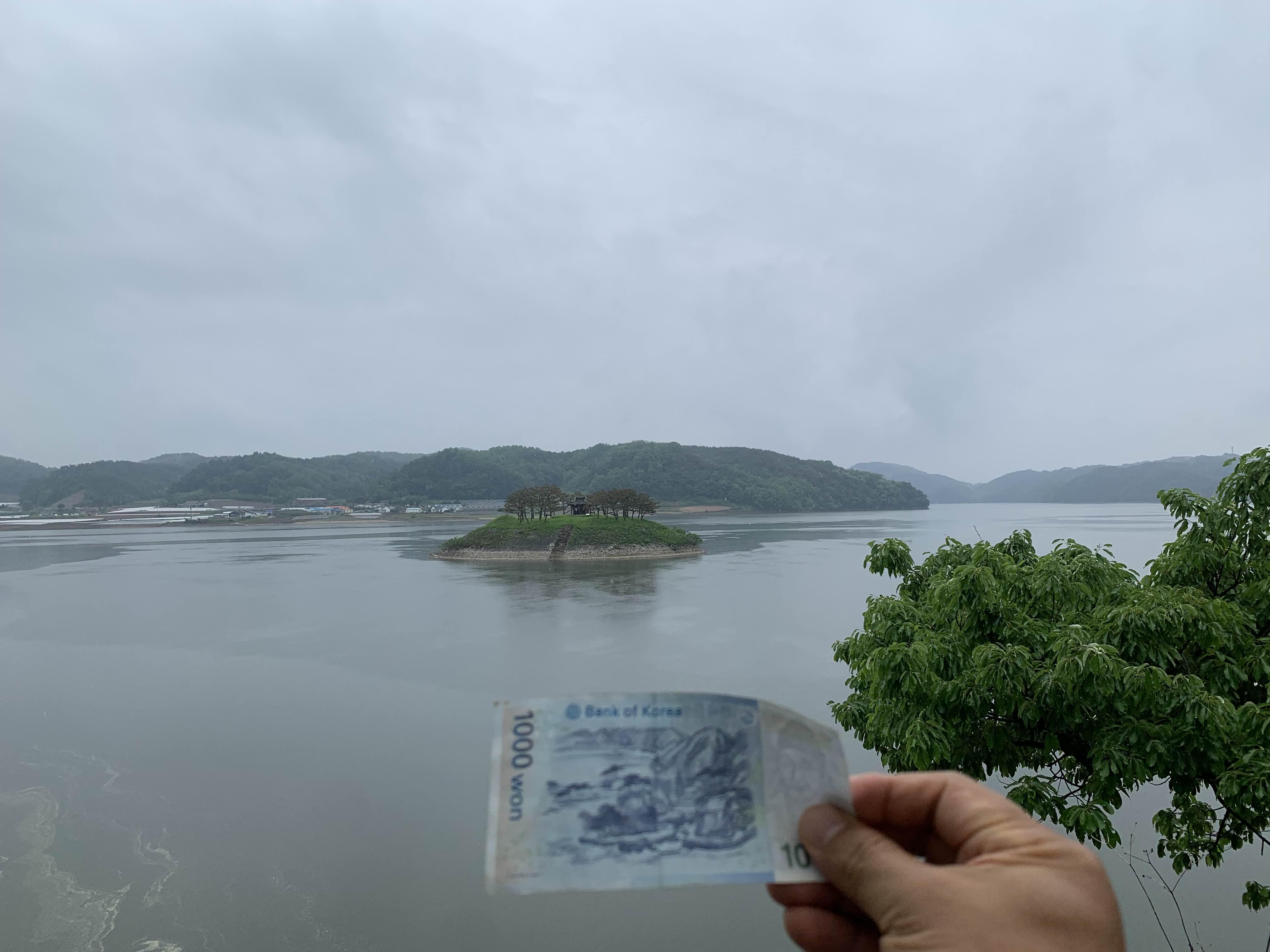 예전에는 육지였으나 1975년 안양댐 건설로 인해 수몰되는 장소로..