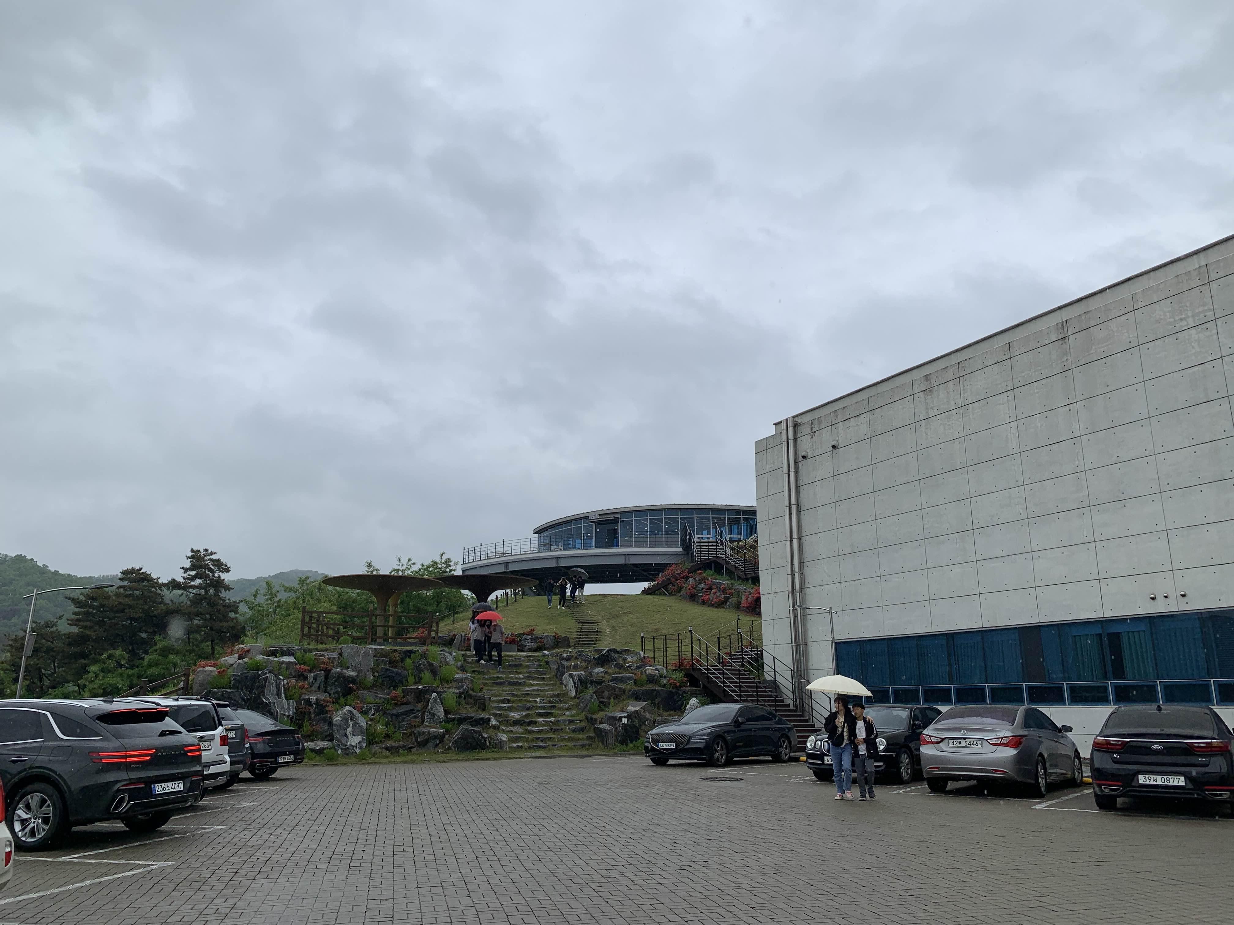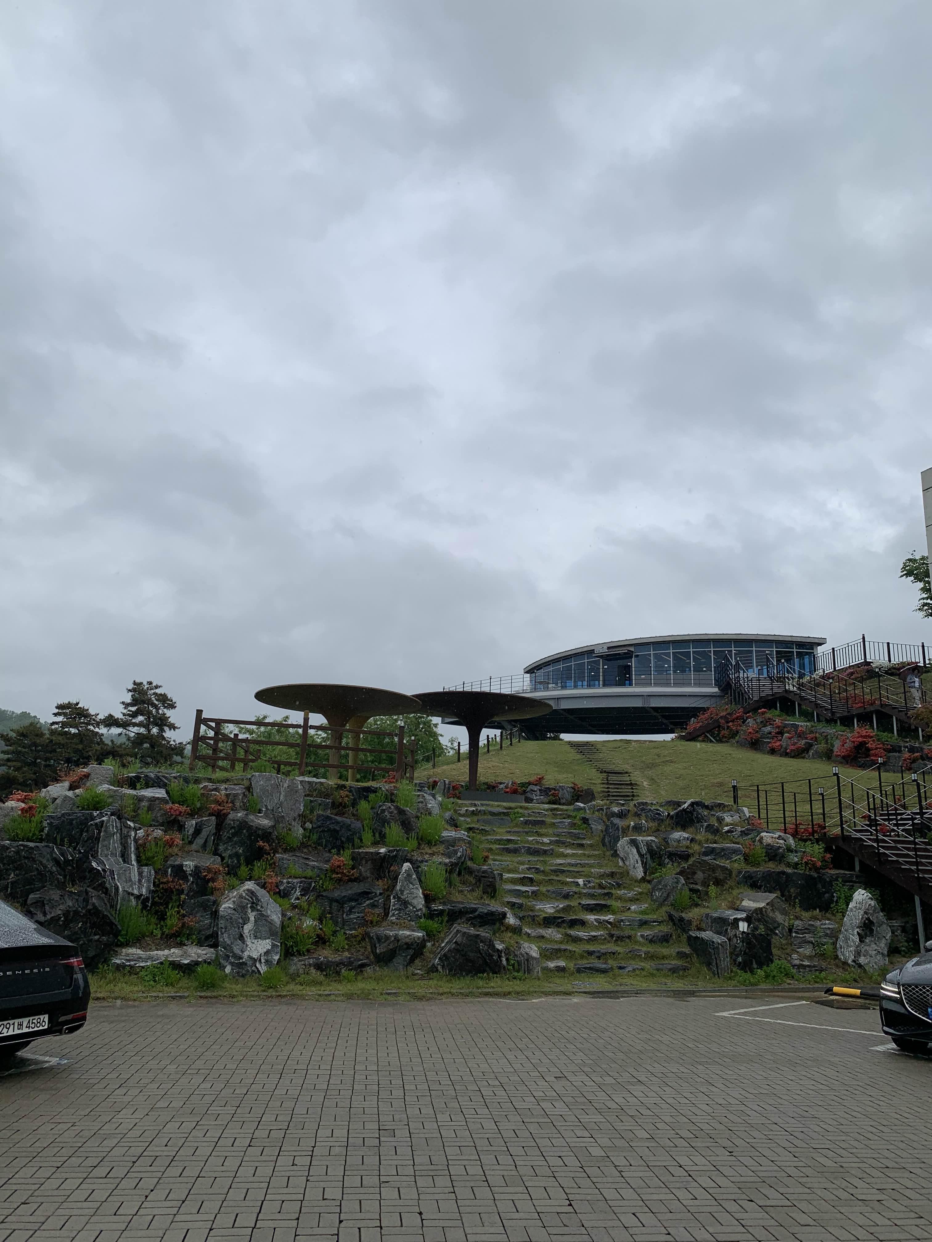 주차장에 주차하고 카페는 걸어서 올라가야 한다.