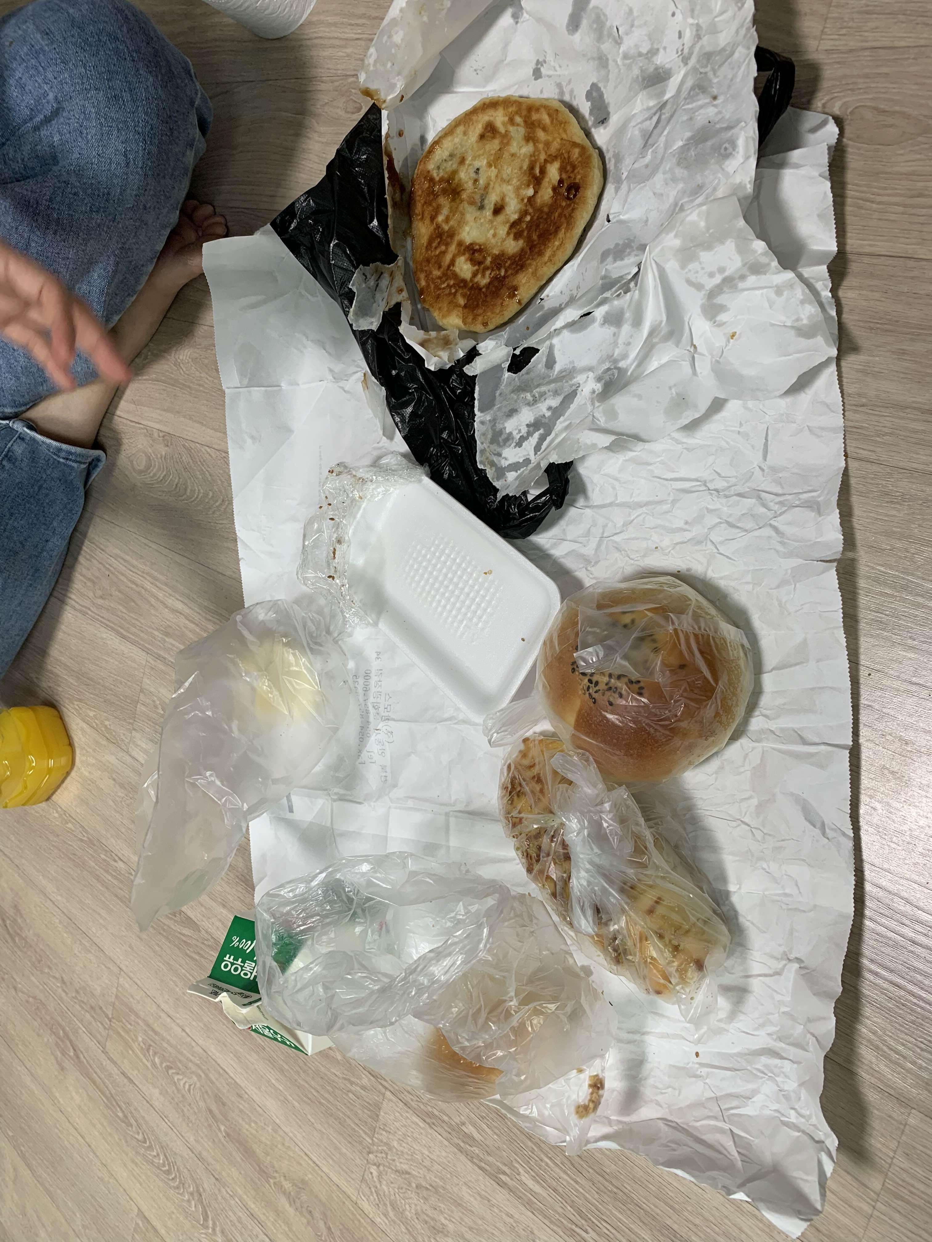 아침으로 이것저것 먹었더니... 남는 거는 김밥과 호떡이 아닌... 빵이 남았다.