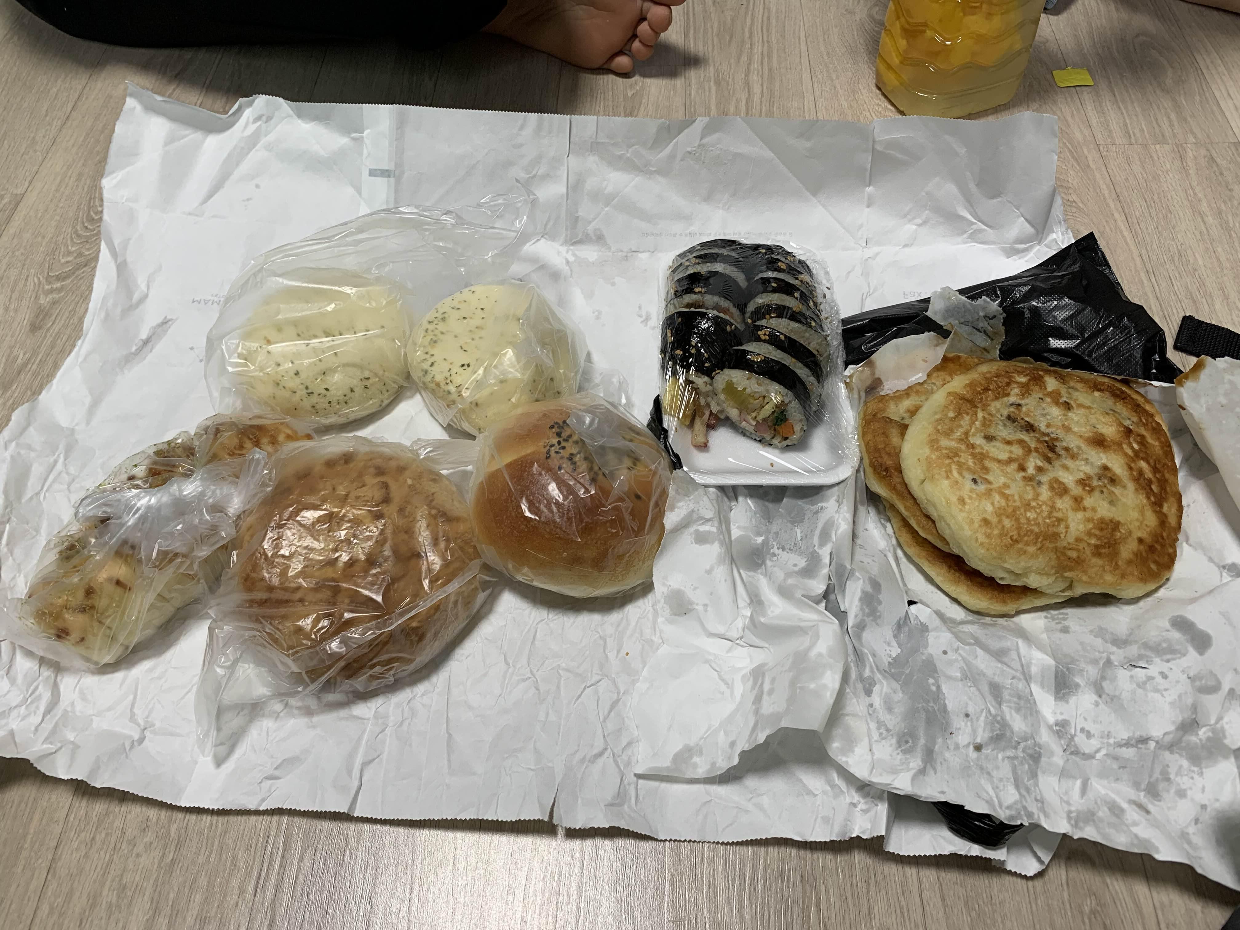 빵 사 오면서 겸사겸사 사 왔던 김밥과 호떡이 참 맛있었다.