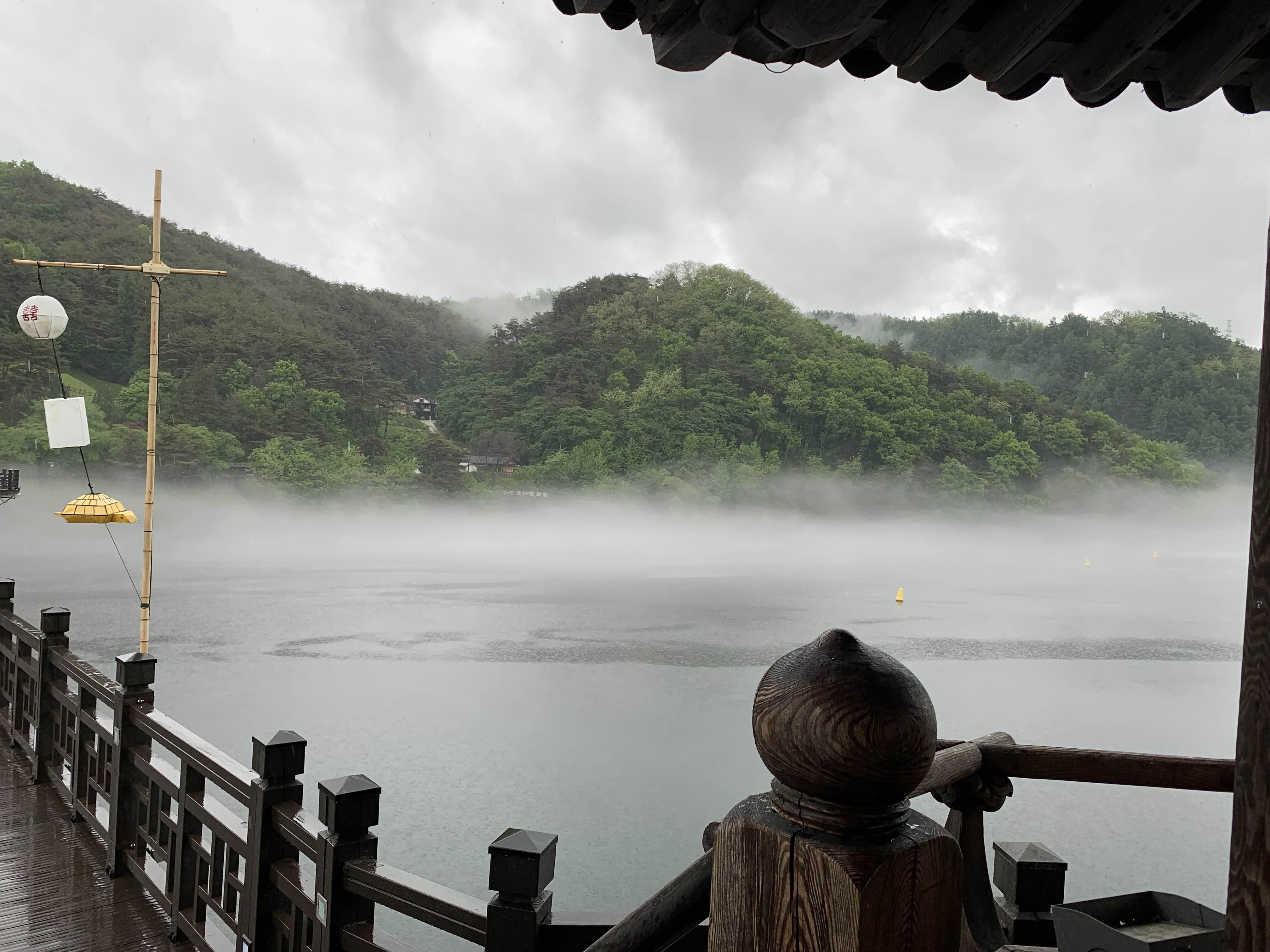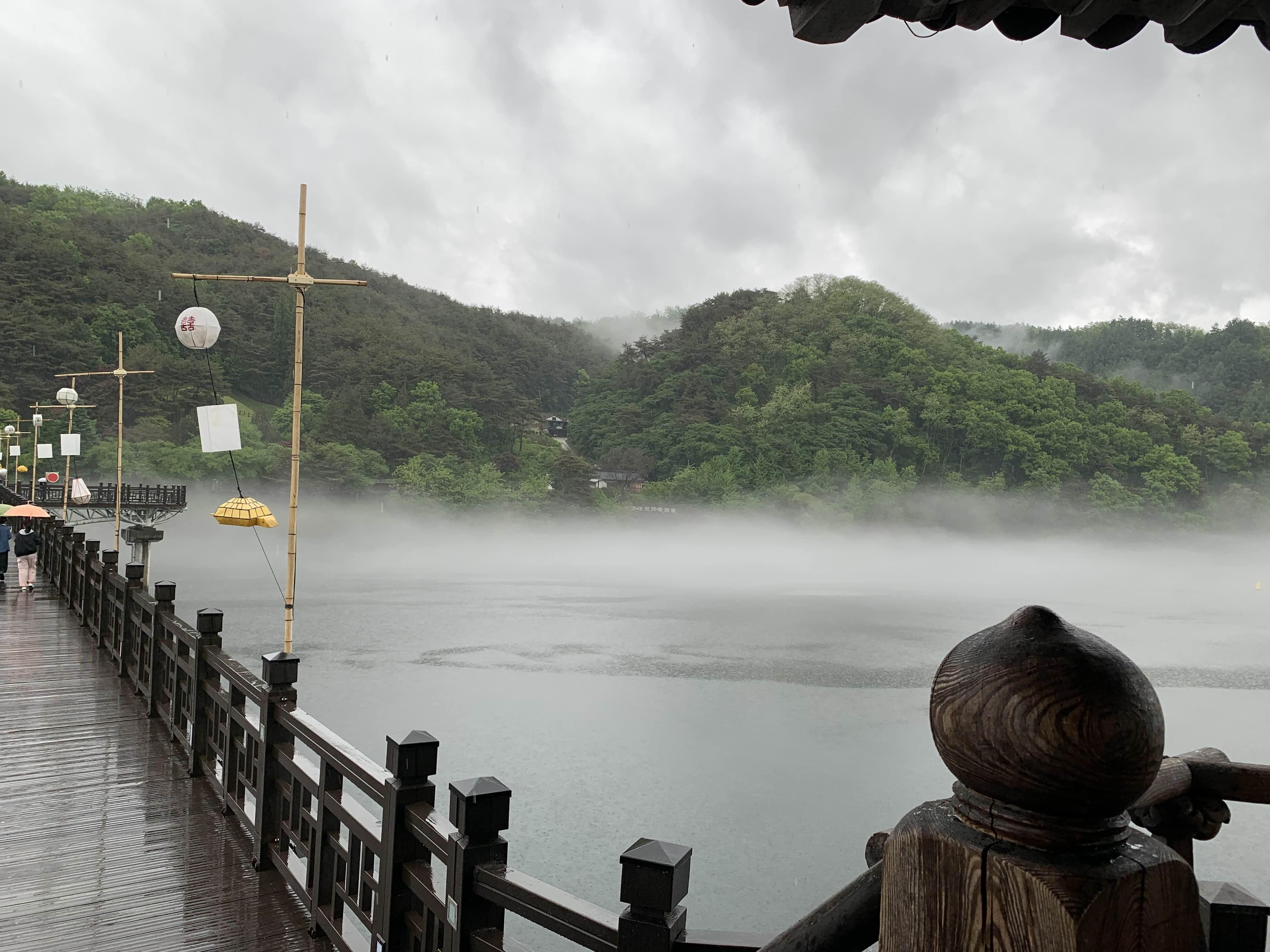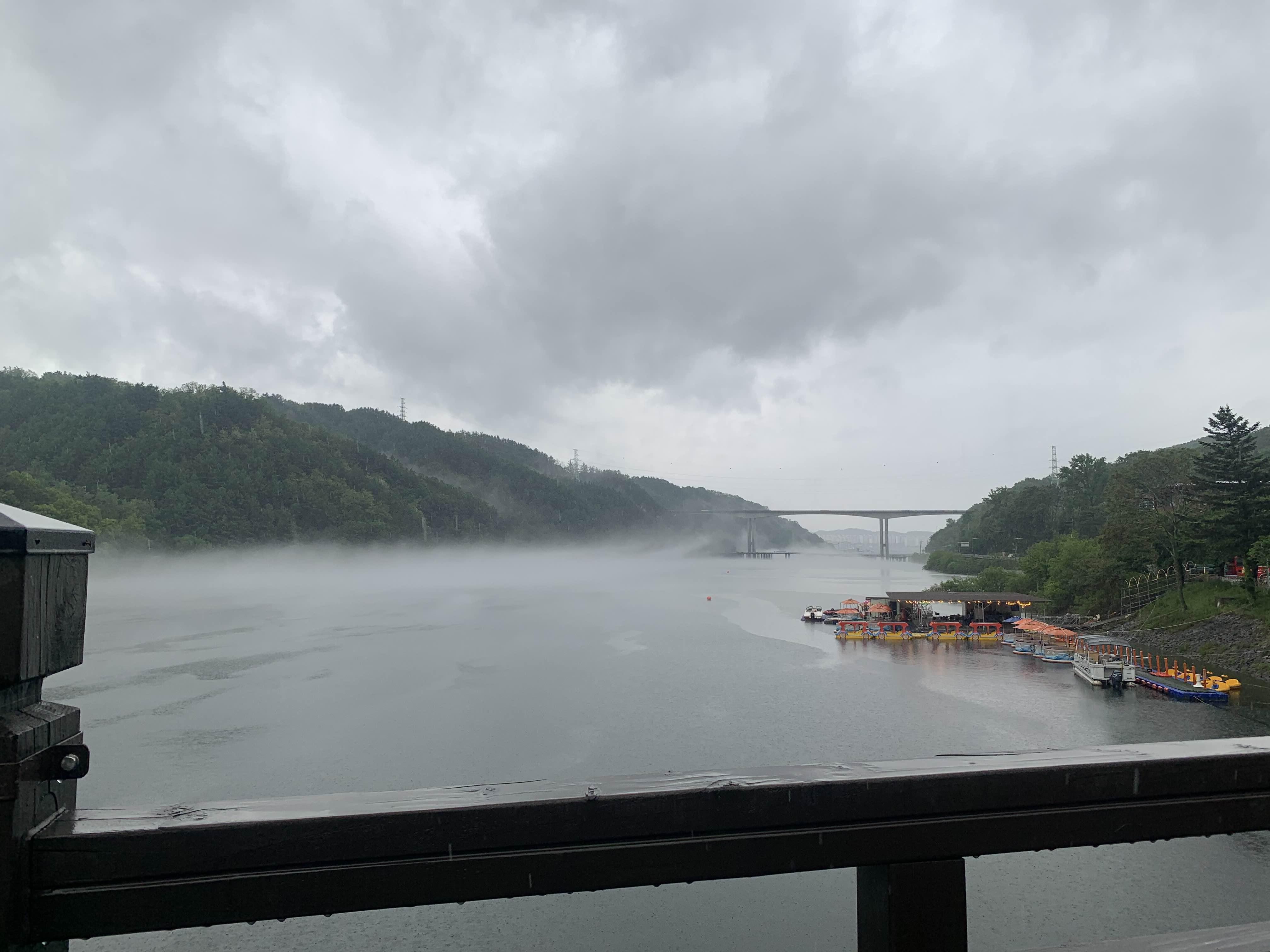 많은 비로 인하여 월영교에는 안개가 자욱하다.