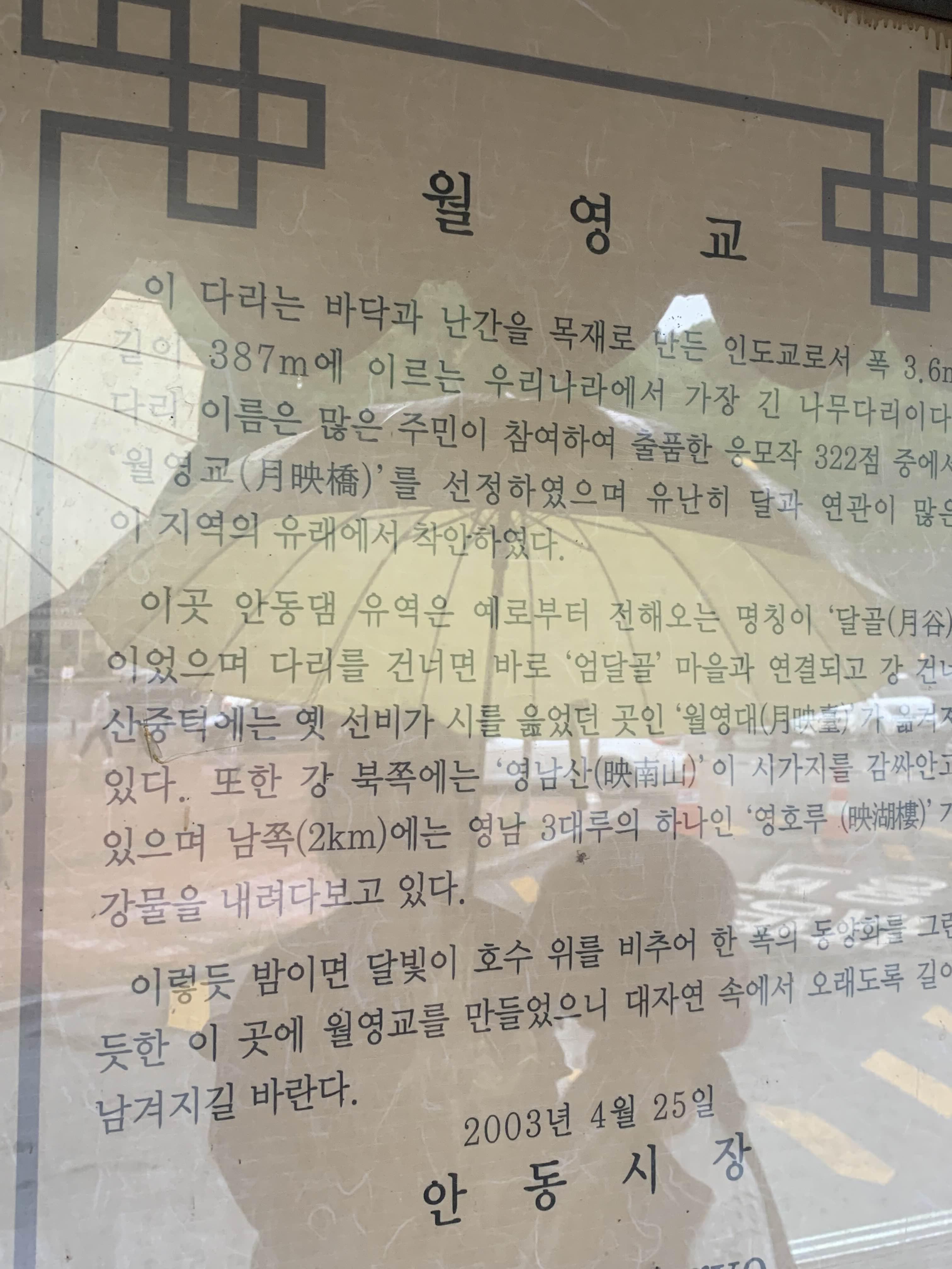 안동이 달과 많은 이야기와 월영대라는 바위 글귀를 모티브 하여 만들어낸 다리 명칭이라 한다.