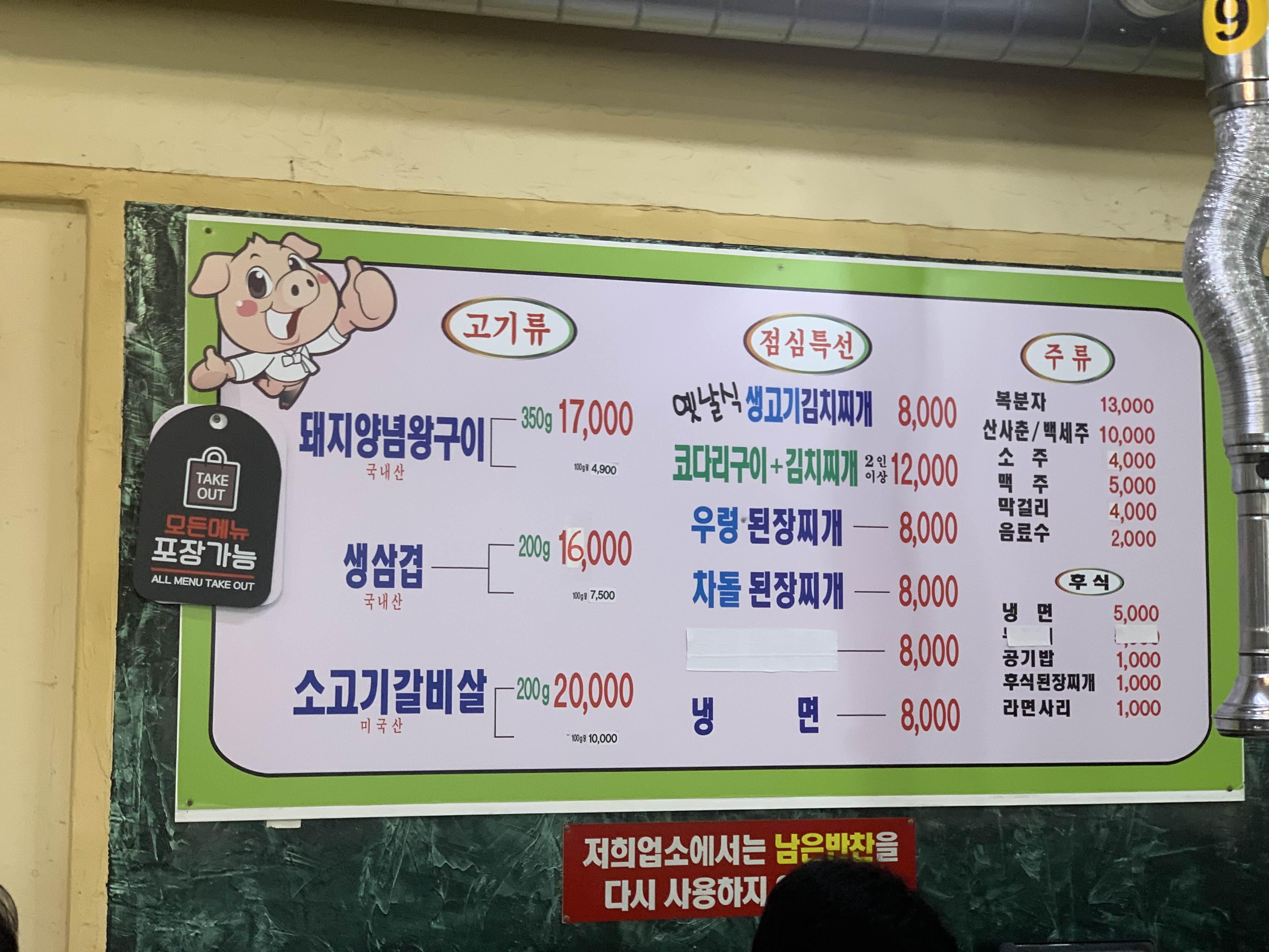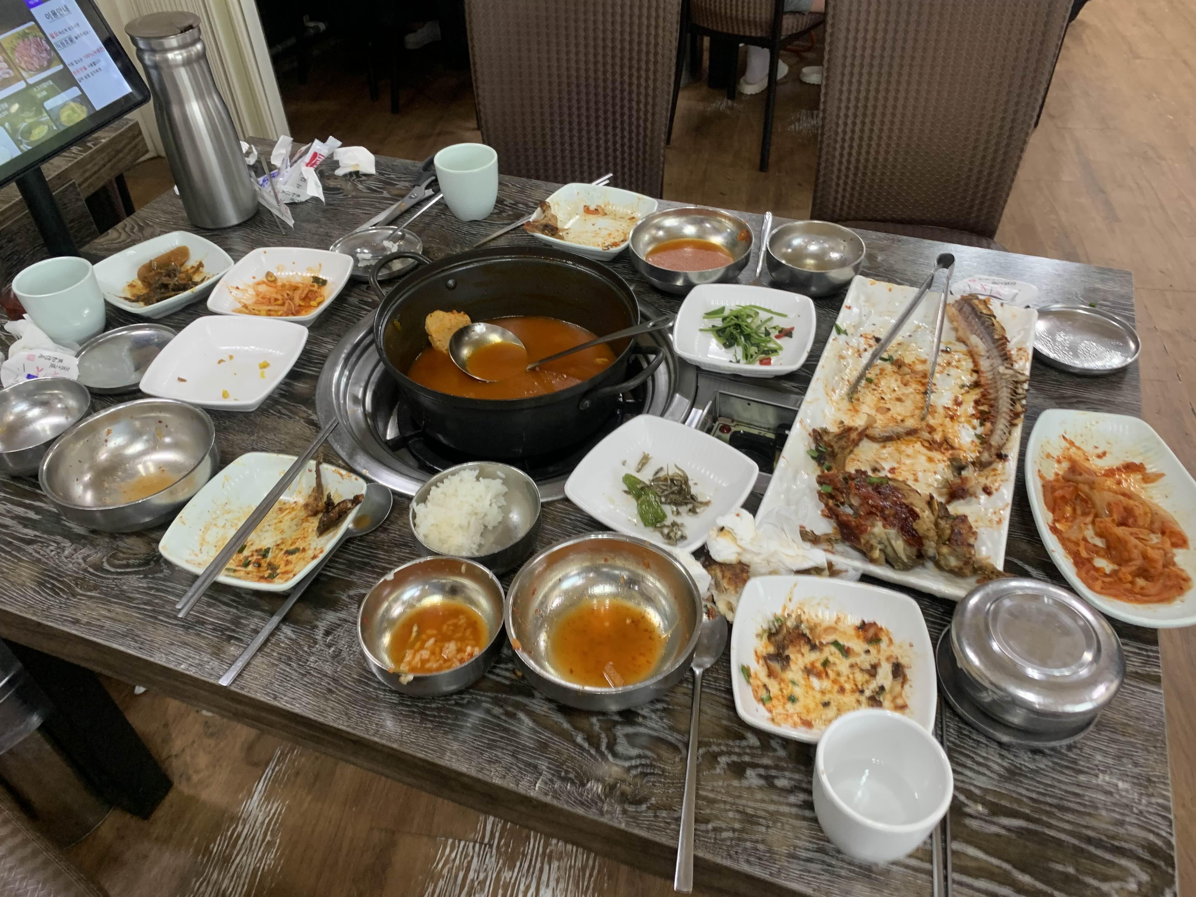 메뉴판과 다른 테이블 음식을 스캔하니... 점심특선으로 김치찌개+코다리구이를 많이 드신다.