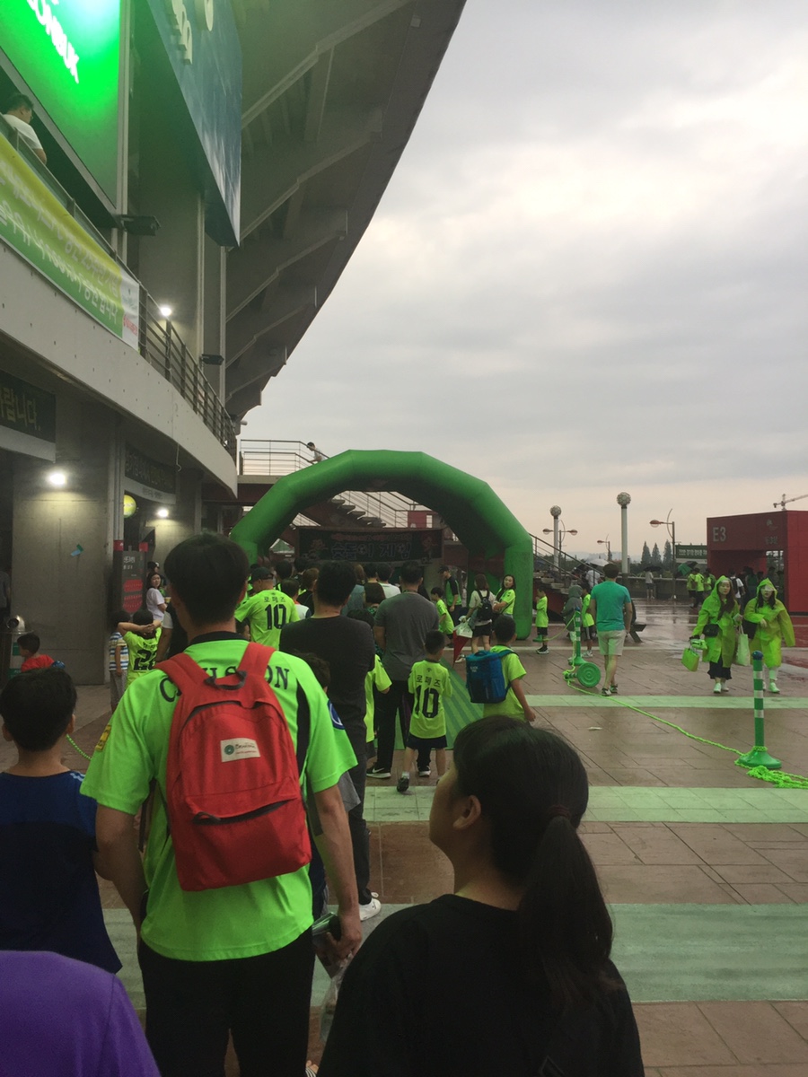 경기 시간이 7시에 시작하는데... 낮에는 무지 더워서 경기를 어떻게 보나 했는데.... 저녁시간이 되니 비가 많이 내리기 시작하네요. 준비했어 우산을 쓰고 경기장으로 향했습니다. 비가 와서 그런지 매표소에는 관중이 많이 보이지는 않네요. 오늘은 슛돌이나 해야겠다고 경기장에 입장했는데, 슛돌이 대기줄은 좌~~~~ 많은 사람들이 대기하고 있었네요. 비는 내렸지만, 바람을 불지 않아서 1층 20열 내 좌석에는 빗물이 떨어지지는 않았네요.