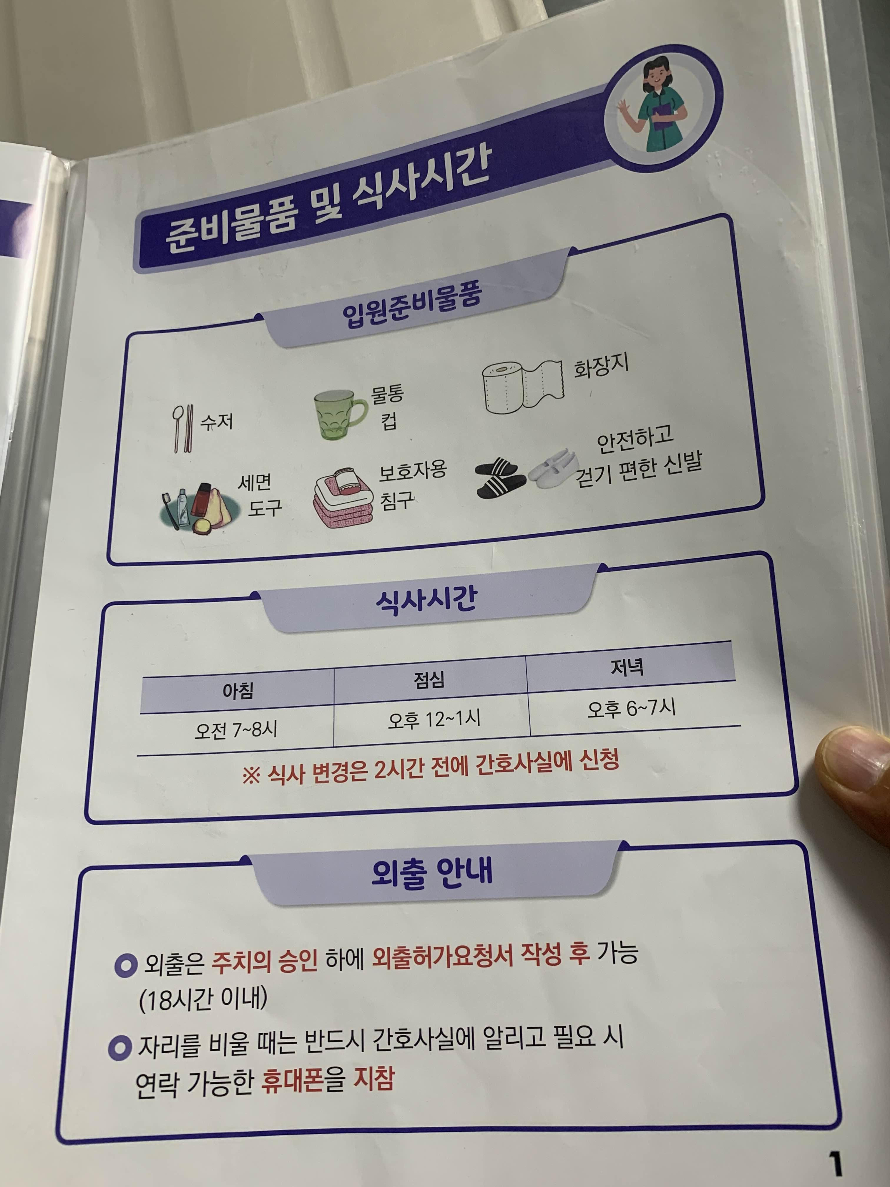 병실 입원안내문을 차례로 읽어본다.ㅋㅋ