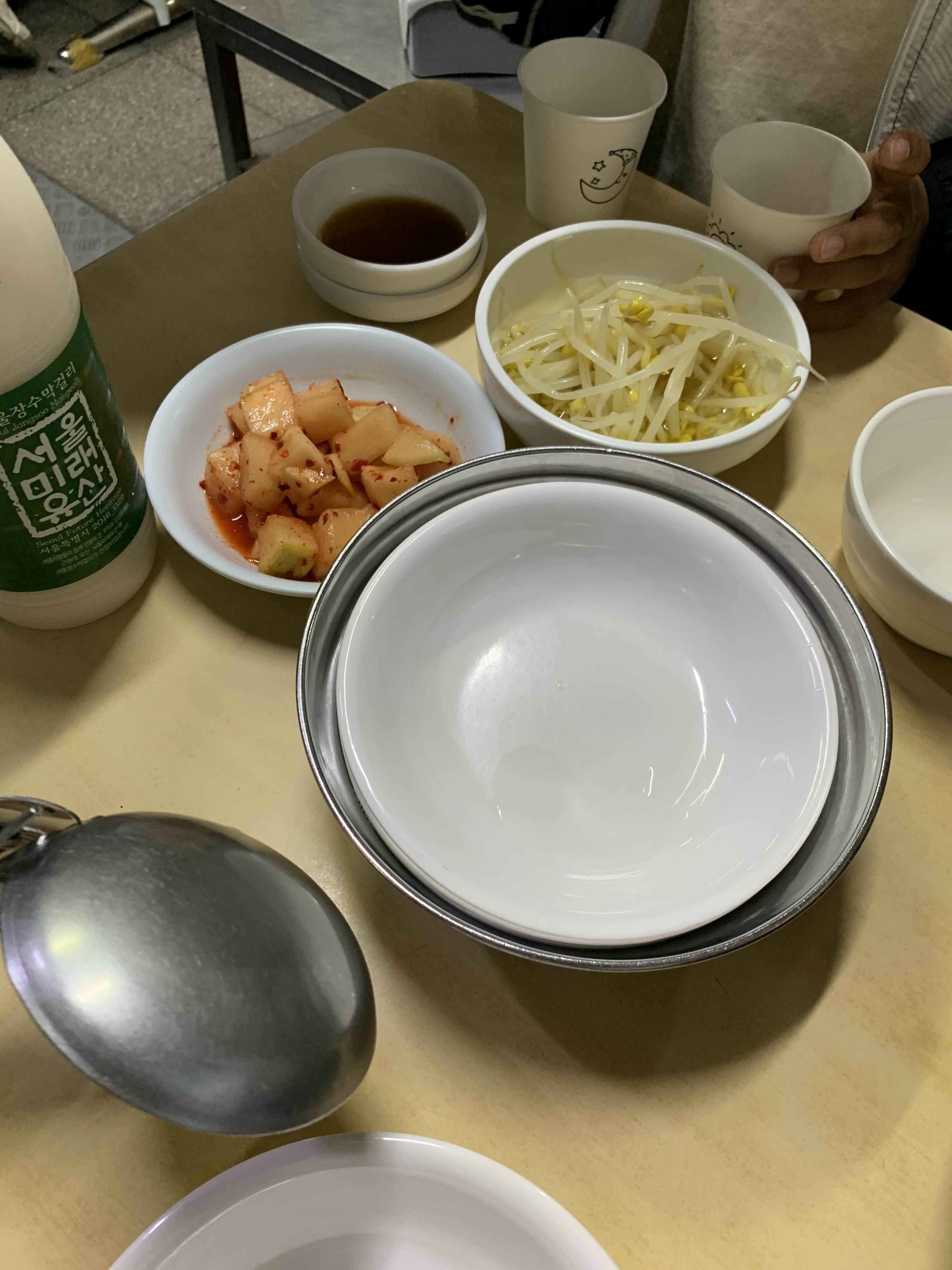 밑반찬으로는 콩나물과 깍두기!!