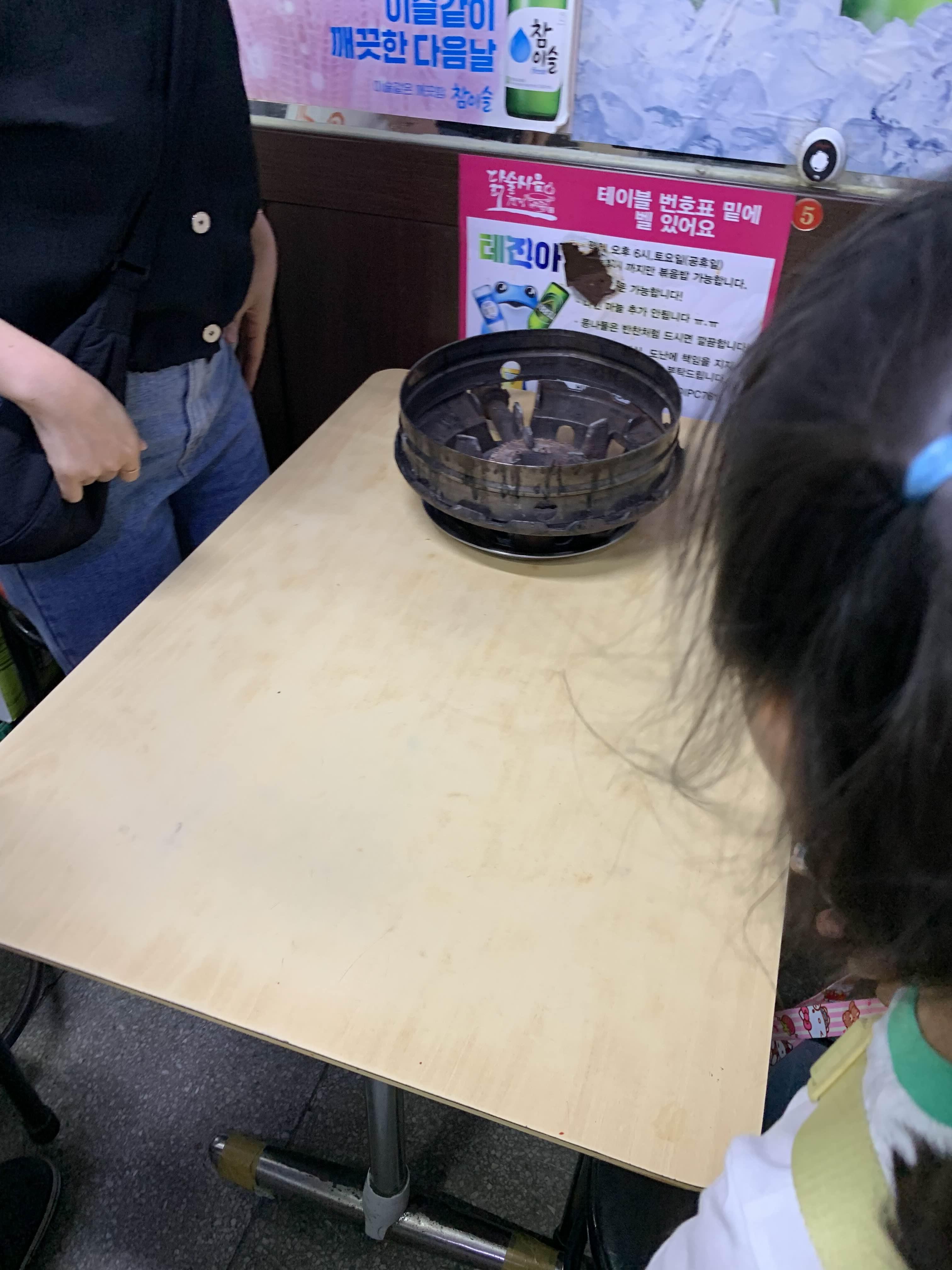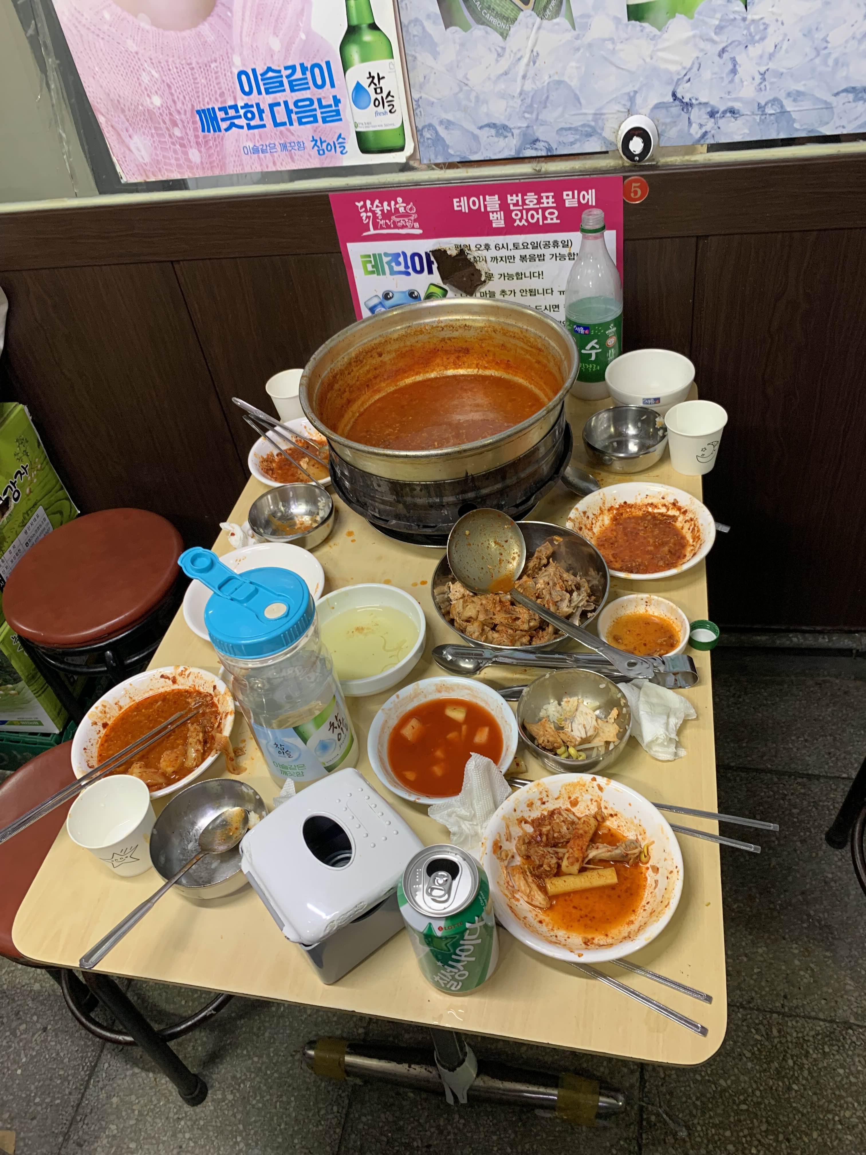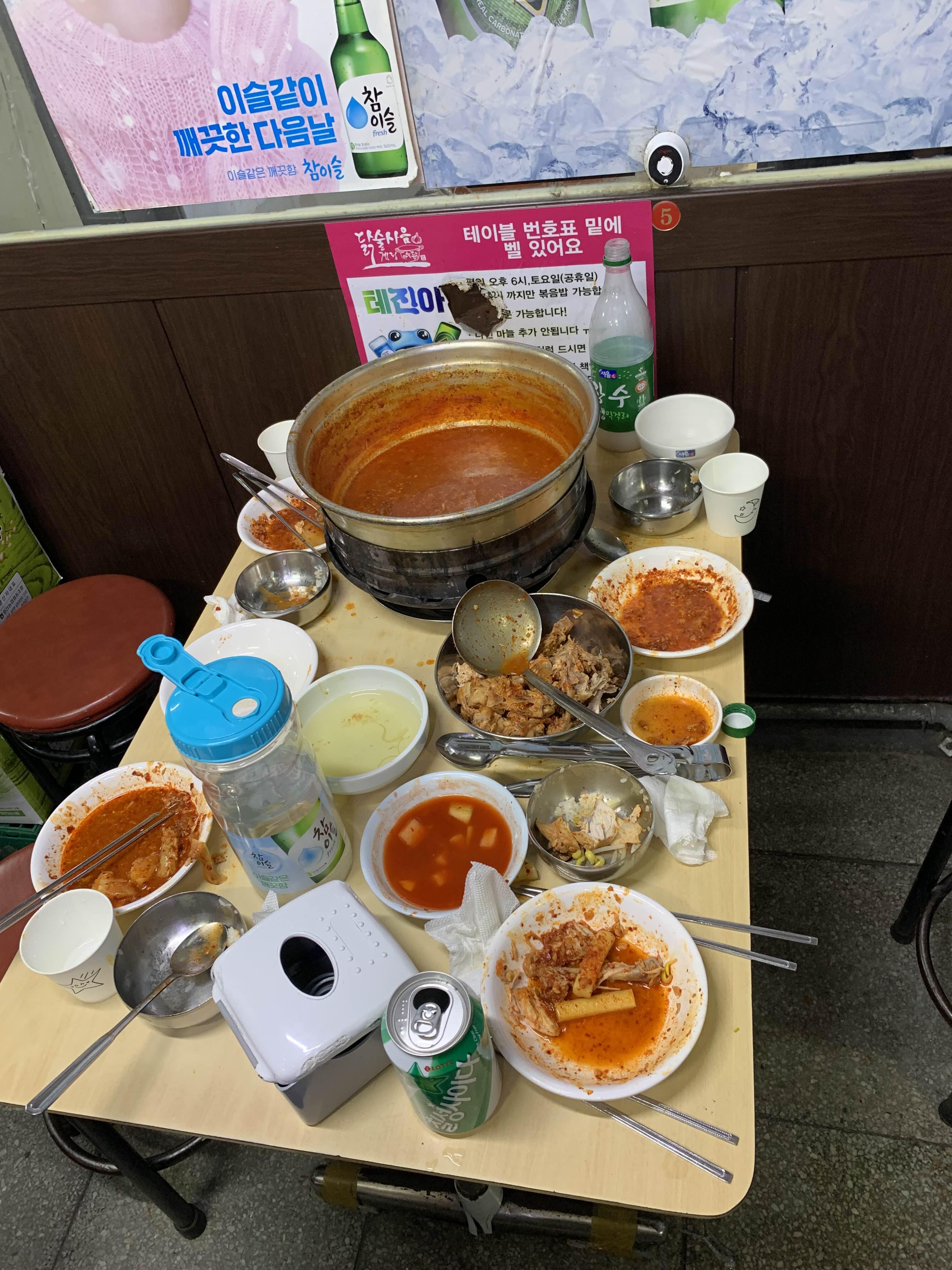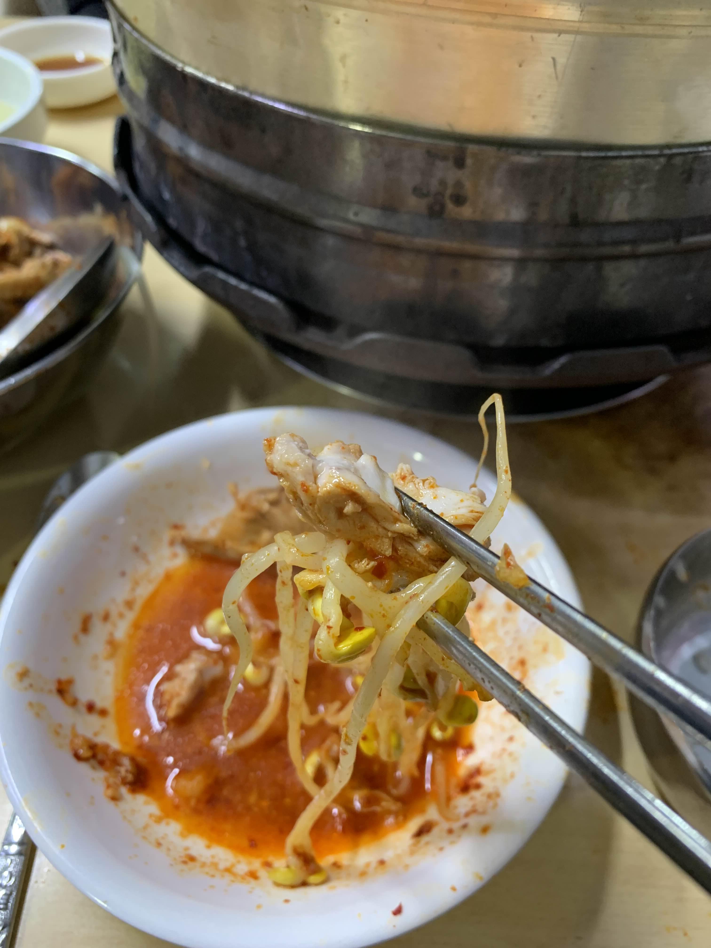 다른 테이블을 보니... 콩나물을 닭볶음탕에 넣어서 먹는데...