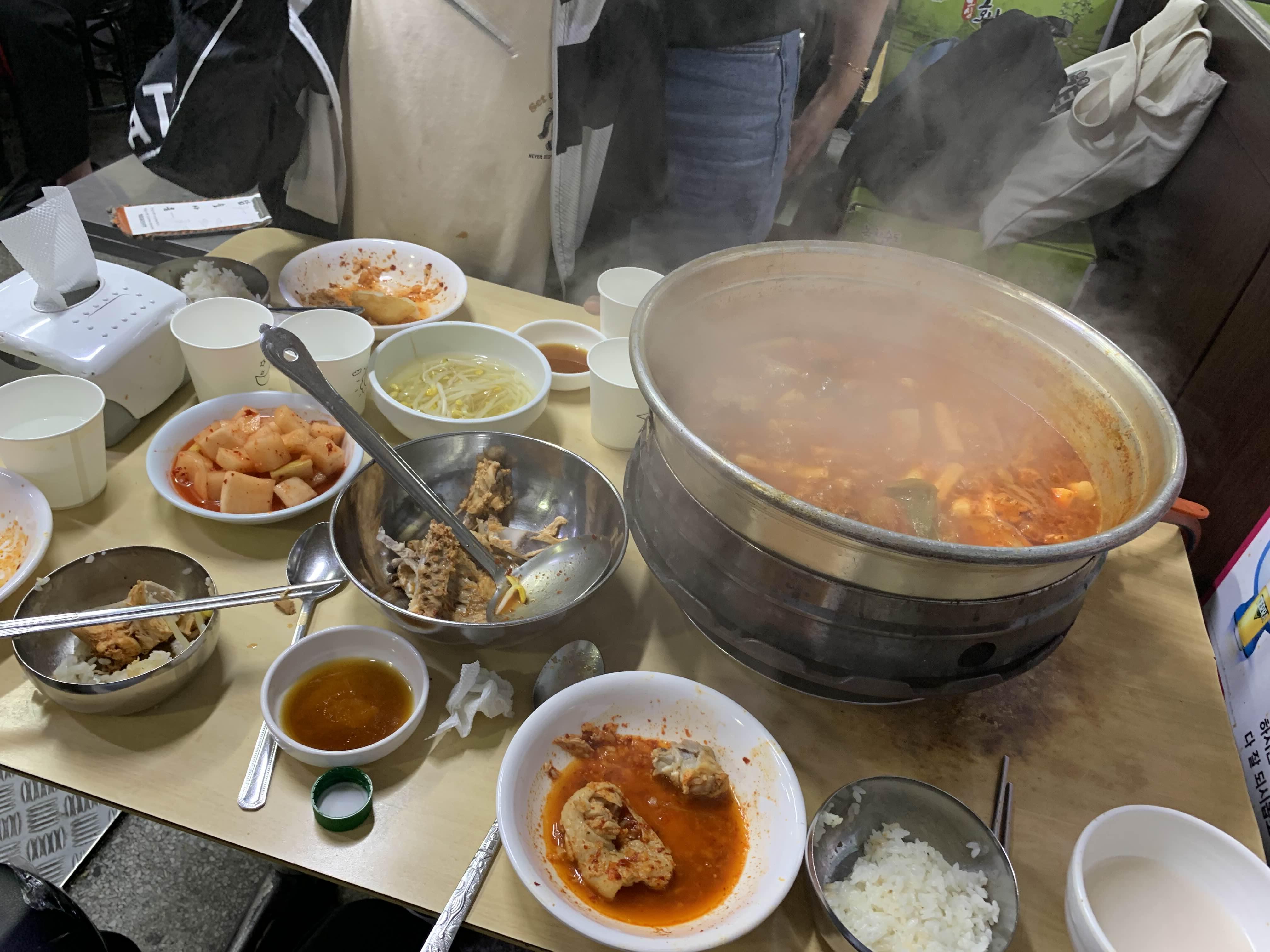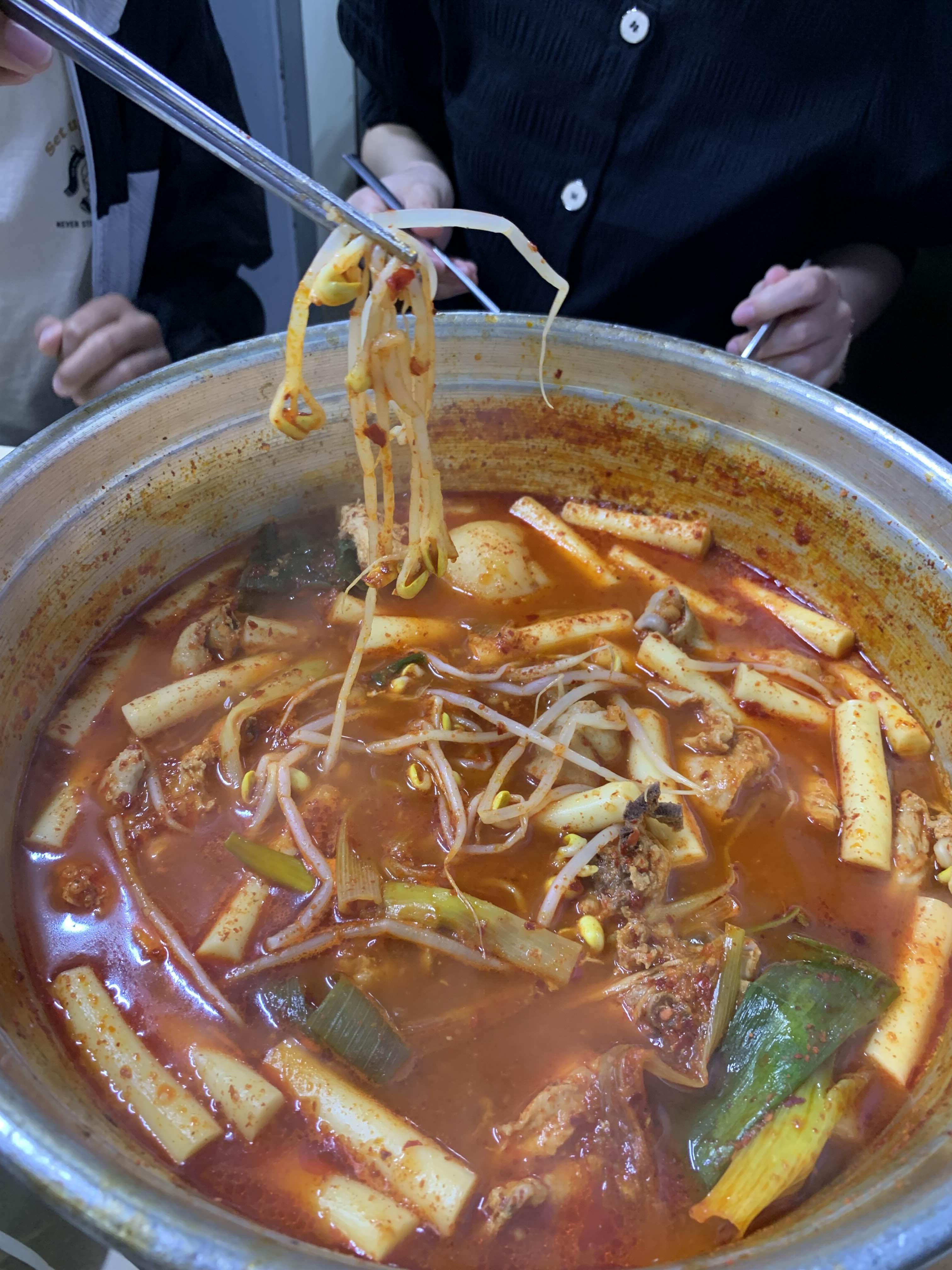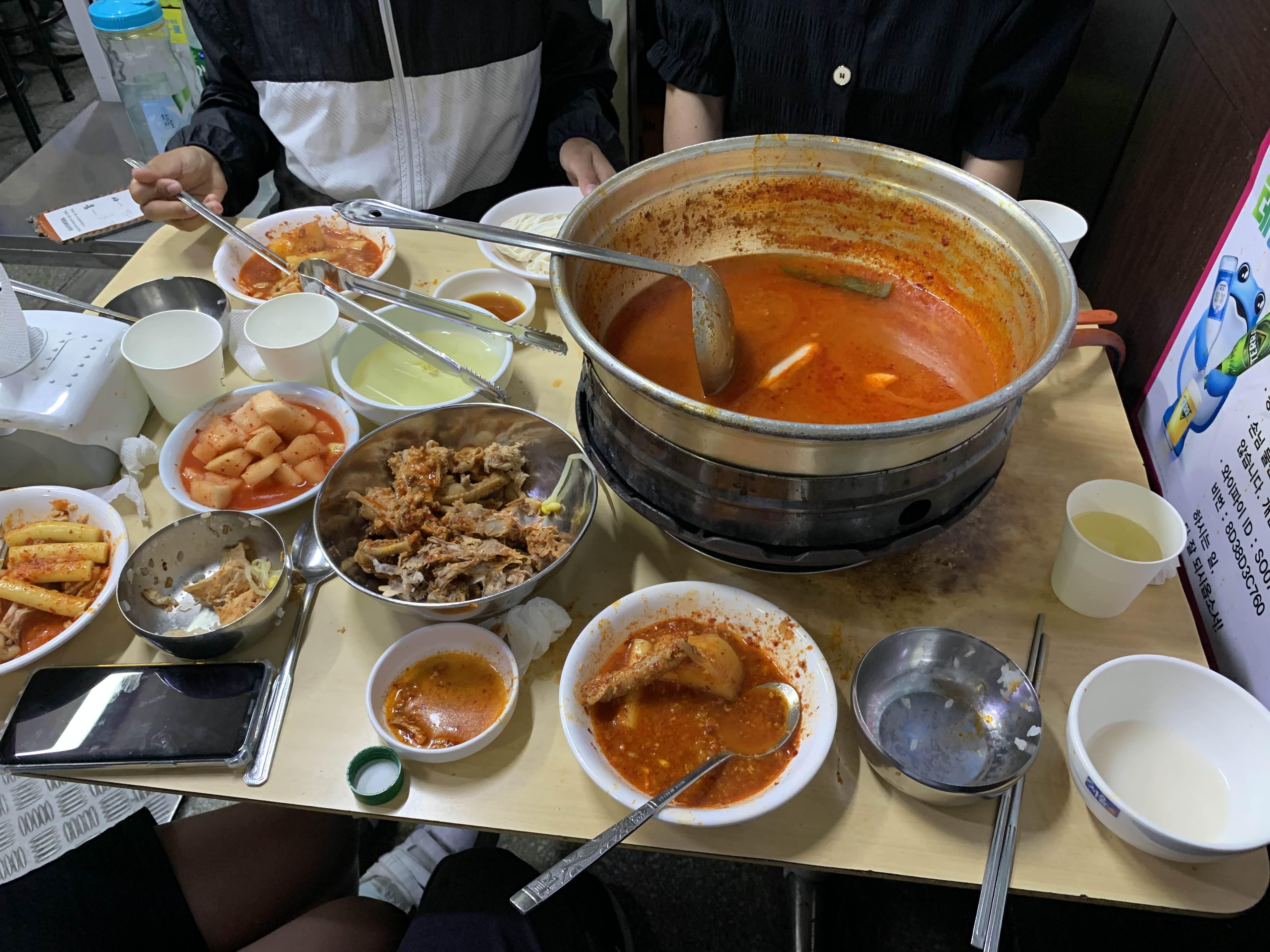 다른 테이블을 보니... 콩나물을 닭볶음탕에 넣어서 먹는데...