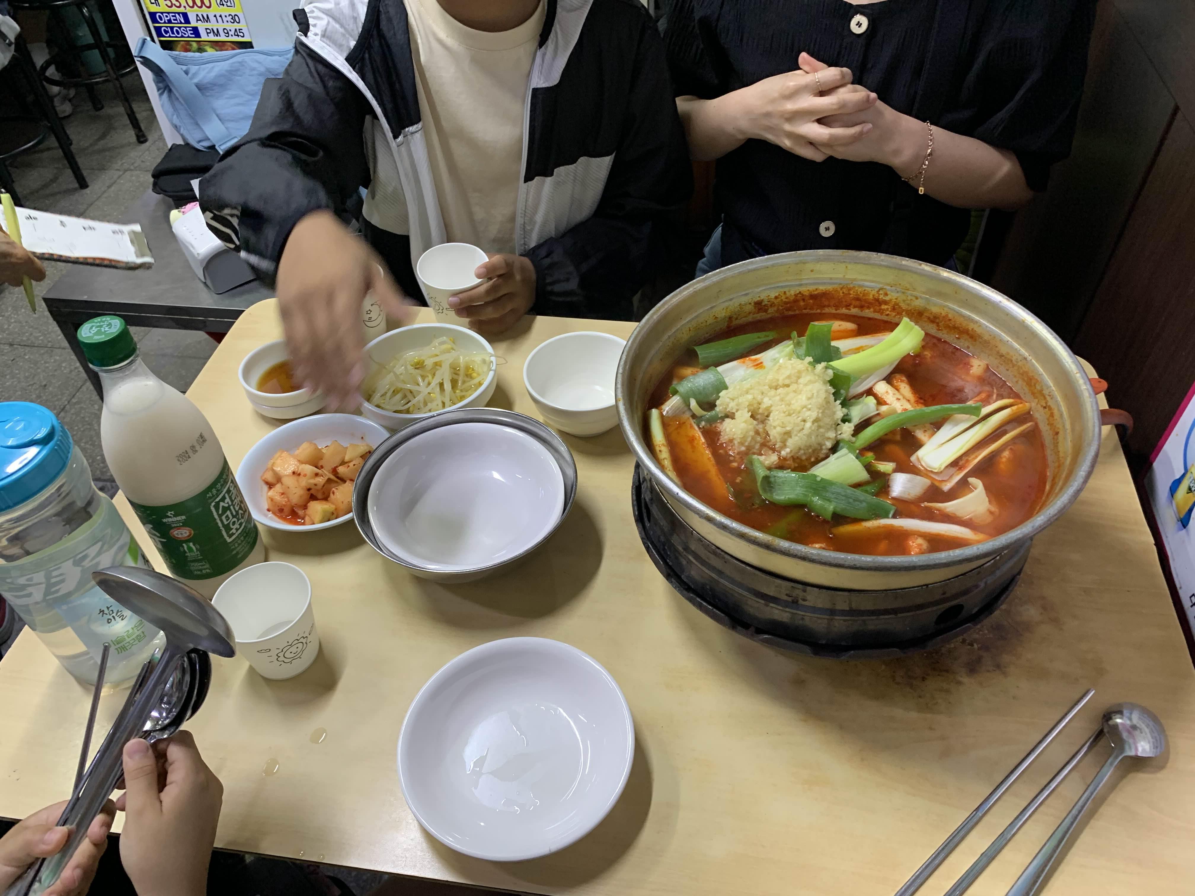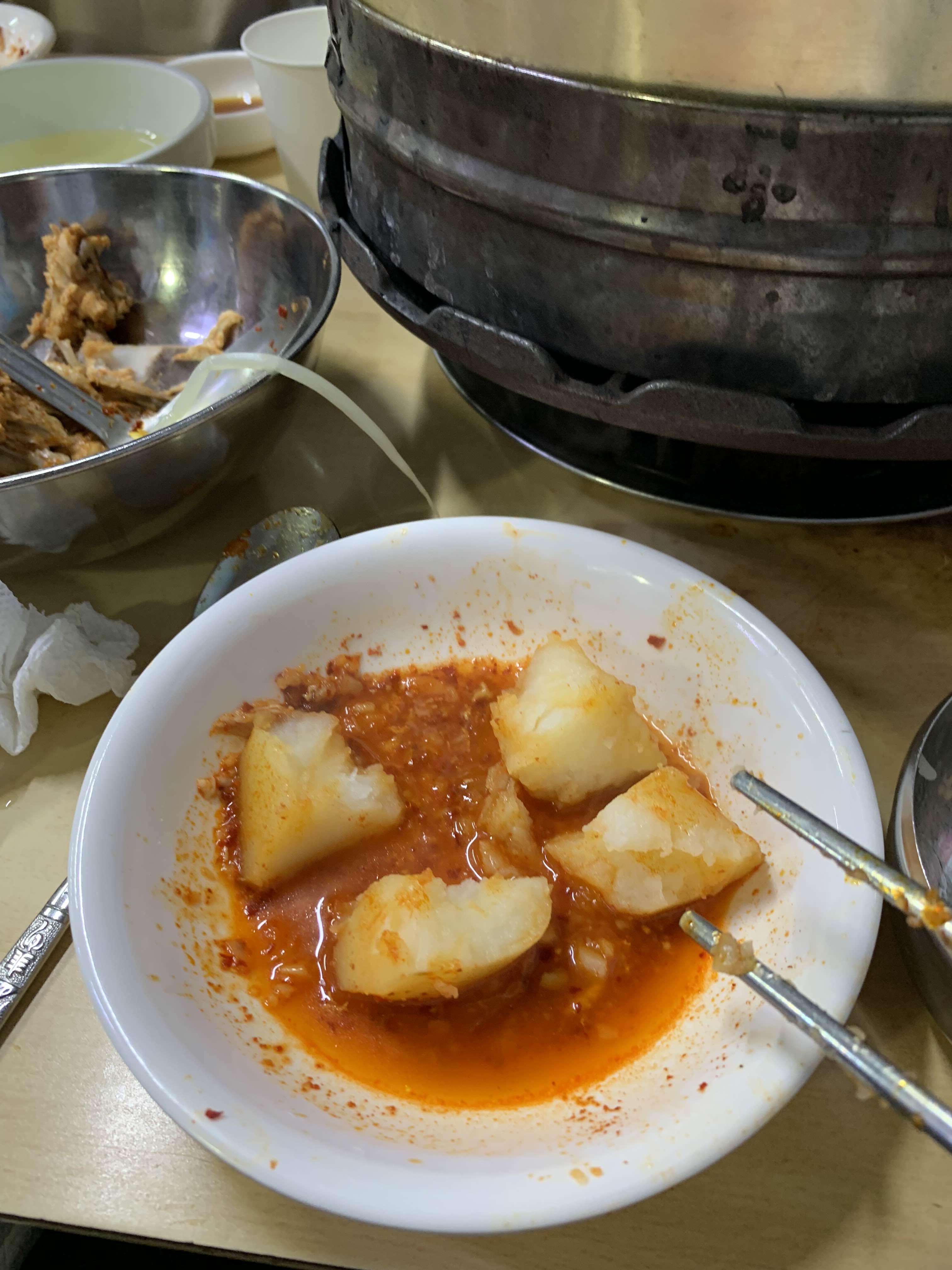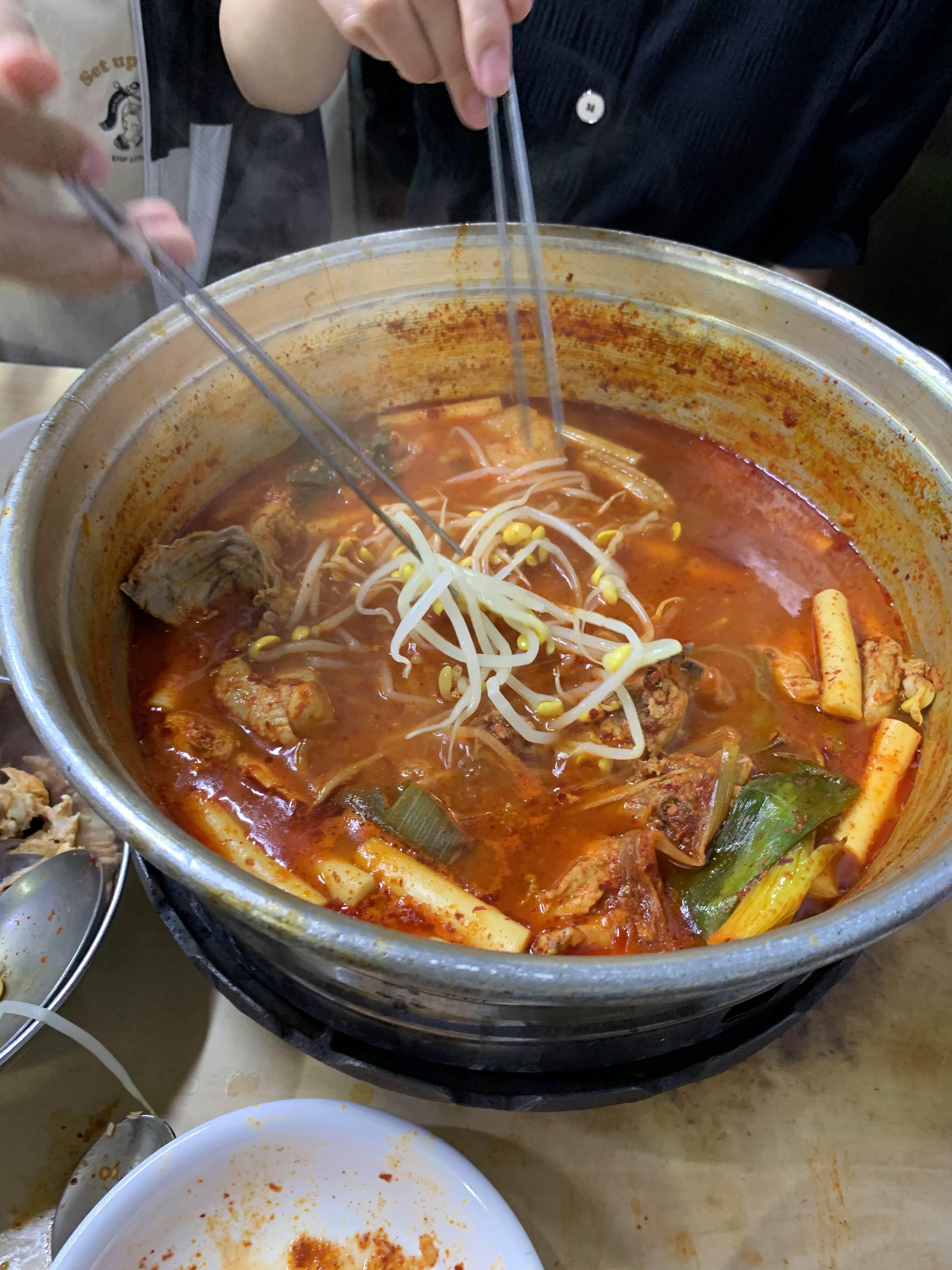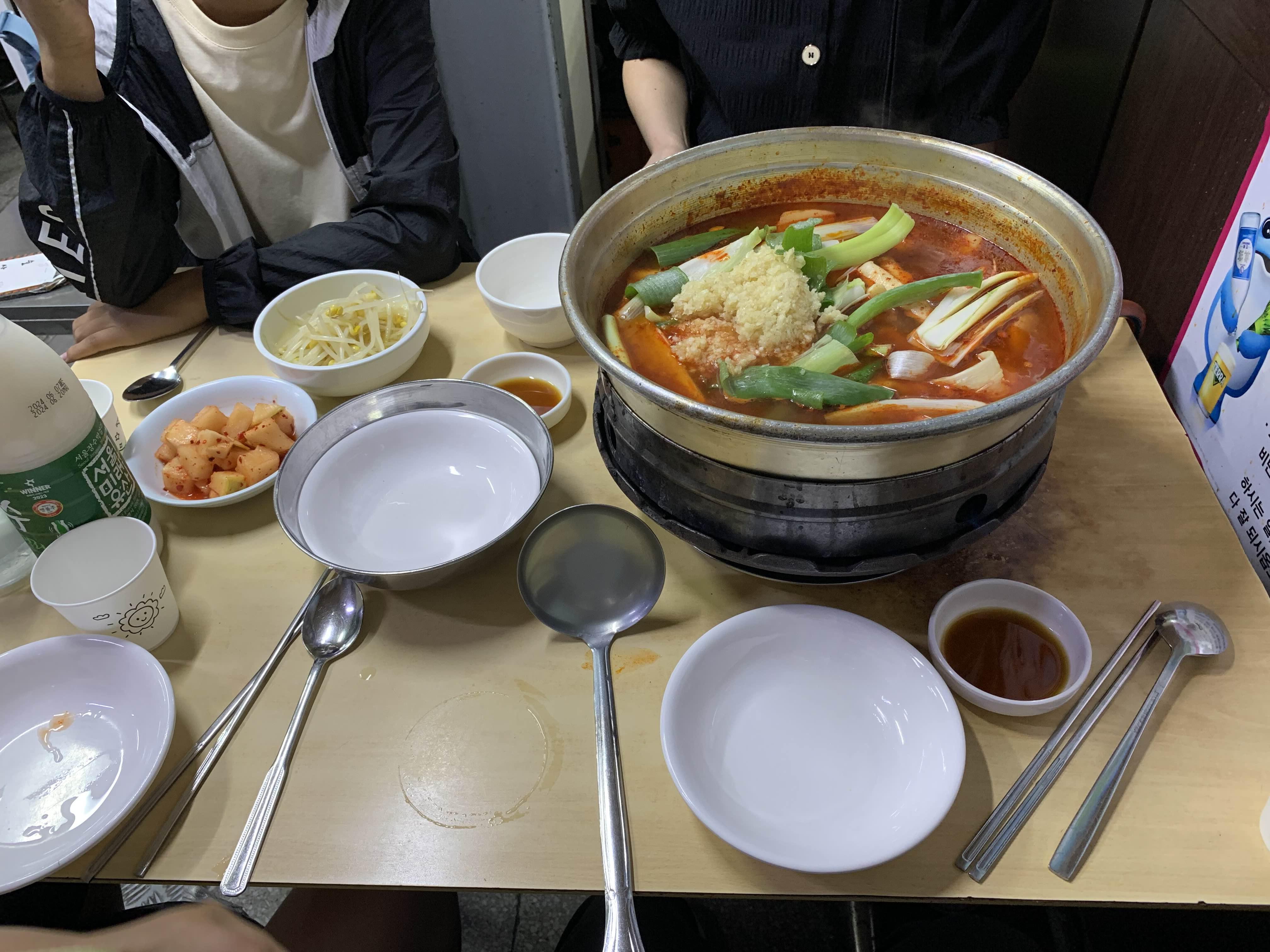 다른 테이블을 보니... 콩나물을 닭볶음탕에 넣어서 먹는데...