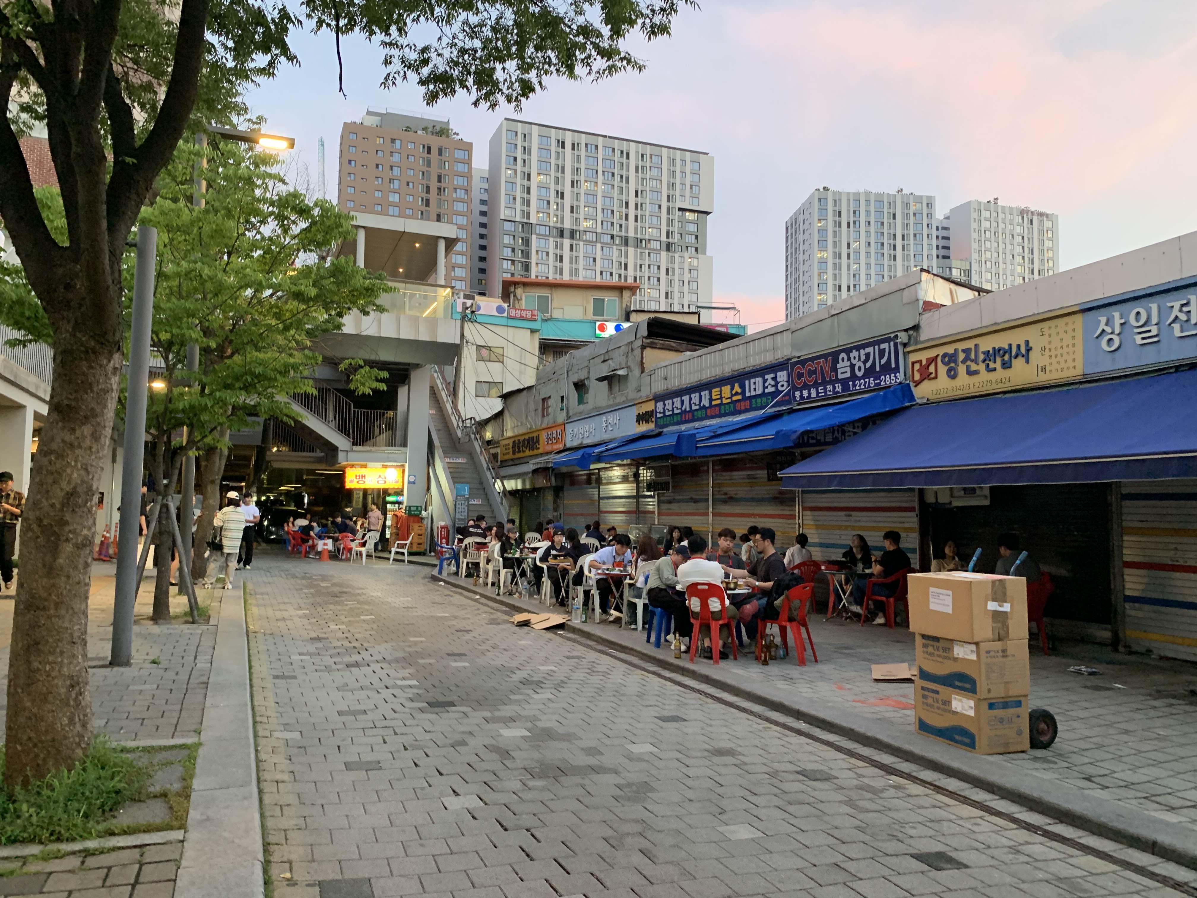 식사를 마치고 나오니... 야외 테이블에 다른 음식을 드시는 손님들이 가득하다.