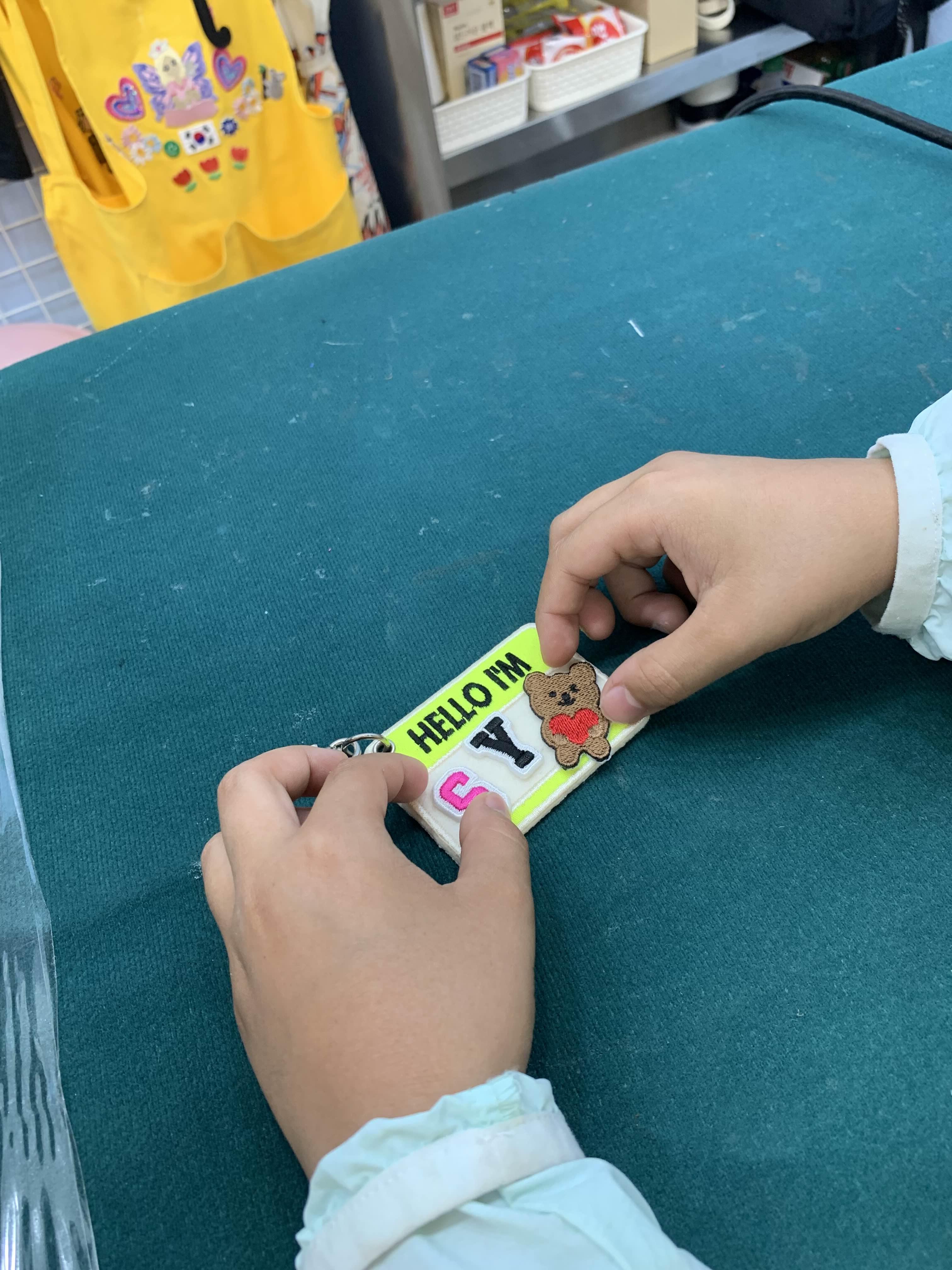 다리미로 본드 접합이다.