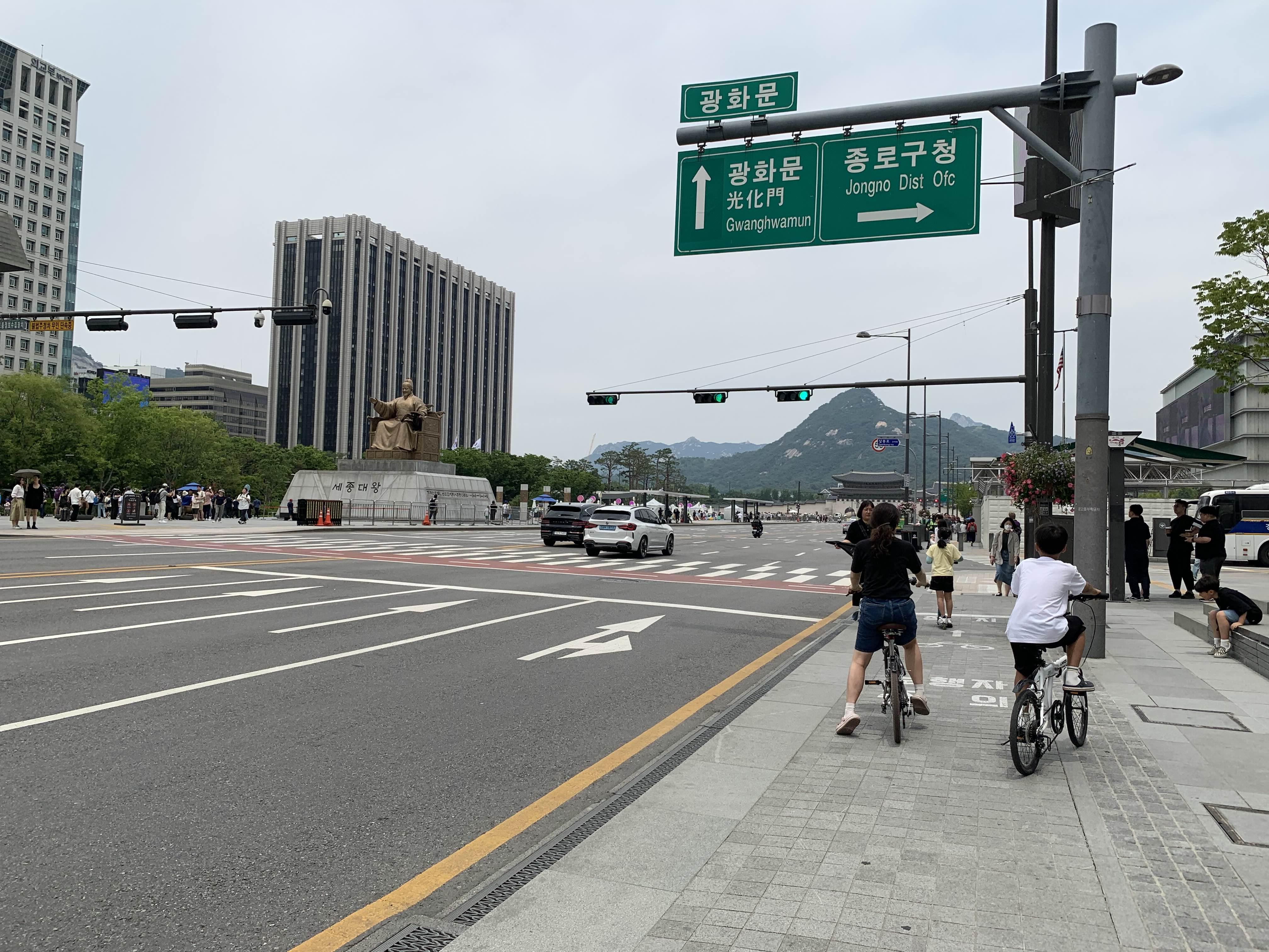 지난밤 자전거를 서울시청에 주차하고... 자전거를 이용하여 경복궁으로 이동하였습니다.