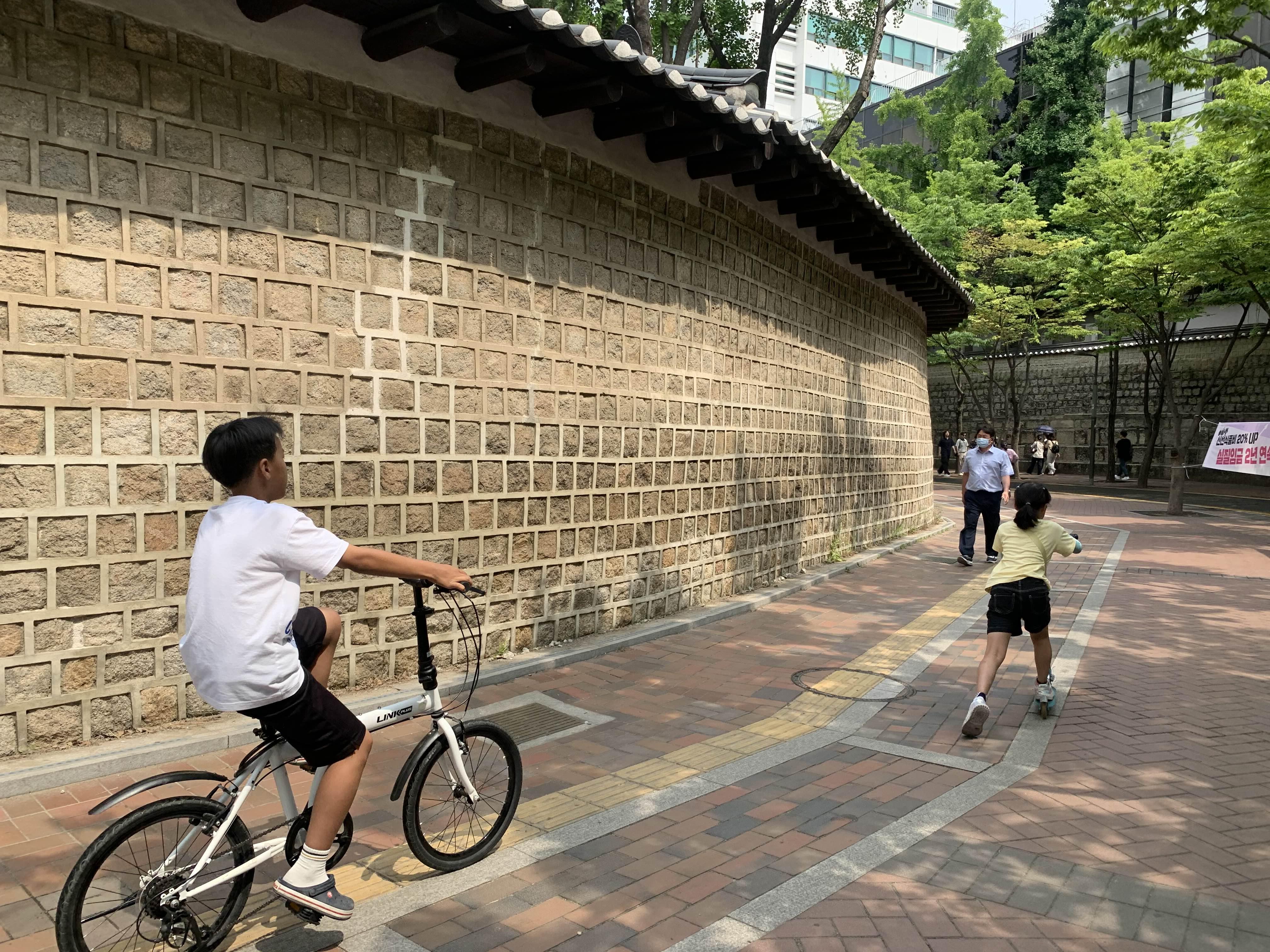 덕수궁 돌담길이.... 자전거 우선도로?인데.... 자전거 타기 좋은 장소인 거 같다.ㅎㅎ
