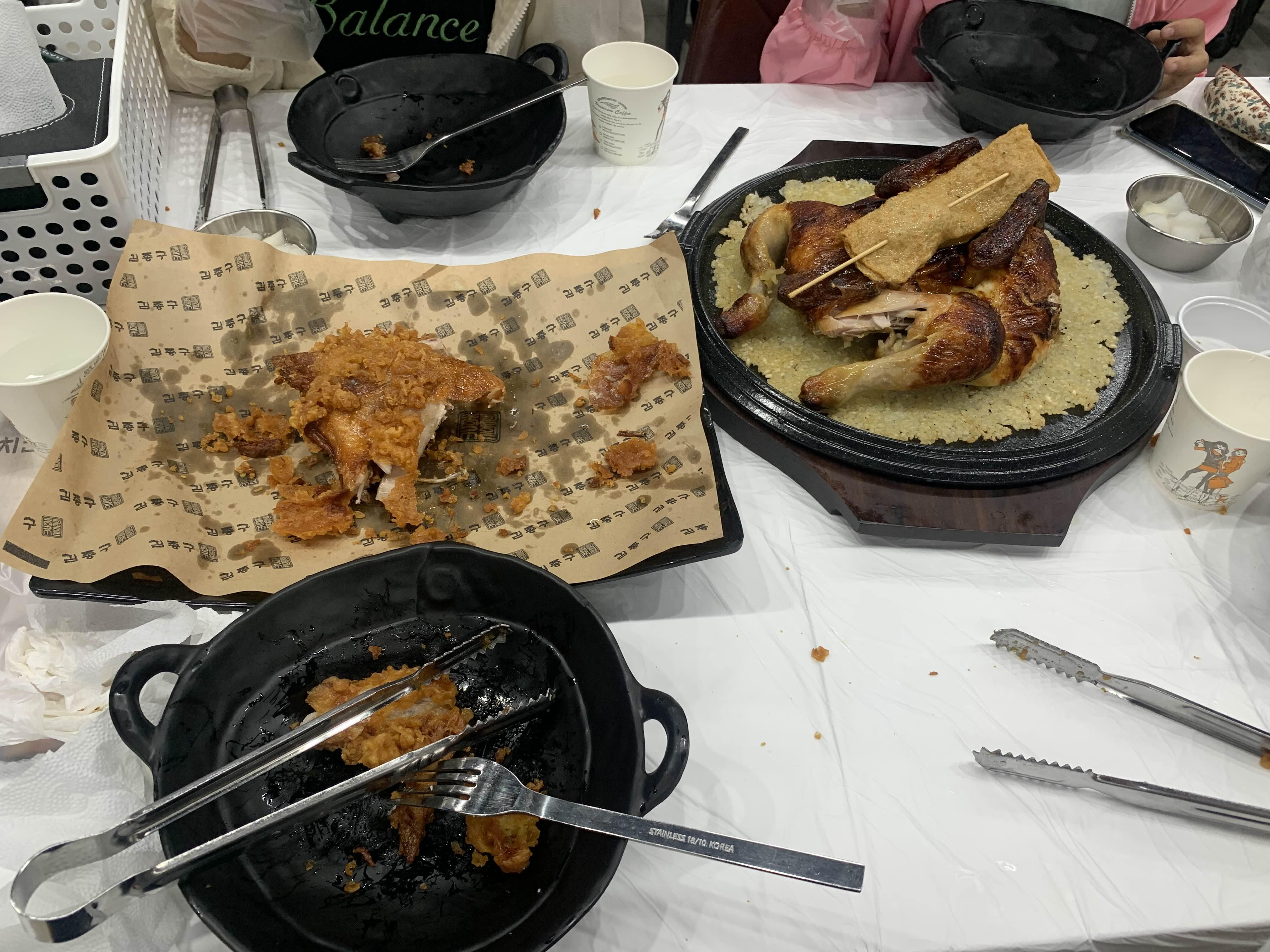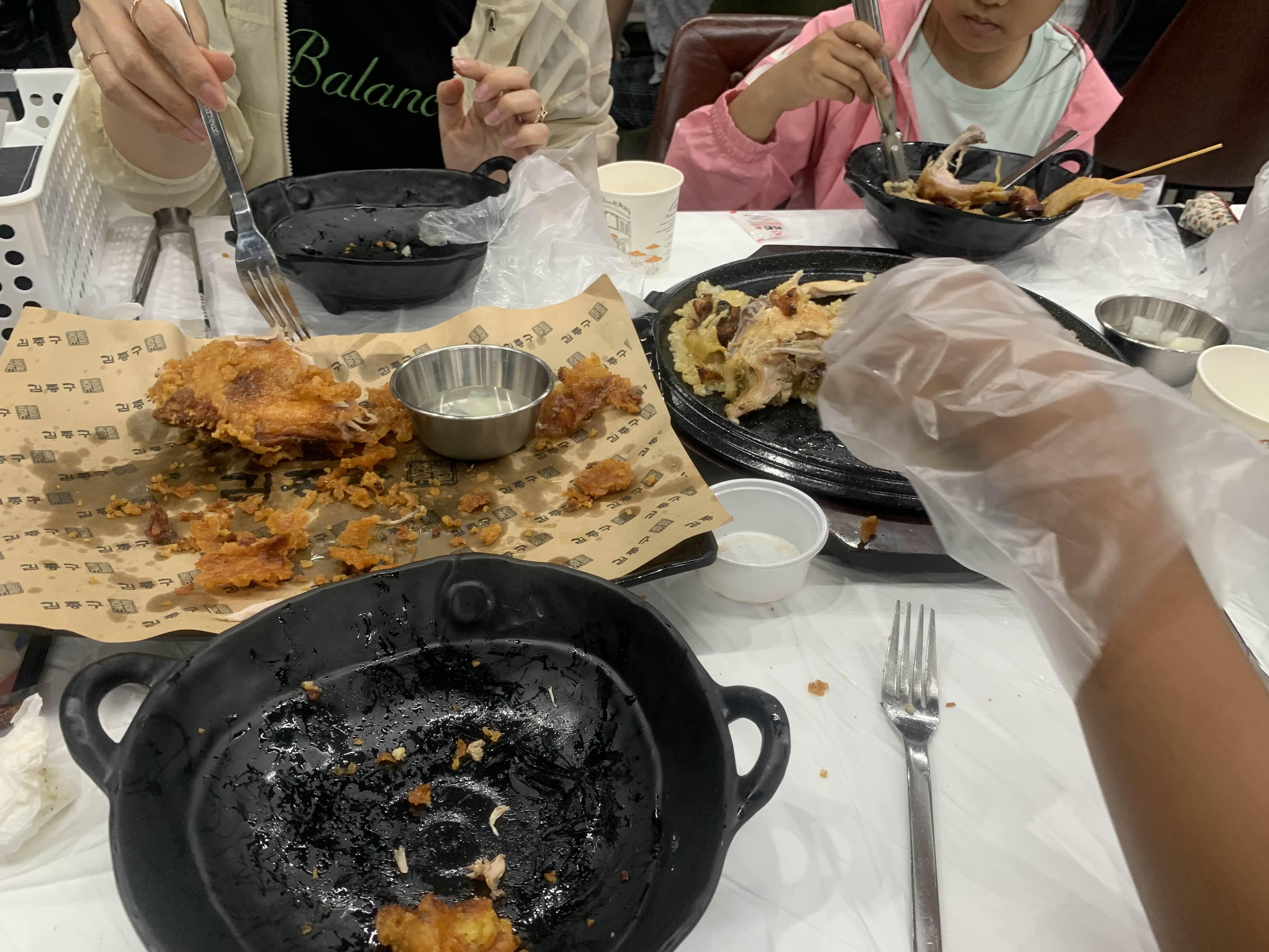 통닭 사이즈가 크지 않아서... 아이들과 2마리 먹기 적당한 사이즈인 거 같다.