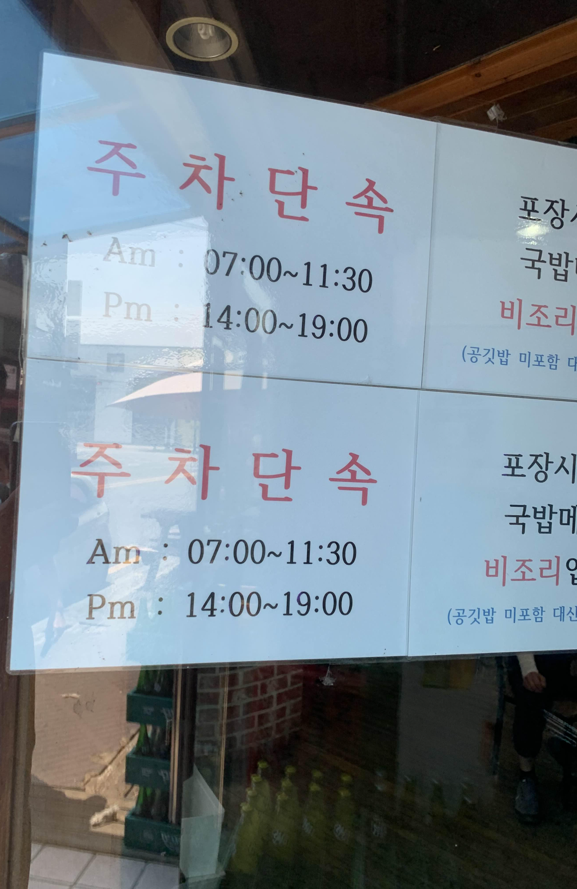 근처 불법주차로 인한, 안내문이 식당 출입구에 붙어 있더군요.ㅎㅎ