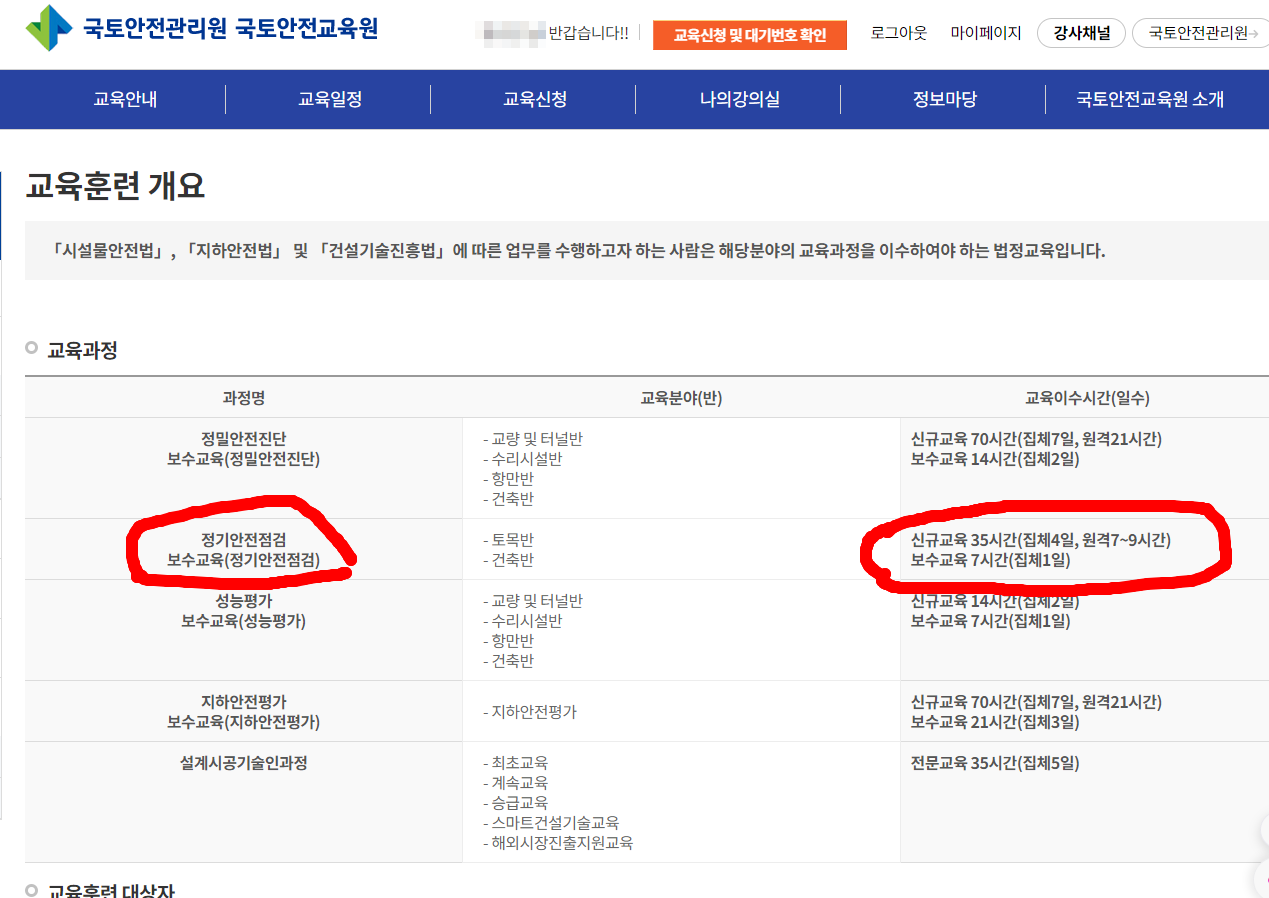 최근 수료하였던 국토안전관리원(국토안전교육원)에서 진행하는 정기안전점검 교육에 대한 후기입니다.