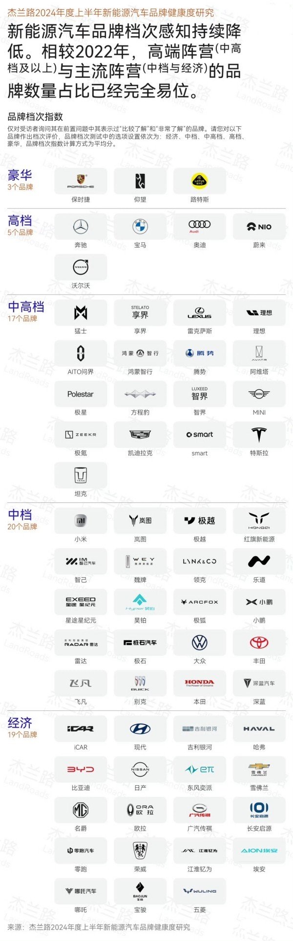 Xiaomi, Lantu, Jiyue, Hongqi New Energy, Zhiji, Weipai, Lynk & Co, Ledo, Xingtu Xingyuan, Haopin, Jihu, Xpeng, Volkswagen, Toyota, Deep Blue, Buick, Honda 등 20개의 중급 브랜드가 있습니다. ;