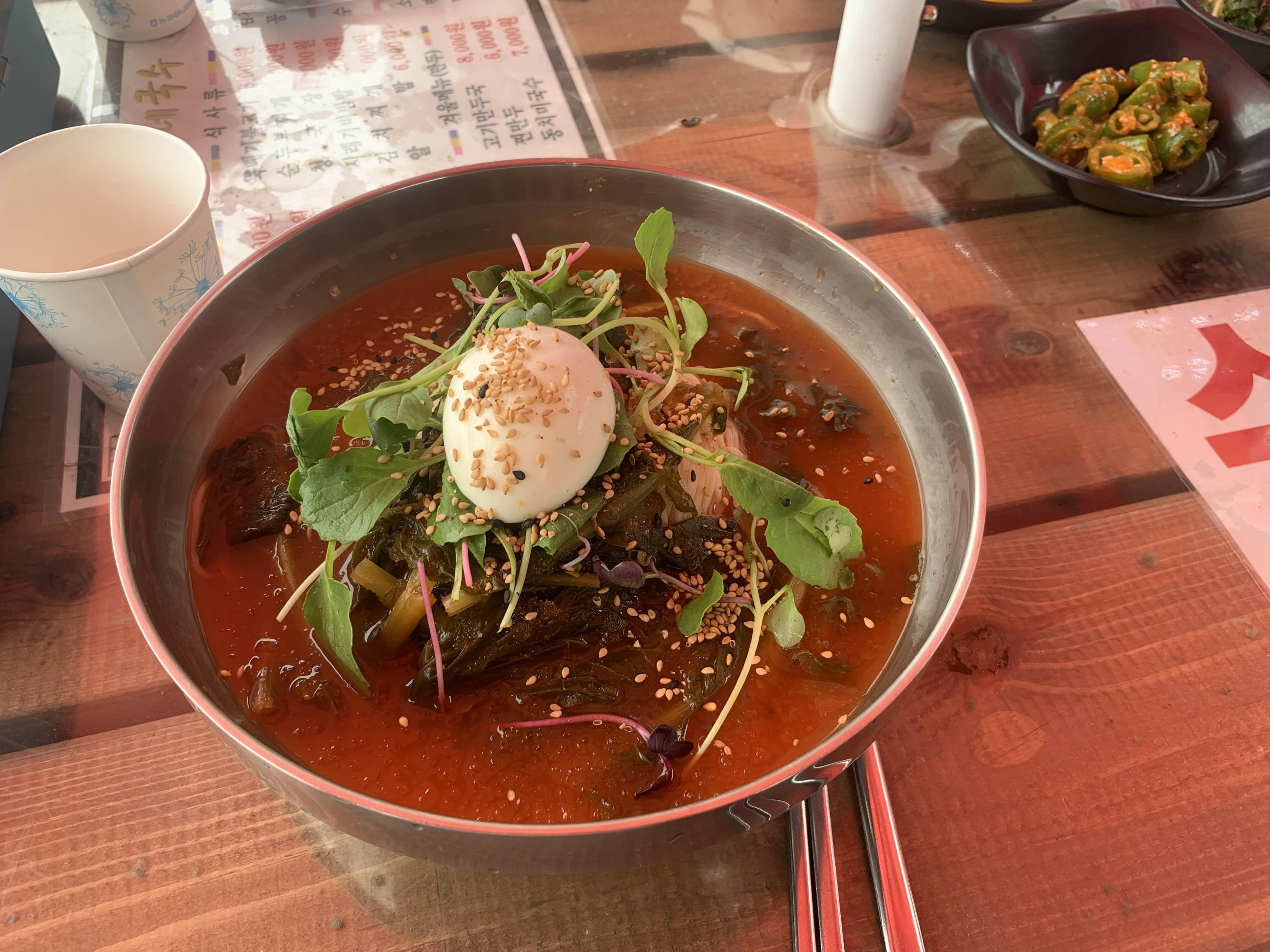 시원한 얼음이 동동!! 면발이 탱글 하니... 식감이 좋다.