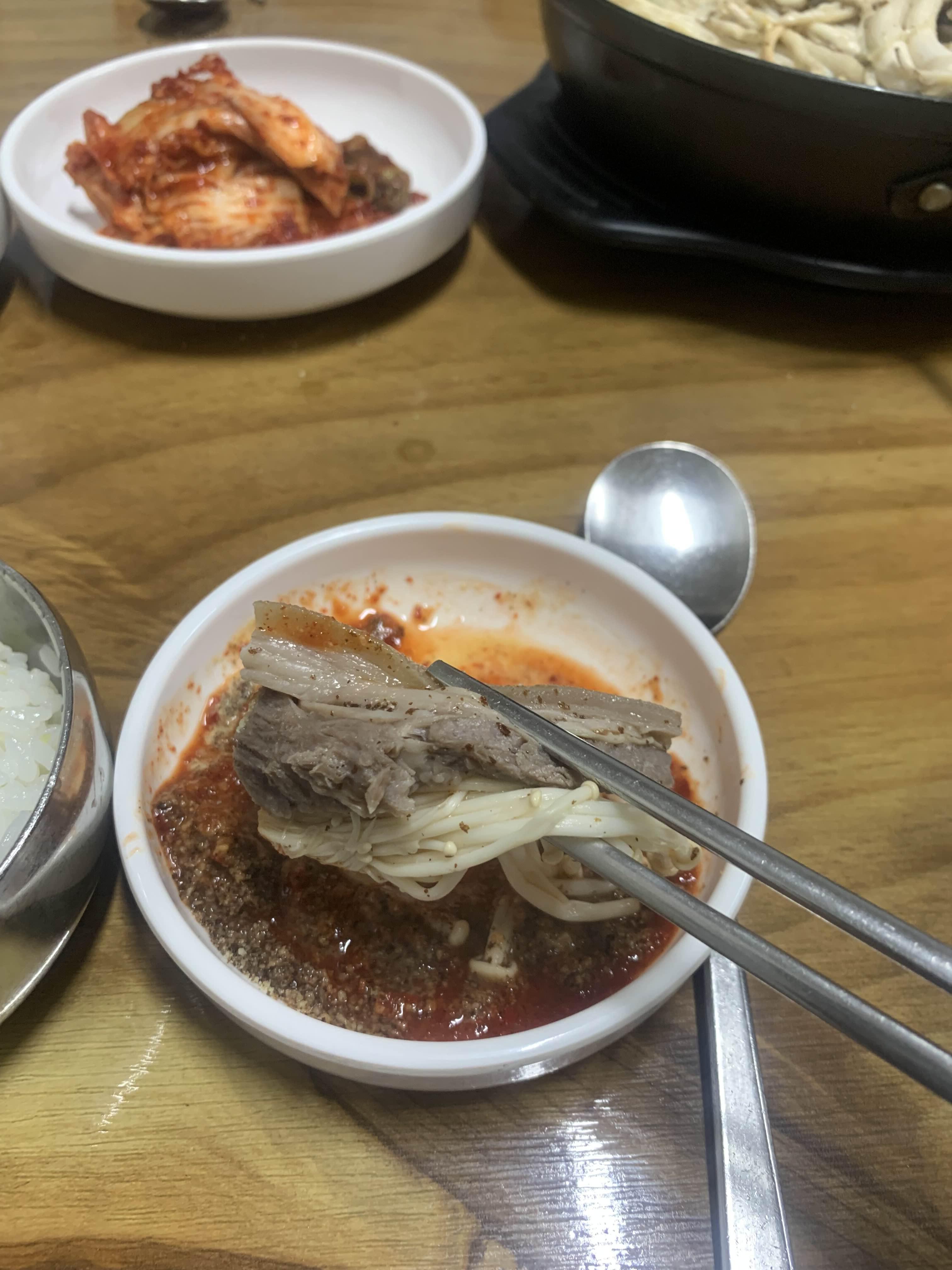 탕에 들어간 고기는 수육으로 나온 고기보다 약간 질긴 식감은 느껴진다.ㅎㅎ