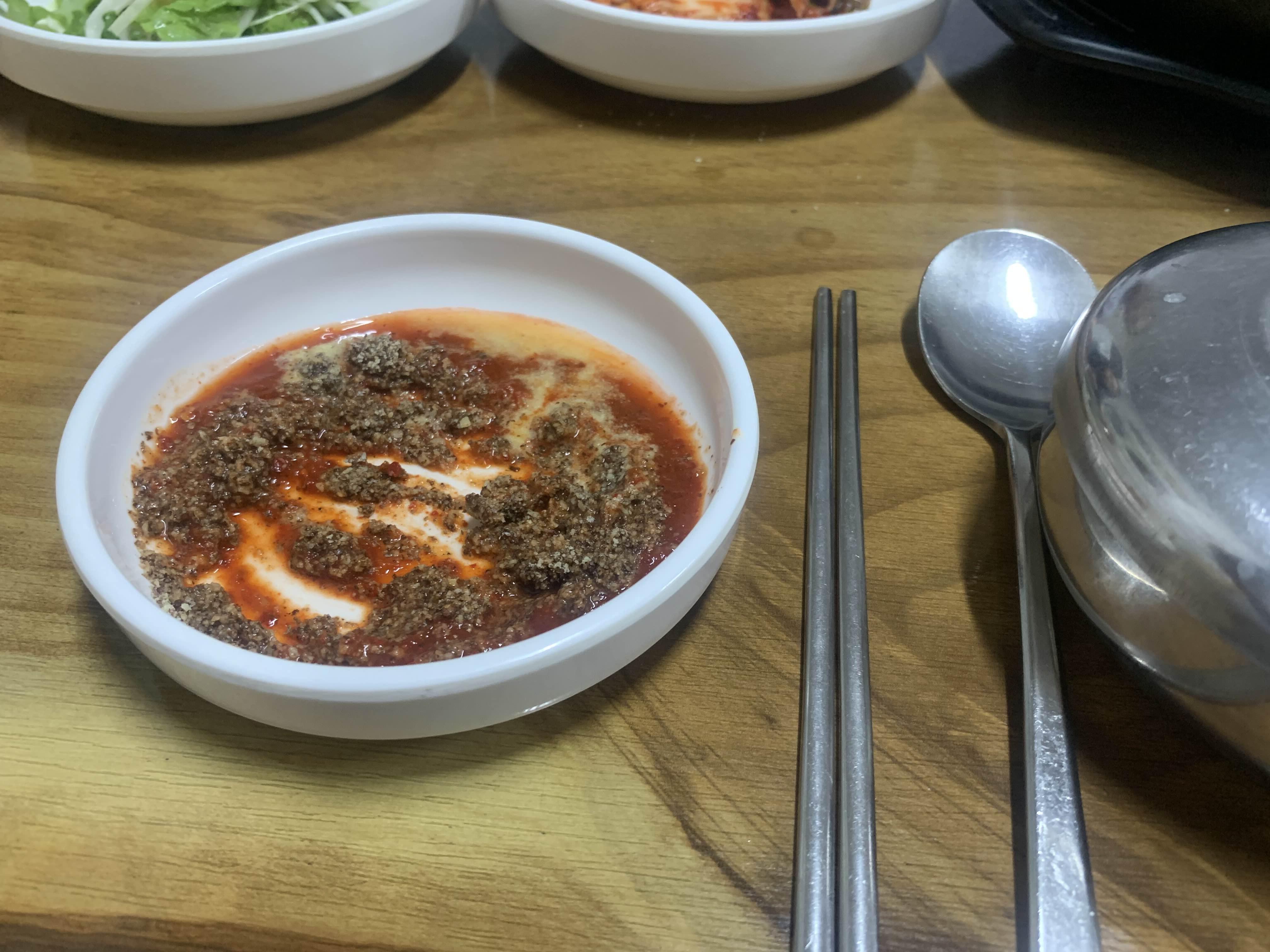 수육을 맛보기 위해... 소스를 만들어서... 한점 맛보는데, 수육은 정말 부드럽다.